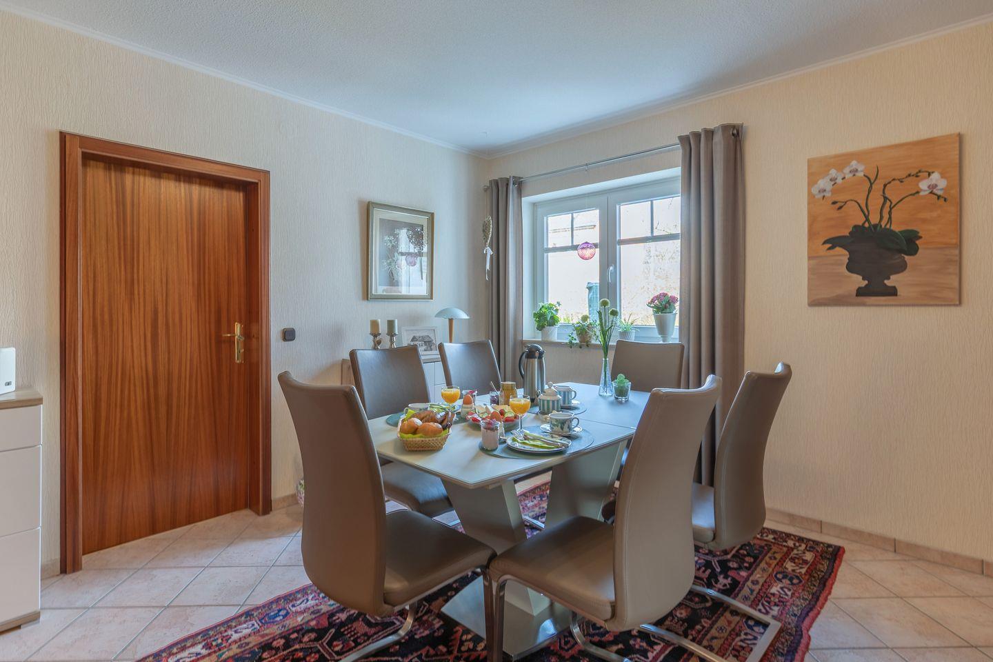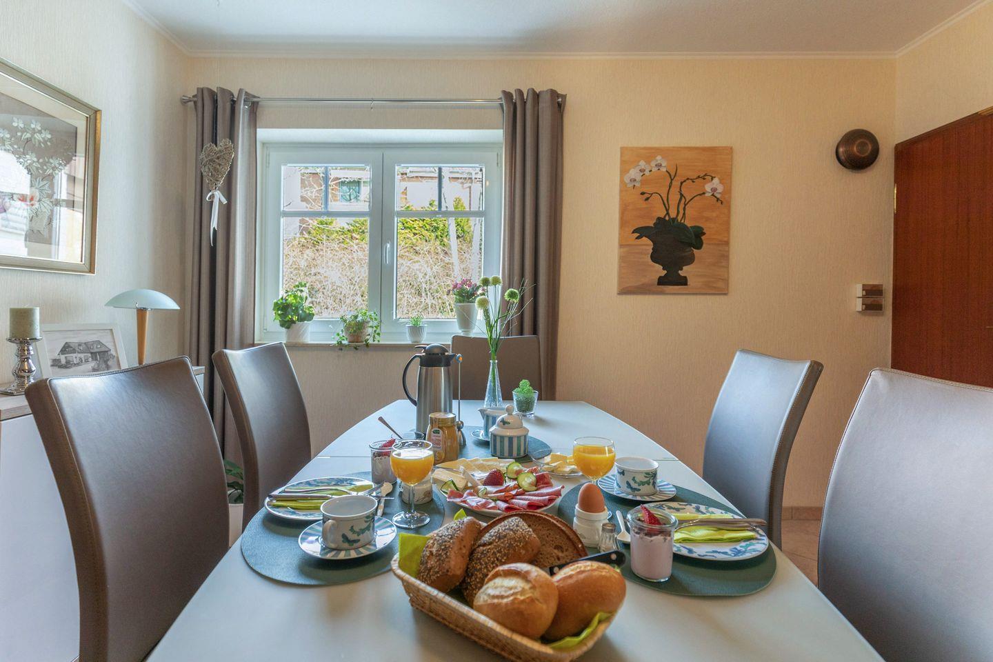 Hinweis: Auf Wunsch bieten wir Ihnen einen Frühstücksservice an, der Ihnen einen genussvollen Start in den Tag ermöglicht (Preis: 12,50 € pro Person). Das Frühstück wird für Sie außerhalb Ihres Zimmers im Esszimmer im Erdgeschoss serviert.