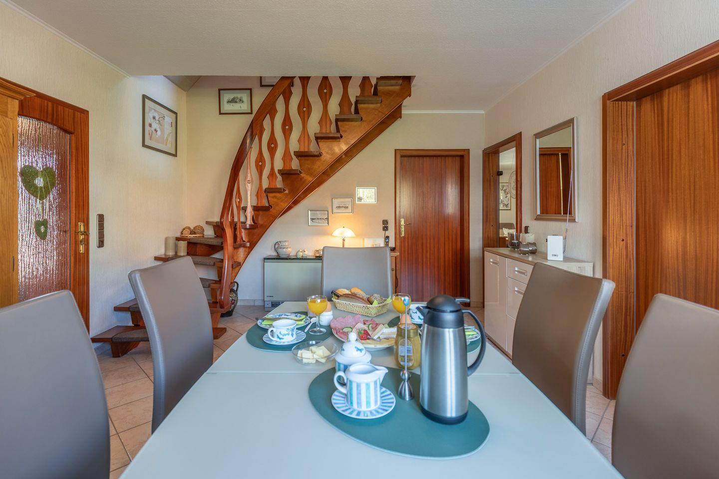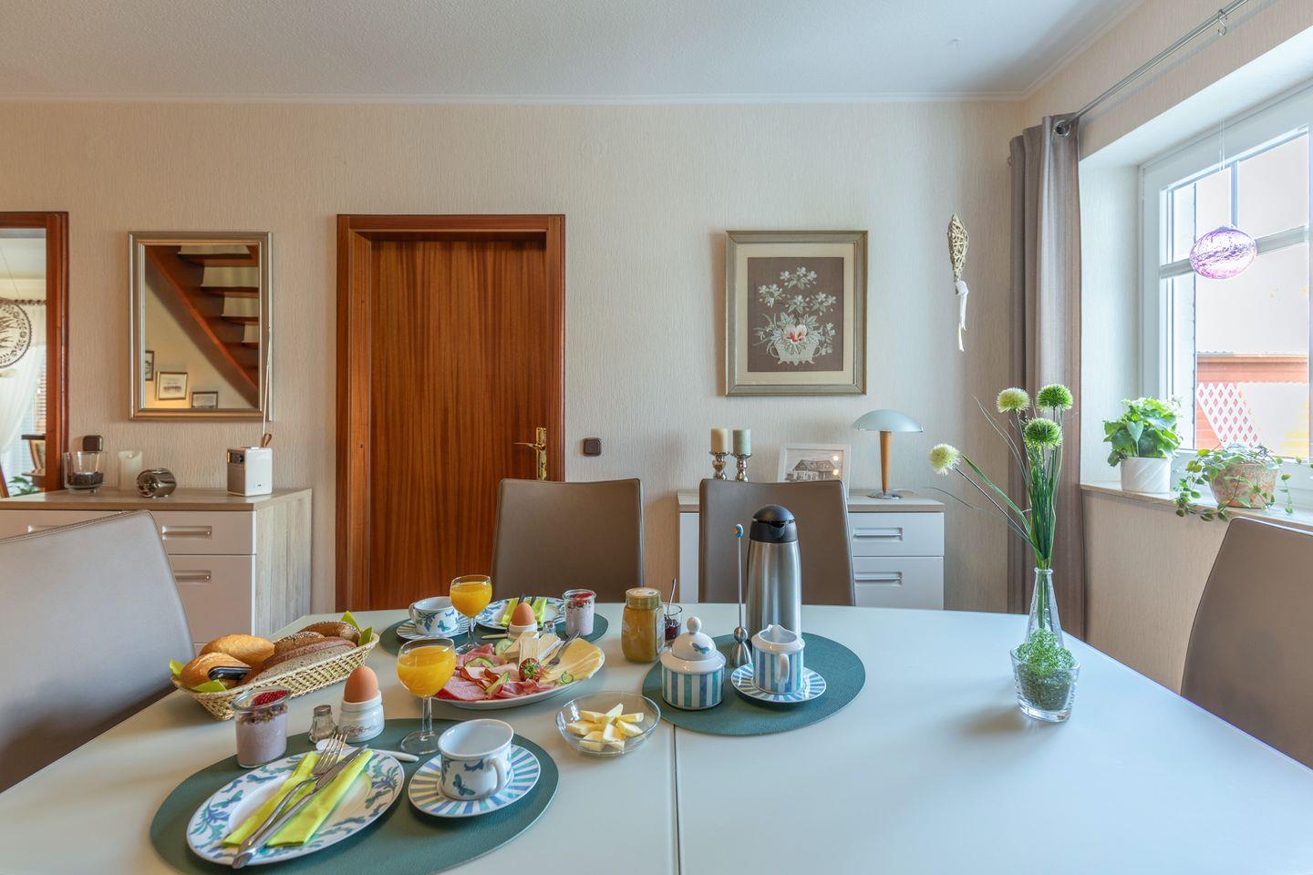 In unserem Nichtraucher-Appartment stellen wir Ihnen gerne kostenfreies WLAN und einen Kfz-Stellplatz zur Verfügung. Bettwäsche und Handtücher sind bereits im Preis enthalten. Fahrräder / E-Bikes können in der Garage abgestellt werden. Die gesamte Unterkunft ist allergikerfreundlich und wurde 2025 umfassend renoviert. Im Zimmer, befindet sich ein Kühlschrank, sowie etwas Geschirr und Besteck, falls Sie den Frühstücksservice nicht wünschen.