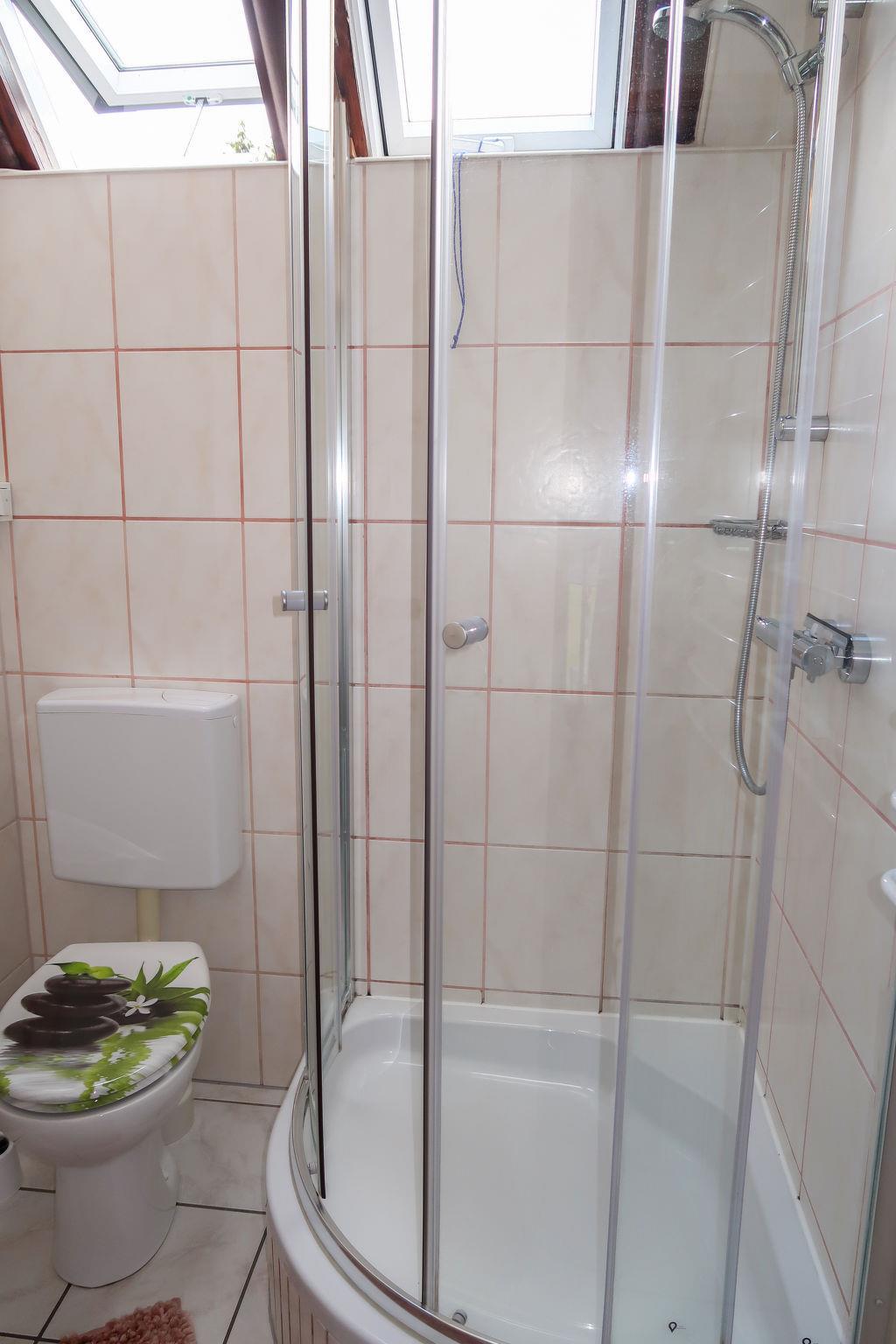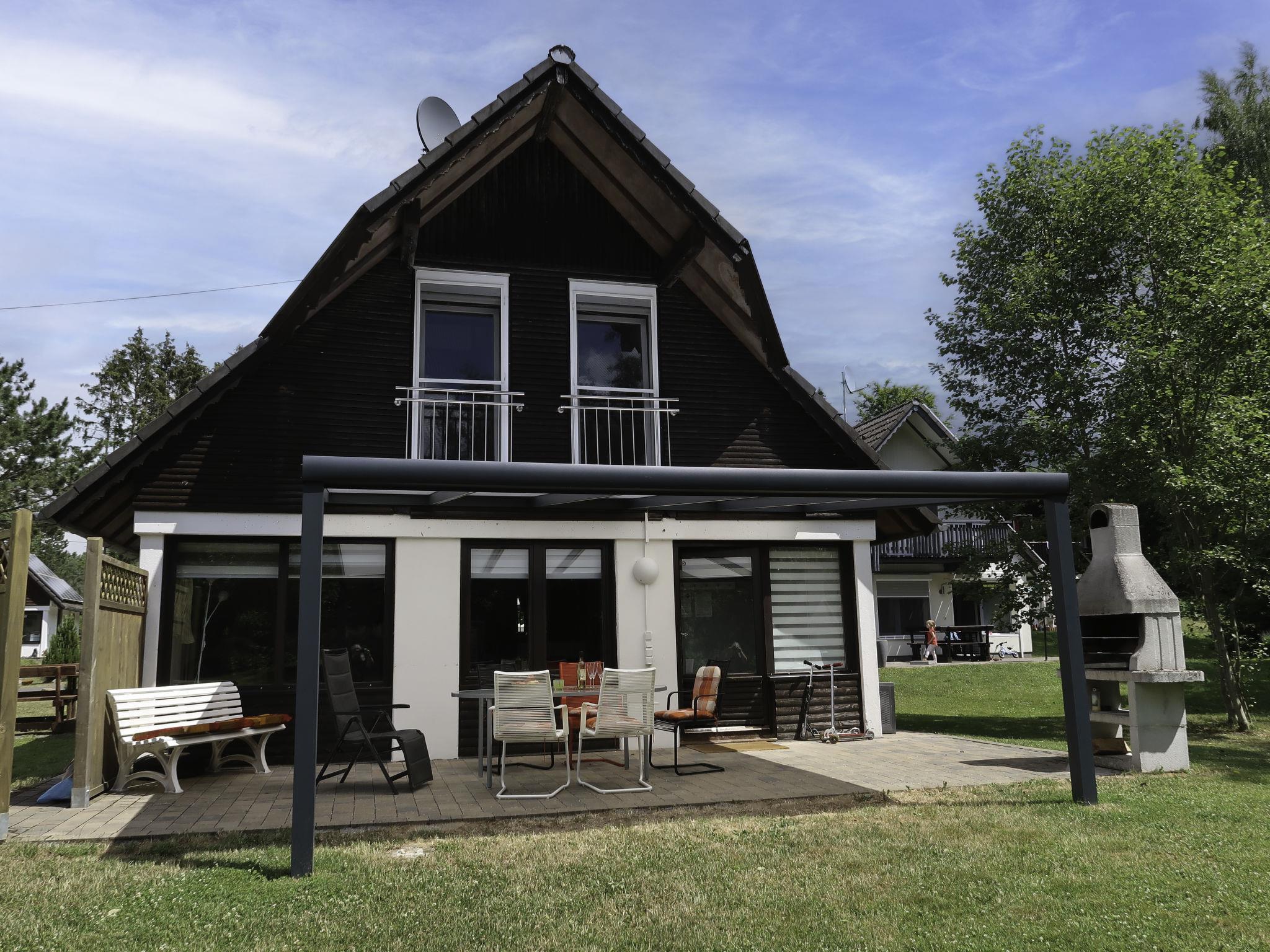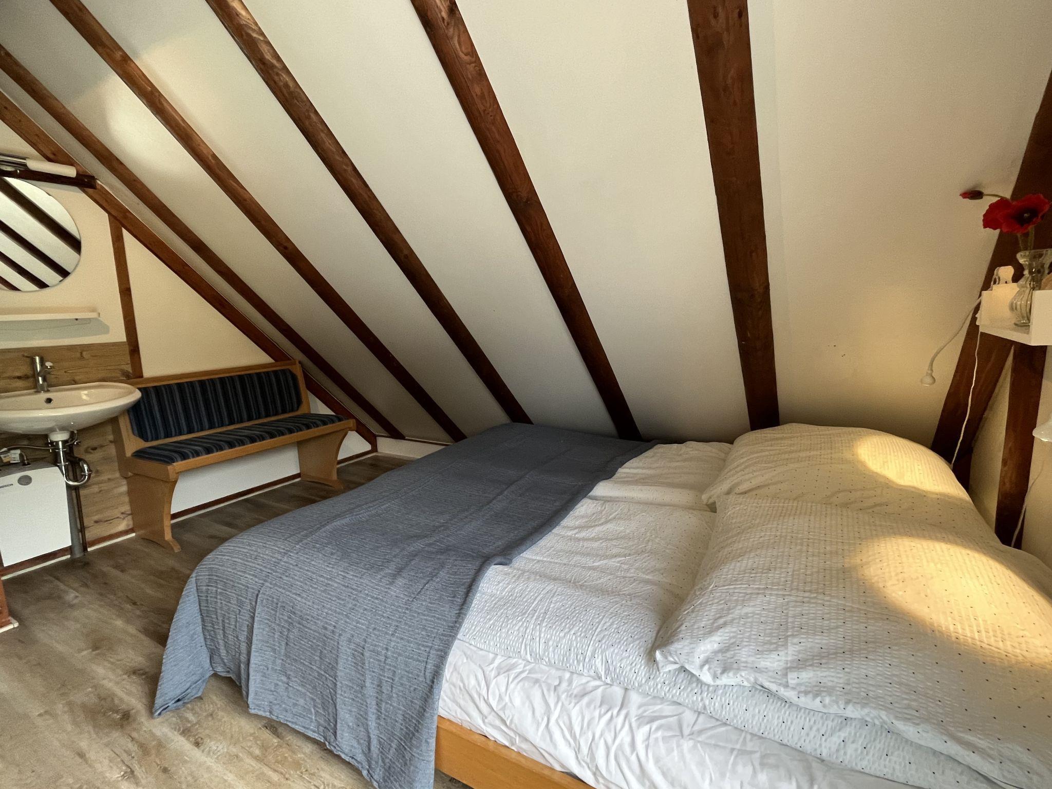 4-room house 75 m2 on 2 levels. Partly renovated in 2022, beautiful and cosy furnishings: living/dining room with Scandinavian wood stove and satellite TV (flat screen), radio and CD-player. Exit to the terrace. 1 double bedroom with separate WC. Small kitchen (oven, dishwasher, 4 ceramic glass hob hotplates, toaster, kettle, microwave, freezer, electric coffee machine). Shower/WC. Upper floor: 1 double bedroom. 1 room with 2 beds. Electric heating. Large terrace roofed, lawn. Terrace furniture, barbecue, deck chairs (3). Facilities: Internet (WiFi, free). Parking at the house. E-charging station. Please note: non-smoking house. Maximum 2 pets/ dogs allowed. Smoke alarm. The double room with separate toilet, kitchenette and shower/toilet can be reached via 4 steps from the ground floor. High-speed internet with landline connection, ideal for workation.