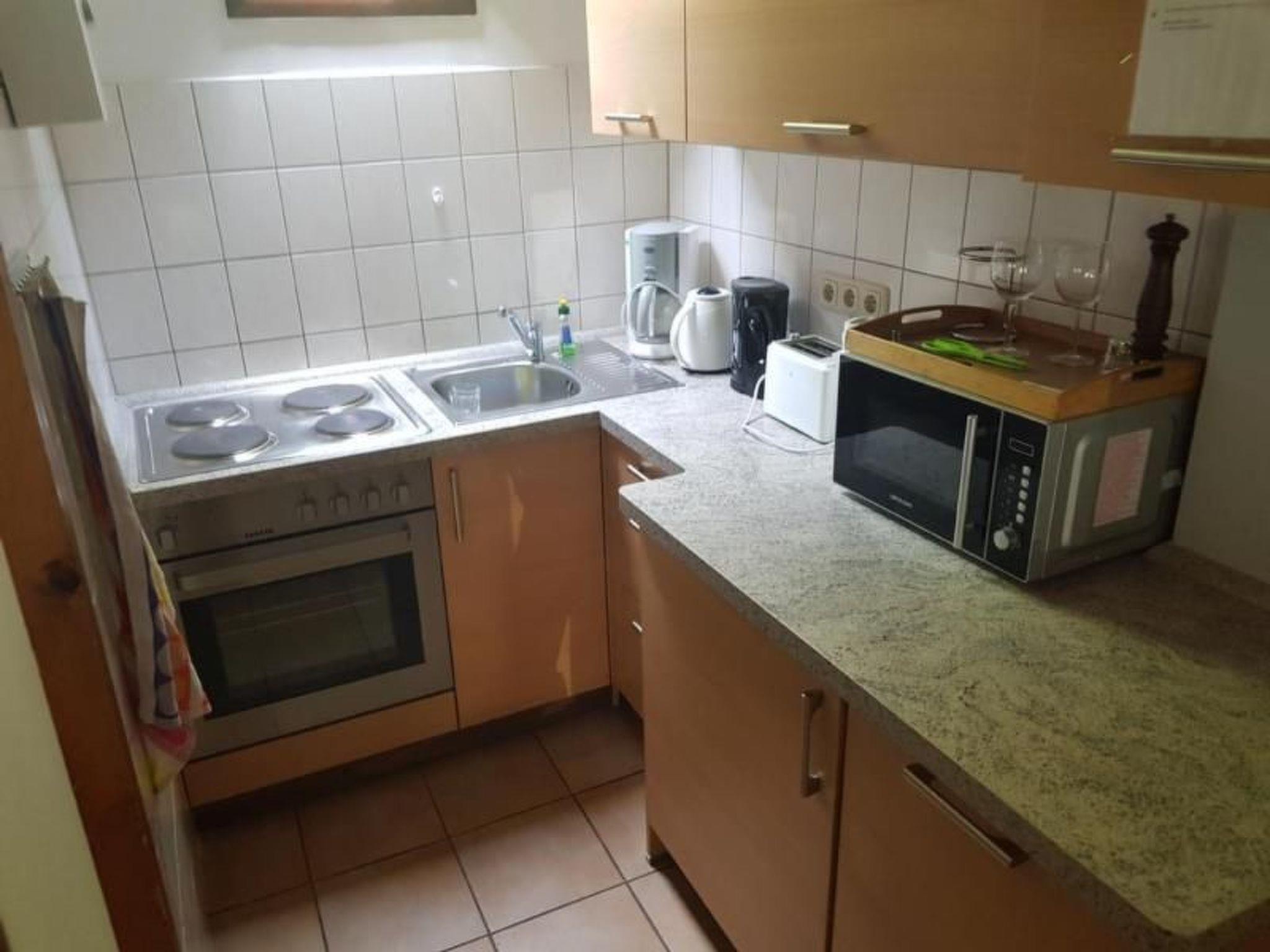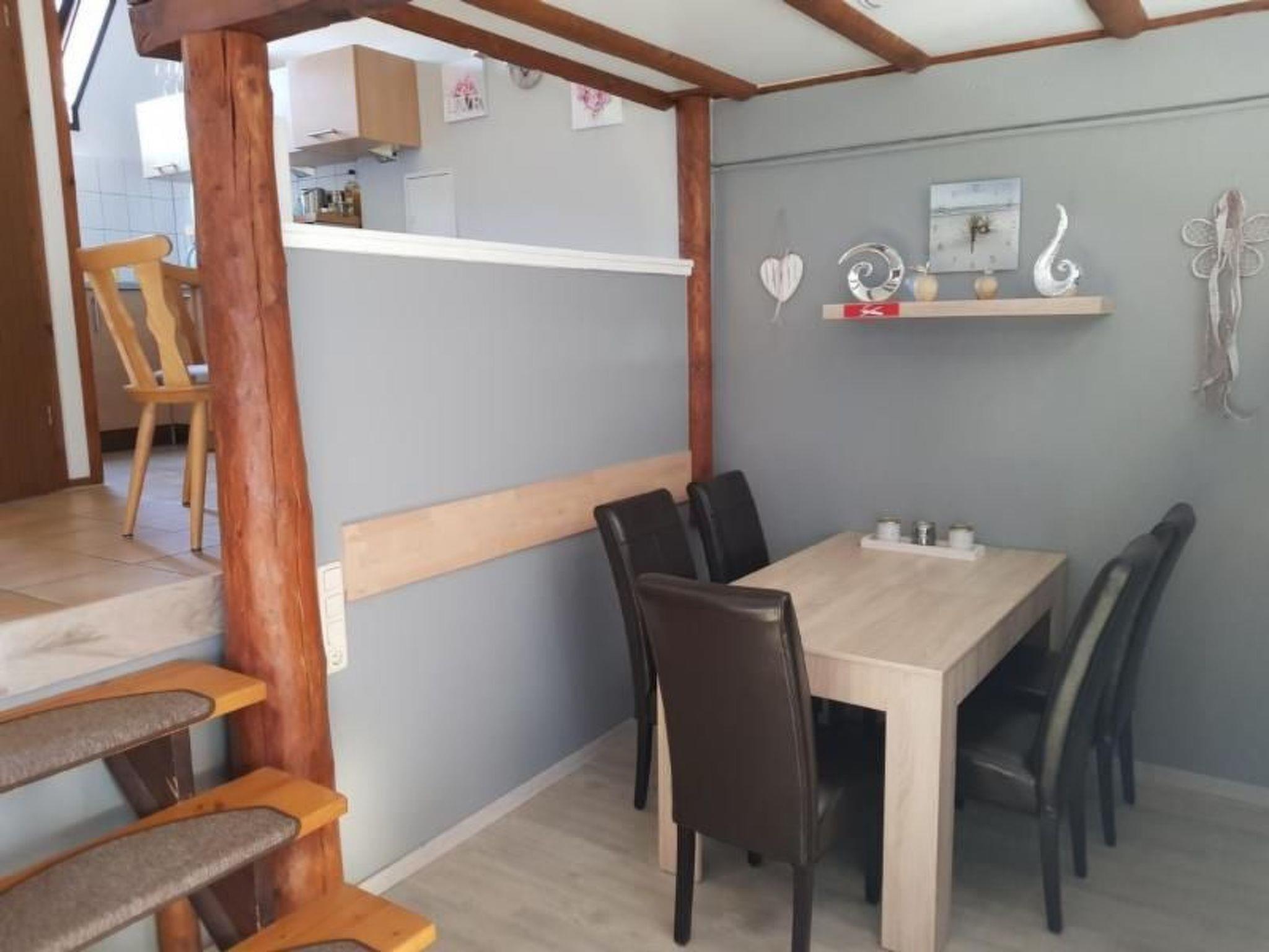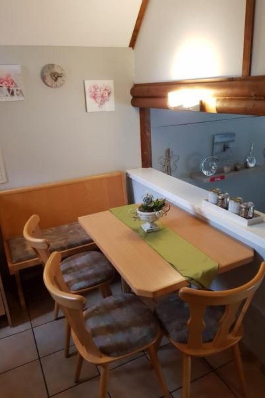The holiday home has 3 levels, on the ground floor you will find the living/dining area with fireplace, TV-SAT system, radio and a dining area. The open-plan kitchen on the upper floor is equipped with dishwasher, cooker, oven, toaster, microwave, coffee machine, kettle, hand mixer, sufficient pots and cooking utensils, fridge with freezer compartment and sufficient crockery.