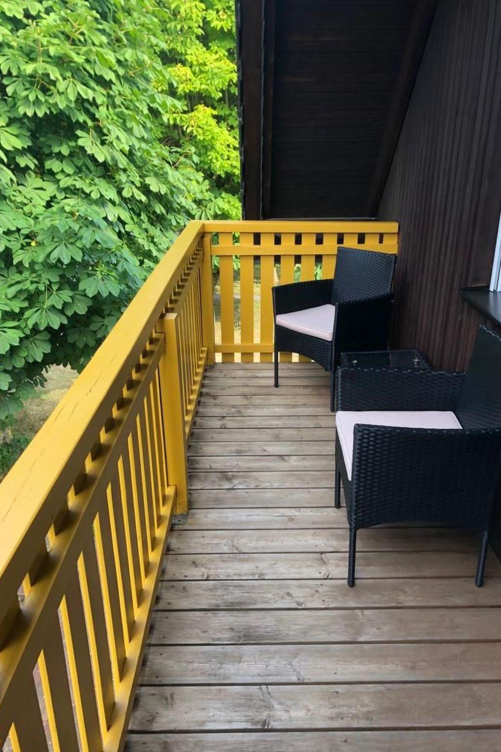 The ground floor flat "Fuchsbau" extends over 55 m² and boasts an adjoining sun terrace with a barbecue fireplace. A spacious living room, which flows into a modern fitted kitchen, offers the perfect setting for family life with its cosy sofa set and dining area. Large panoramic windows provide light-flooded rooms and direct access to the terrace. Two inviting bedrooms and a bright bathroom with shower round off the offer. The upper flat "Eulennest" impresses with similar furnishings, complemented by two charming balconies that invite you to linger at any time of day.