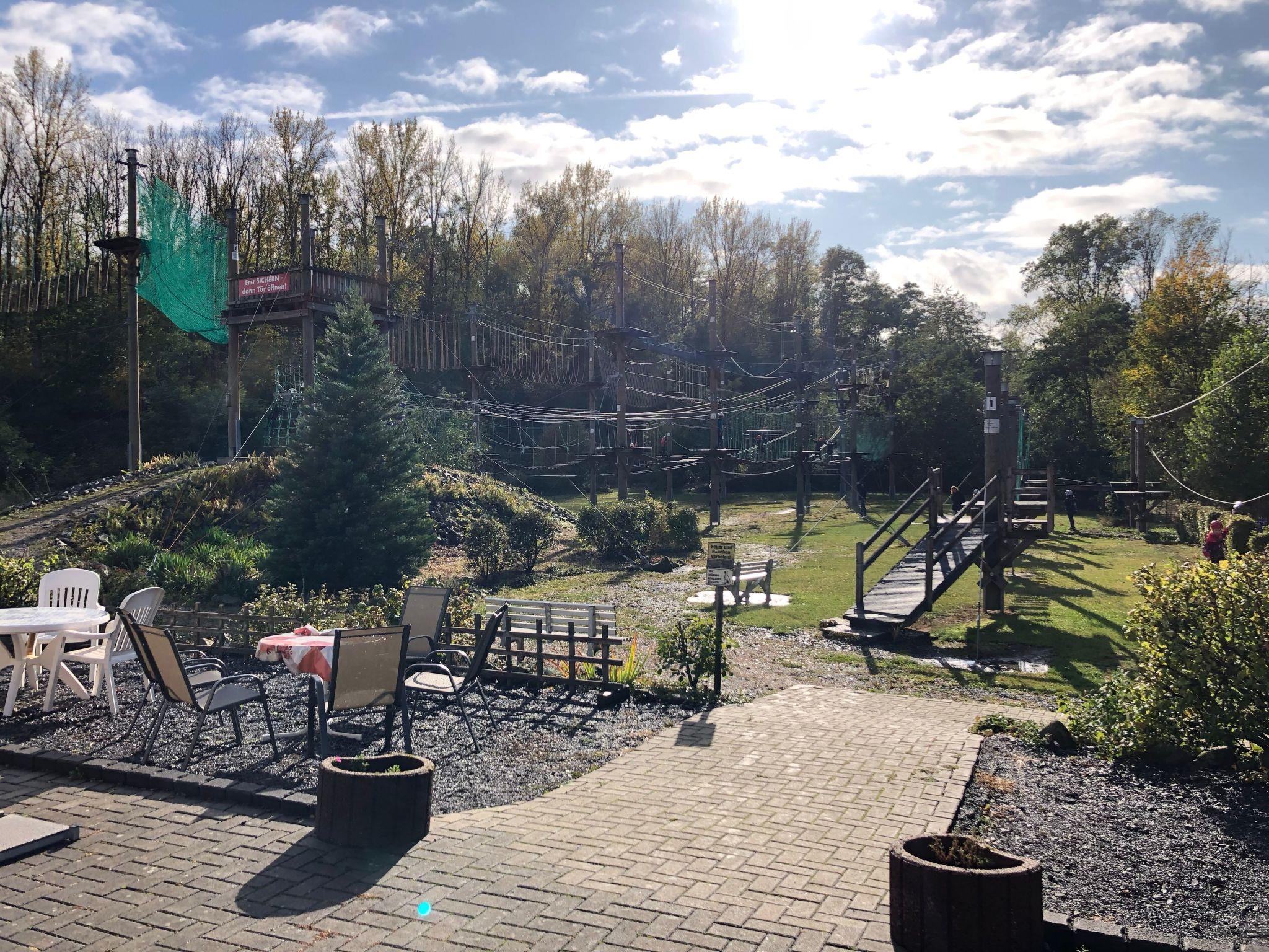 In the park and in the immediate vicinity there is a climbing park, a large indoor play paradise, a wellness centre with indoor pool, a sauna, a water slide, a miniature railway, an all-weather toboggan run, a petting zoo, archery facilities, a minigolf course, a skating and bowling alley, football, tennis and basketball courts, as well as various adventure playgrounds. The nearest grocery shop is approx. 400 m away and cafés and restaurants are approx. 600 m away.