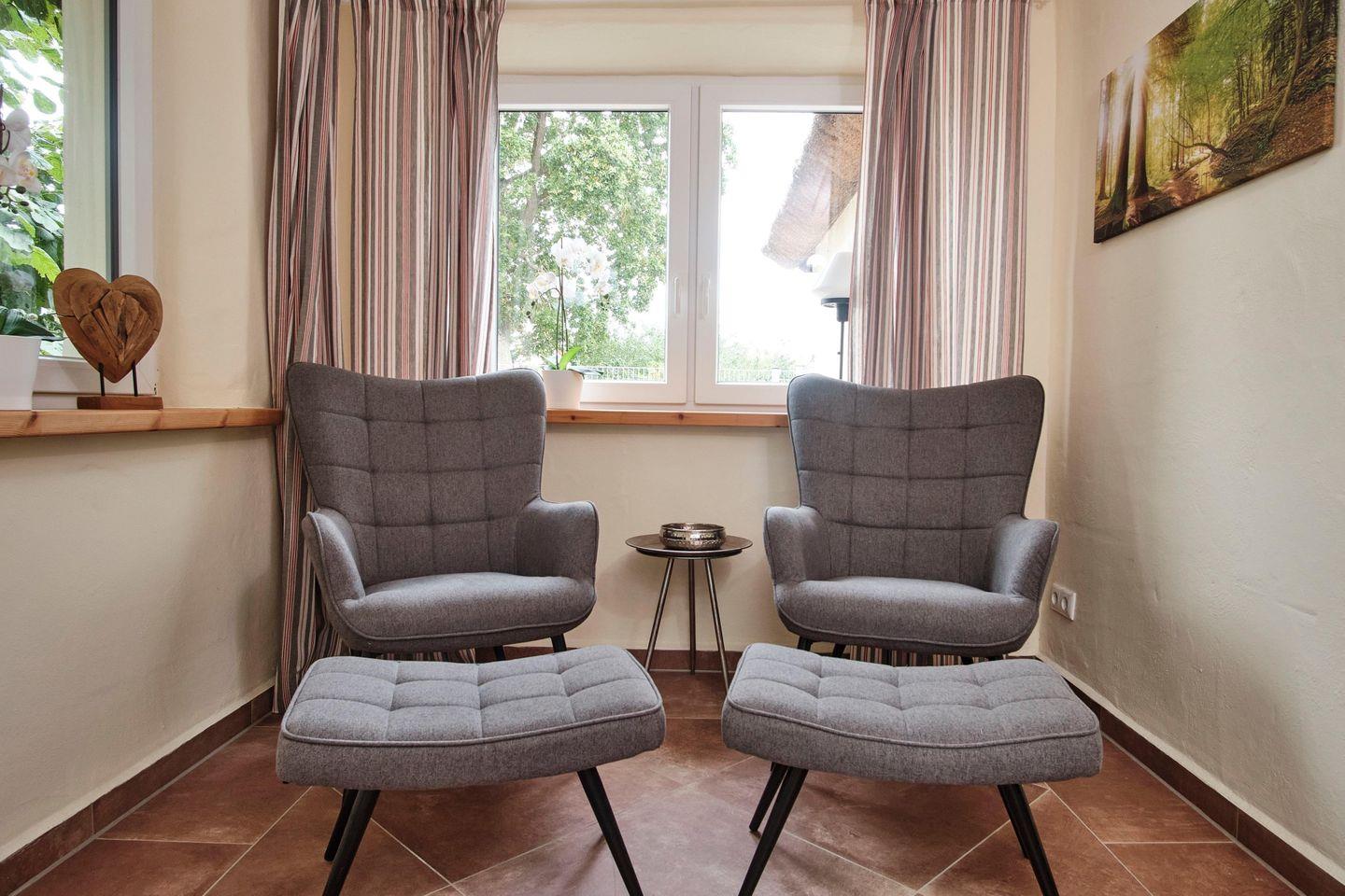 Diese ca. 80 m² große, wunderschön eingerichtete Ferienwohnung "Aufschwung I" für bis zu 5 Personen und ihre Hunde liegt im Erdgeschoss eines Ferienhauses in dem kleinen Ort Fuhlendorf an der südlichen Boddenküste im Landkreis Nordvorpommern.