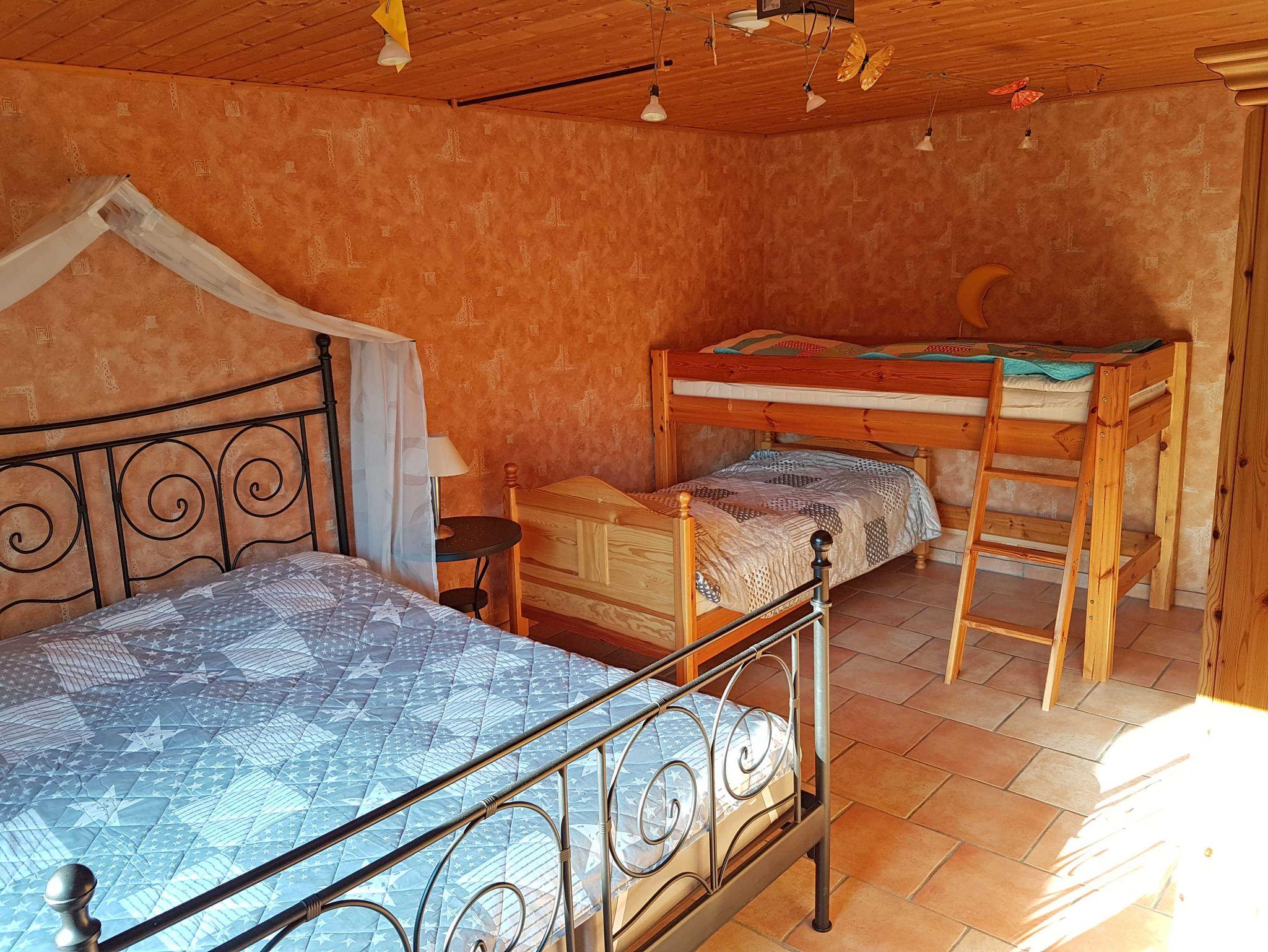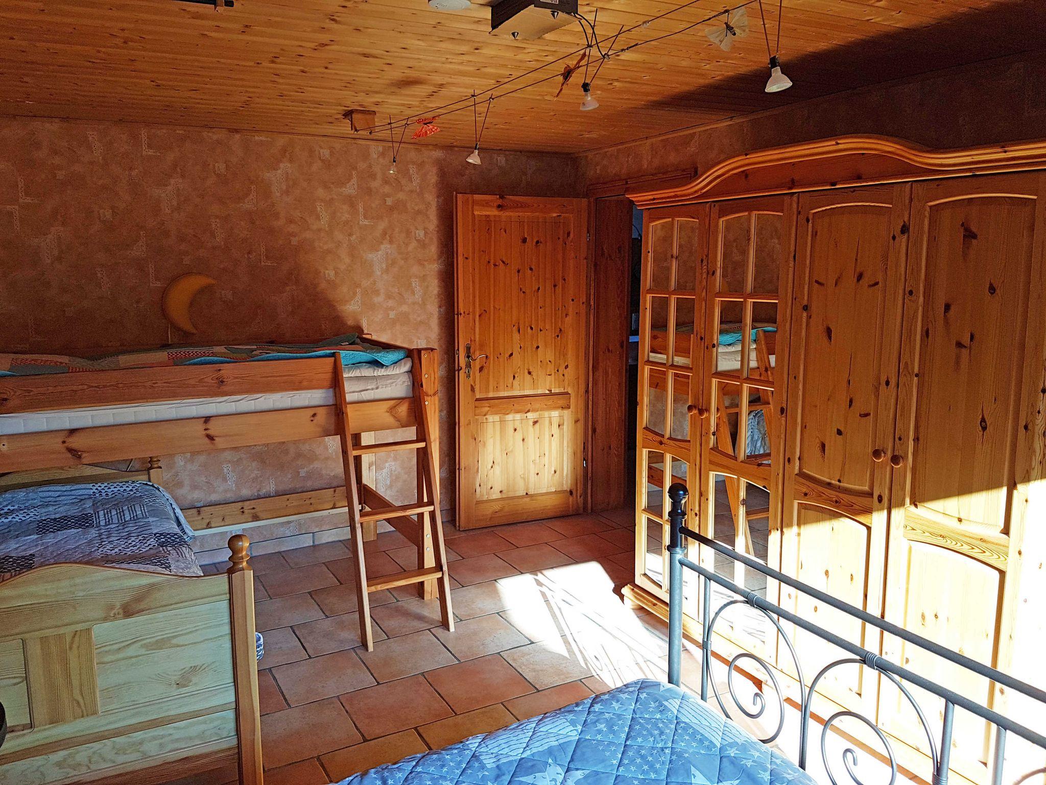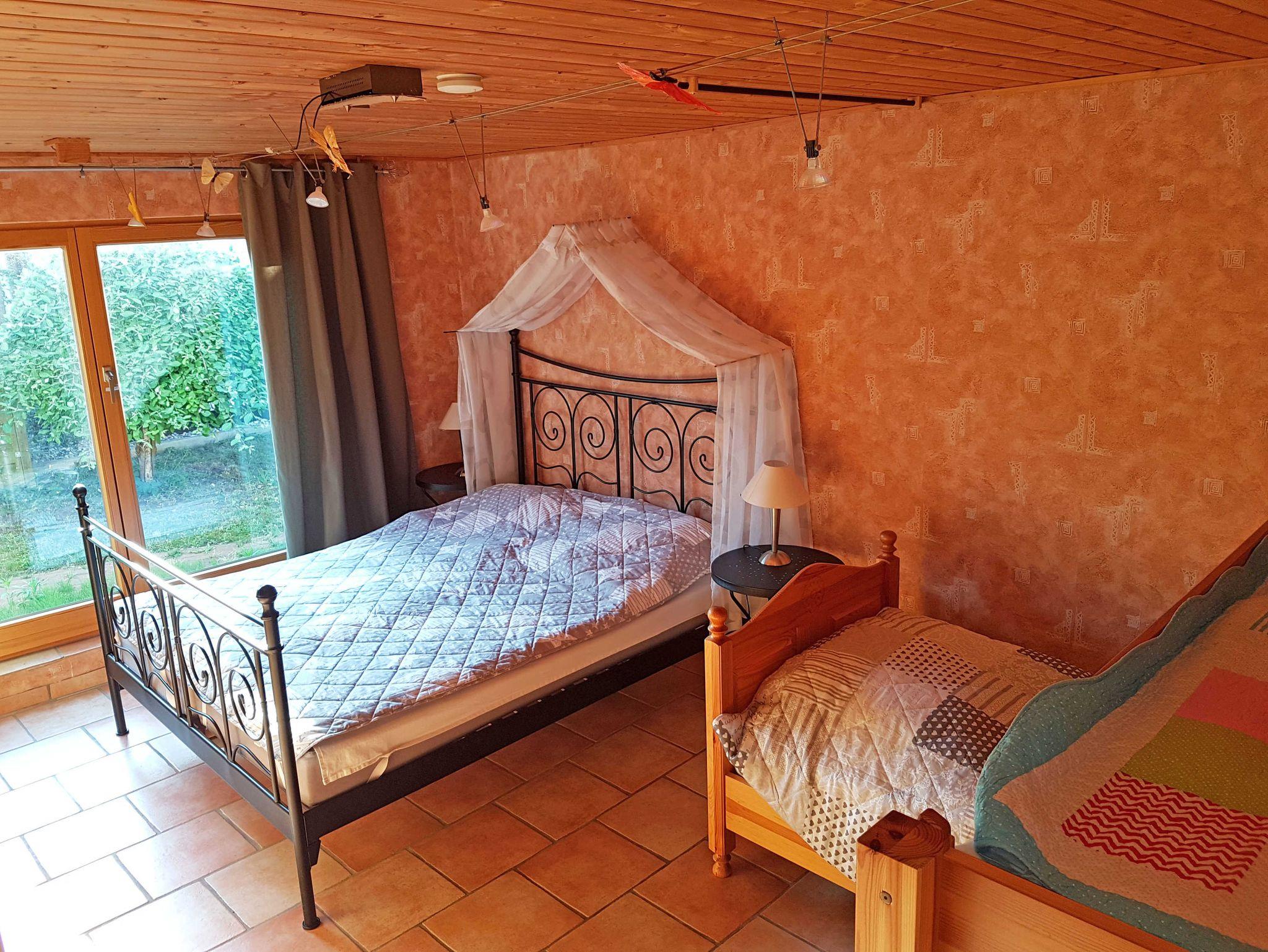 Zwei Schlafzimmer: 1) mit Doppelbett (180x200; getrennte Matratzen) und einer Räuberhöhle (Hochbett auf einer zweiten Ebene ca. 5m² mit Liegefläche 140x190, ein Traum für Kinder)