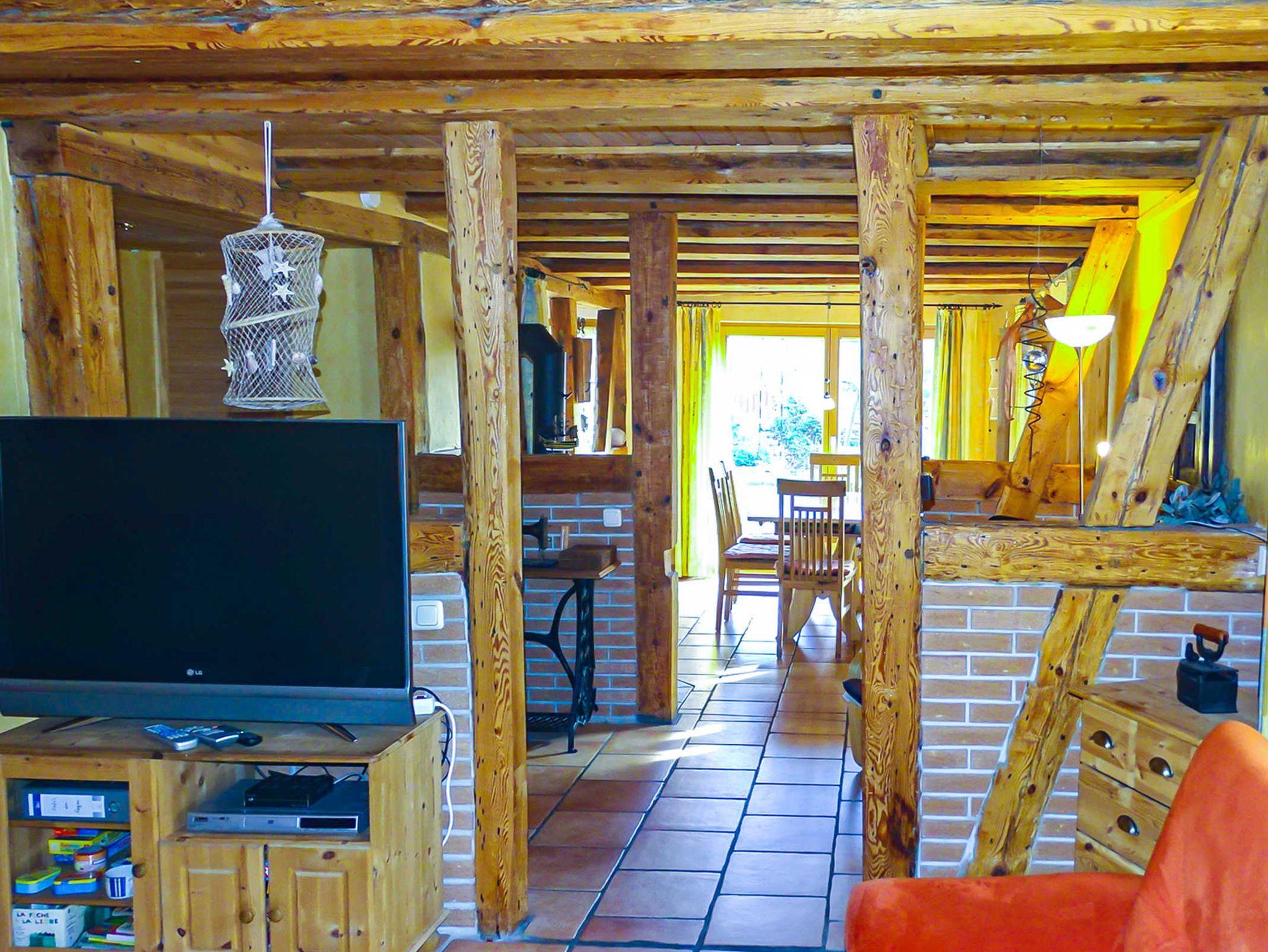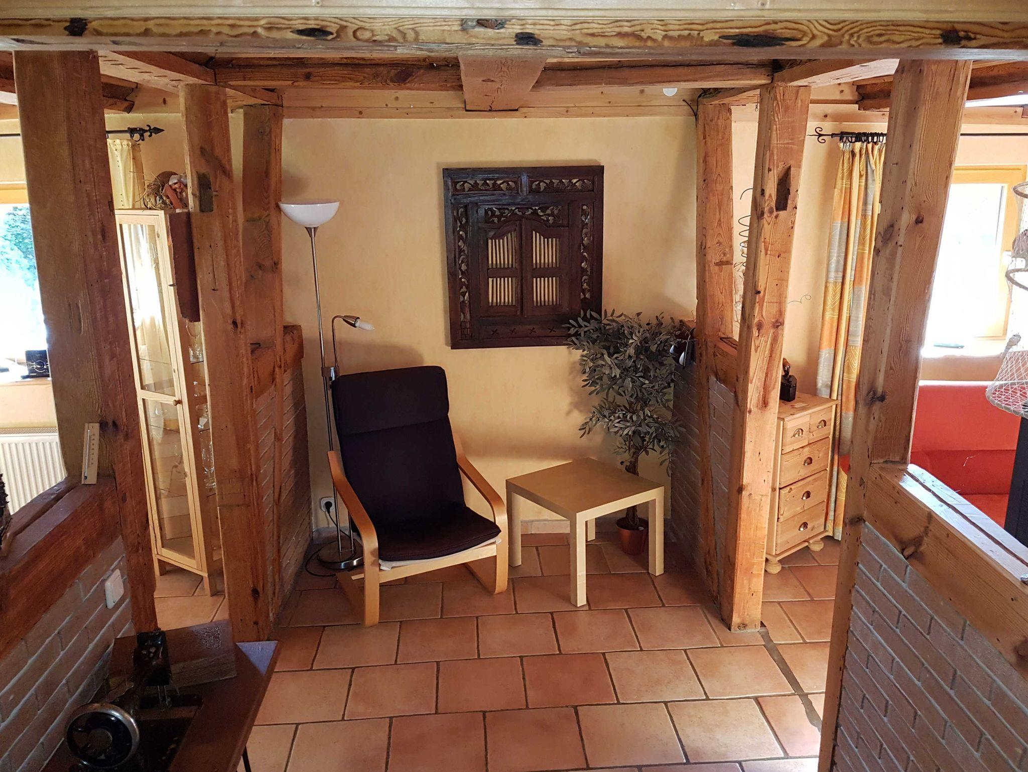 Die Innengestaltung orientiert sich an dem Landhausstil. Hierzu tragen auch die offene Balkendecke, sowie die freigelegten Fachwerkmauern des über 140 Jahre alten, vollsanierten Hauses bei. Diese wurden absichtlich nur halbhoch aufgebaut, um ein weitläufiges Raumgefühl zu vermitteln. Hierdurch sind Küche, Esszimmer, Diele und Wohnzimmer miteinander verbunden.