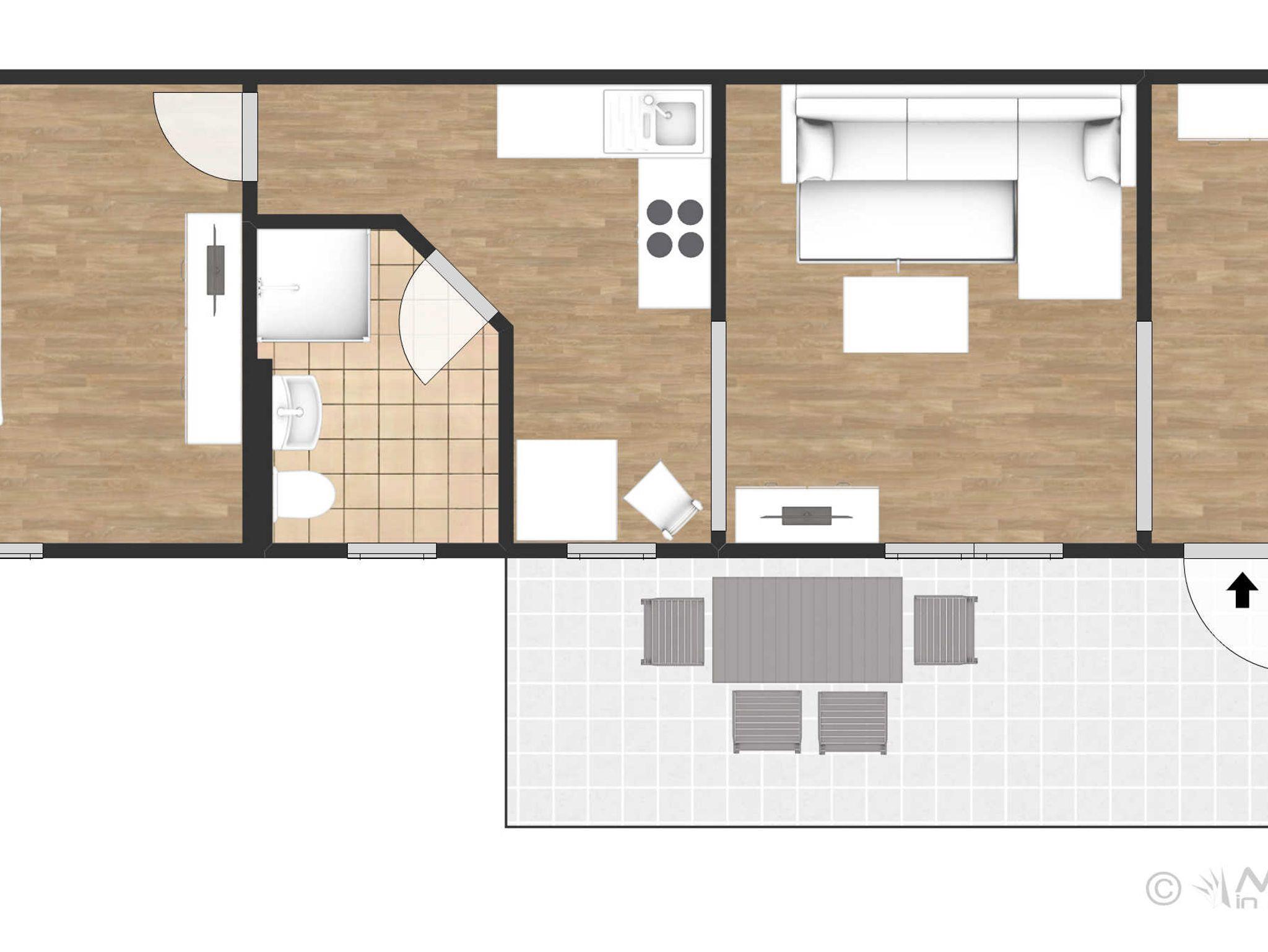 Im Ferienhaus befinden sich 3 Ferienwohnungen, welche über einen Wohnraum mit Schlafcouch und TV, ein separaten Schlafraum, offene Küche und Bad mit Dusche und WC verfügen. Allen Gästen steht eine eigene Terrasse mit Gartenmöbeln und Grill sowie ein Parkplatz zur Verfügung.