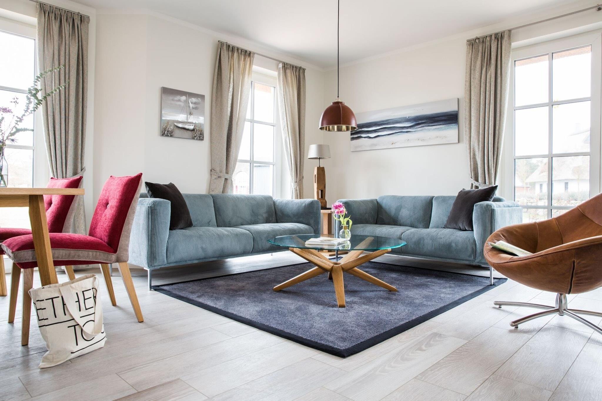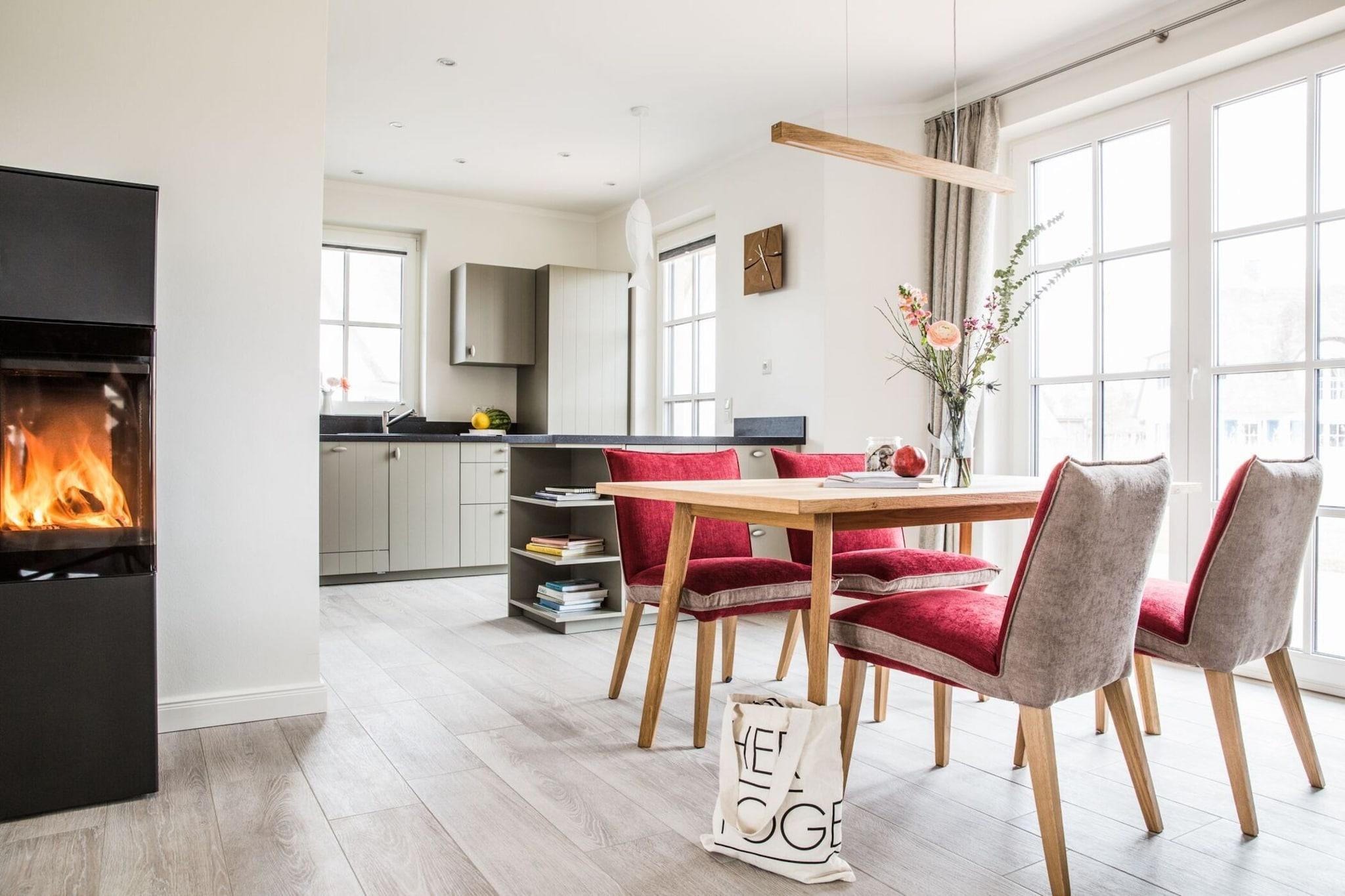 Ankomme og have det godt: Nyt stråtækt sommerhus med idyllisk beliggenhed på Bodden, kun 170 meter fra vandet. Fra sauna og pejs til WiFi og satellit-tv med Sky til komfortable boxmadrasser, kan du nyde hvert sekund af din ferie her i en luksuriøs atmosfære. Slap af i fred i det naturlige badeområde ved Bodden-vandet eller tag en tur til den livlige Østersøstrand i Zingst, som ligger 17 kilometer væk. Omkring Bodden venter idylliske landsbyer og et unikt landskab på at blive opdaget af dig. Kommunerne Fuhlendorf og Bodstedt er idyllisk beliggende på Boddens sydkyst. I de varmere måneder sejler passagerskibe dagligt fra Bodstedt til Darß-halvøen i Born og videre via Neuendorfer Bülten til Ahrenshoop-Althagen. Højdepunkter: Forbrugsbaserede energiomkostninger, sengelinned, håndklæder, slutrengøring WLAN Aktiviteter i nærheden: Bodstedt er kendt for sin traditionelle havn for Zeesen-bådene, der ligger der. Individuelle ejere af Zeesenboote tilbyder forlystelser, og sådan en mulighed må man ikke gå glip af!Den store Bodstedt Zeesenboot-regatta er startet hvert år siden 1965 den første weekend i september.