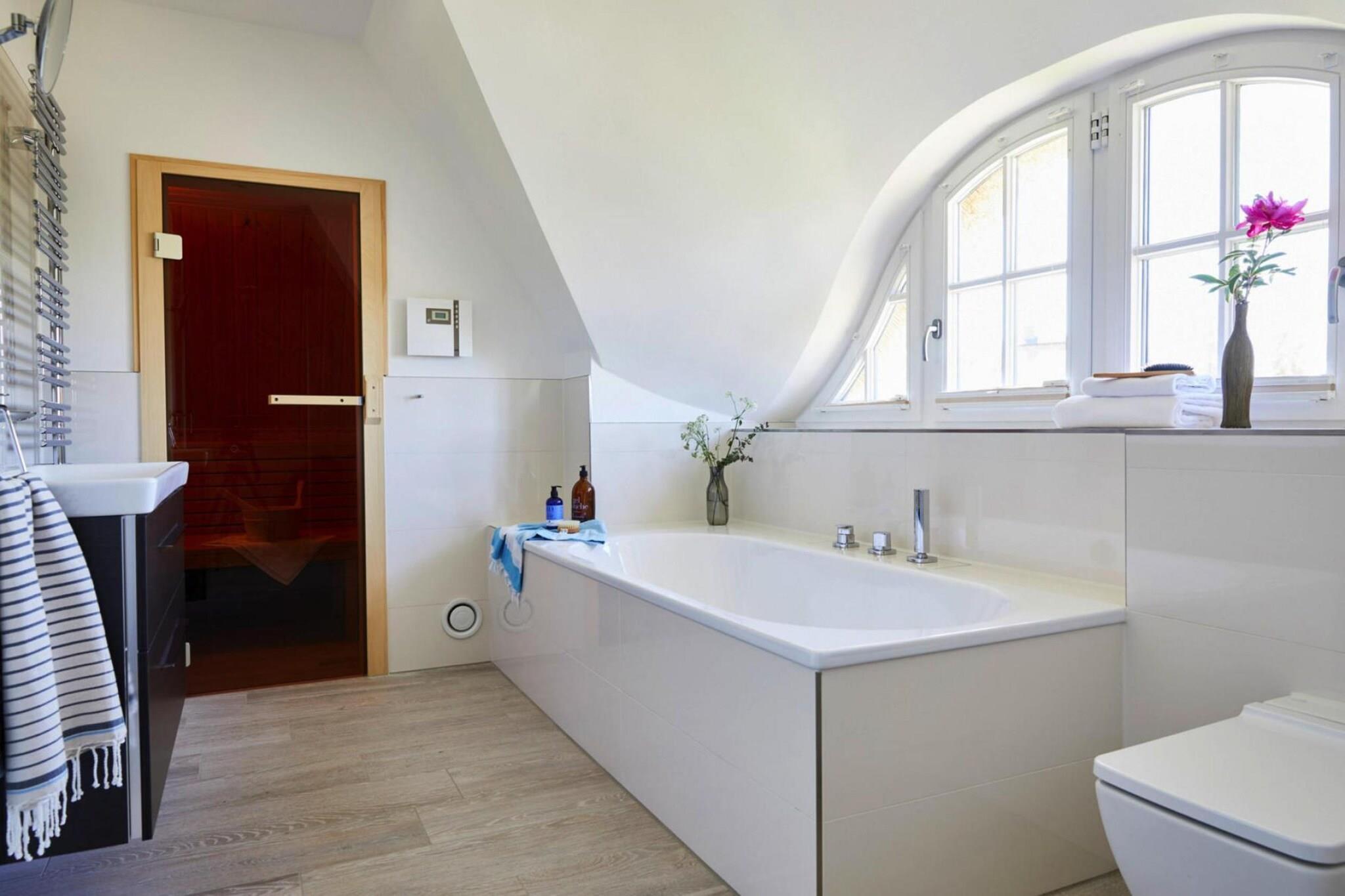 Ankomme og have det godt: Nyt stråtækt sommerhus med idyllisk beliggenhed på Bodden, kun 170 meter fra vandet. Fra sauna og pejs til WiFi og satellit-tv med Sky til komfortable boxmadrasser, kan du nyde hvert sekund af din ferie her i en luksuriøs atmosfære. Slap af i fred i det naturlige badeområde ved Bodden-vandet eller tag en tur til den livlige Østersøstrand i Zingst, som ligger 17 kilometer væk. Omkring Bodden venter idylliske landsbyer og et unikt landskab på at blive opdaget af dig. Kommunerne Fuhlendorf og Bodstedt er idyllisk beliggende på Boddens sydkyst. I de varmere måneder sejler passagerskibe dagligt fra Bodstedt til Darß-halvøen i Born og videre via Neuendorfer Bülten til Ahrenshoop-Althagen. Højdepunkter: Forbrugsbaserede energiomkostninger, sengelinned, håndklæder, slutrengøring WLAN Aktiviteter i nærheden: Bodstedt er kendt for sin traditionelle havn for Zeesen-bådene, der ligger der. Individuelle ejere af Zeesenboote tilbyder forlystelser, og sådan en mulighed må man ikke gå glip af!Den store Bodstedt Zeesenboot-regatta er startet hvert år siden 1965 den første weekend i september.