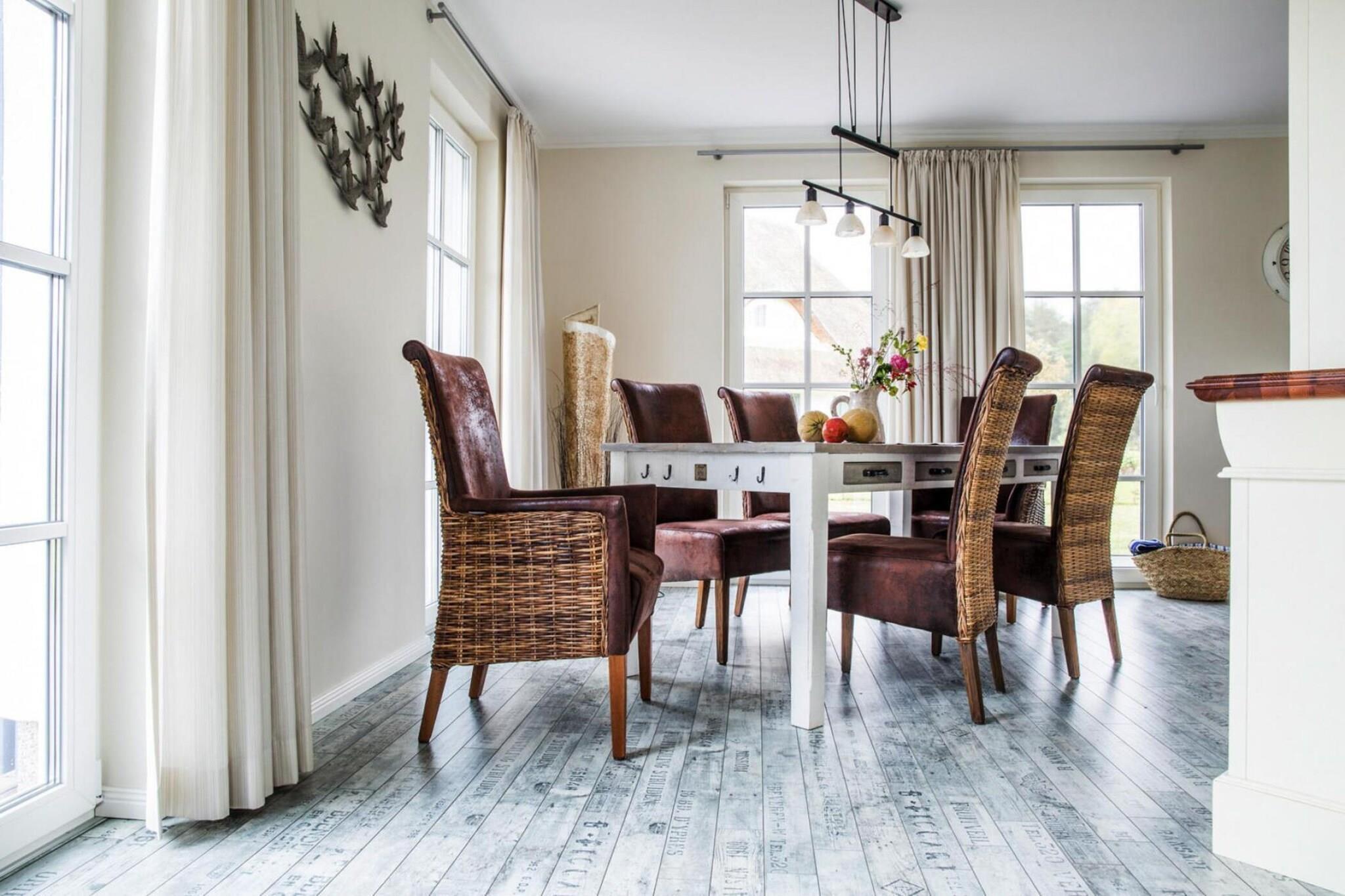 Med et naturligt badeområde ved bugten: Nybygget luksus stråtækt hus i en rolig, malerisk beliggenhed. Sauna og pejs til hyggelige timer, WiFi og satellit-tv med Sky for variation - her mangler intet. Hvis du vil veksle badeområdet på Bodden med den livlige og farverige travlhed på stranden ved Østersøen, skal du blot tage din bil til Zingst, som kun ligger 17 kilometer væk. Derudover kan du tage på skønne cykelture for at opdage de små idylliske landsbyer og de smukke landskaber omkring bugten. Kommunerne Fuhlendorf og Bodstedt ligger meget idylliske på Boddens sydkyst. I årets varmere måneder sejler passagerskibe fra Bodstedt til Darß-halvøen til Born og videre gennem Neuendorfer Bülten til Ahrenshoop-Althagen. Detaljer: Forbrugsbaserede energiomkostninger, sengelinned, håndklæder, slutrengøring, WiFi Aktiviteter i nærheden: Nabokommunen Bodstedt med sin traditionelle havn er kendt for Zeesen-bådene, som ligger her. Nogle ejere af Zeesenbooten tilbyder endda en tur, og sådan en mulighed må man ikke gå glip af!Siden 1965 starter den store Bodstedt Zeesenbootregatta hvert år den første weekend i september - et populært motiv især for amatørfotografer Ikke egnet til personer med nedsat mobilitet