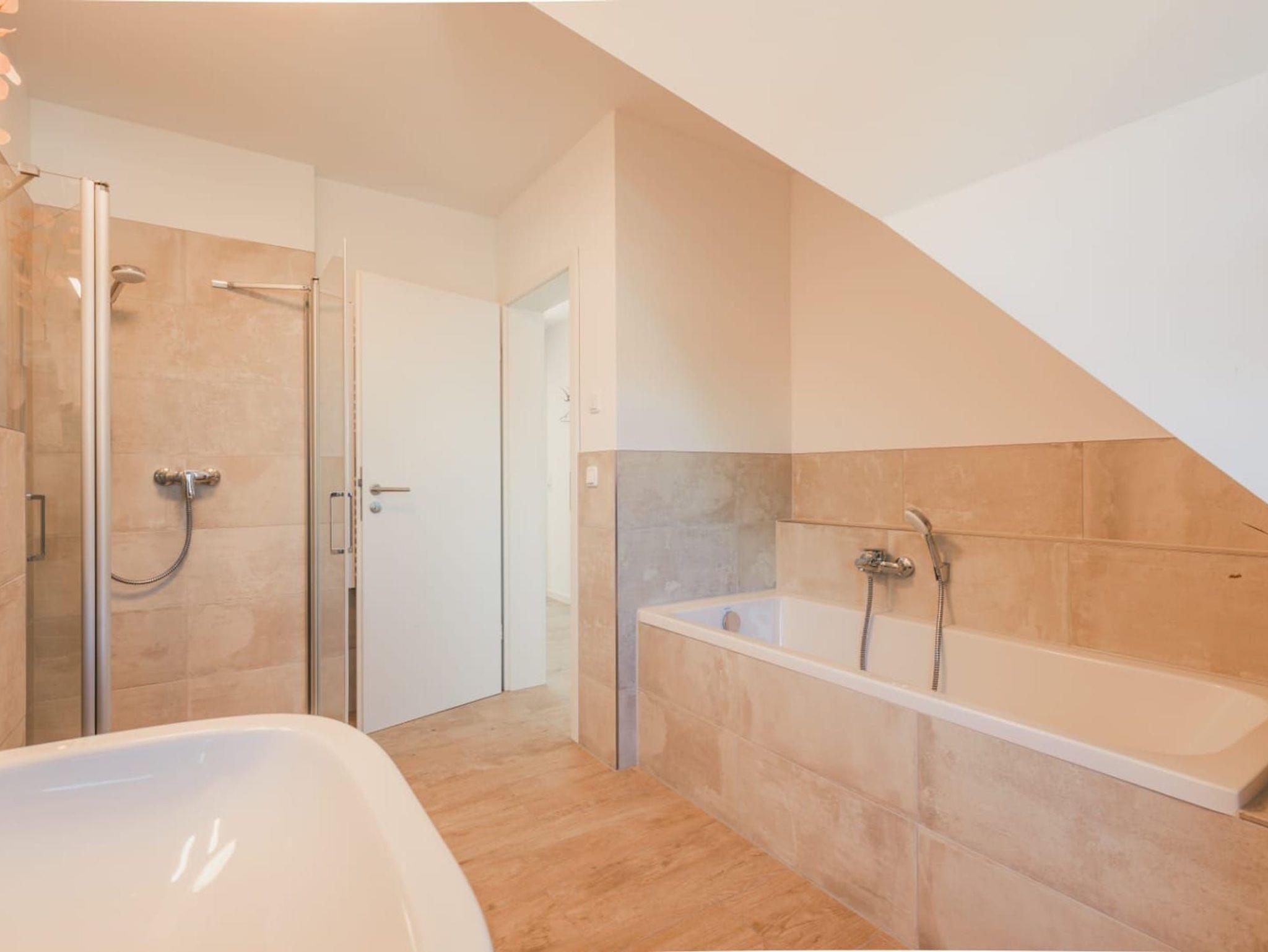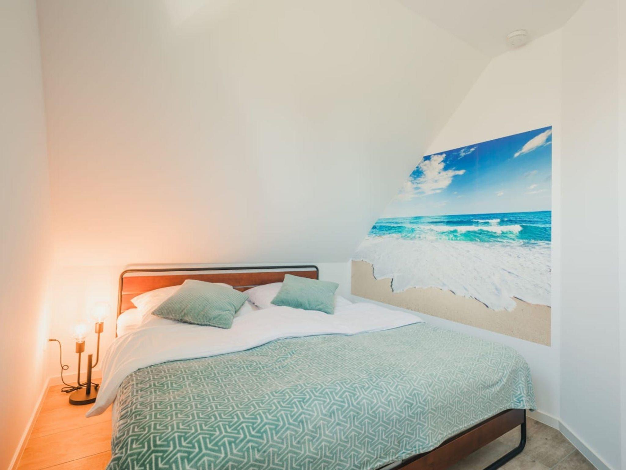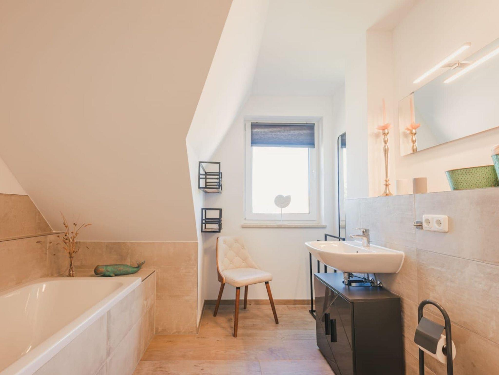 Im Obergeschoss erwarten Sie zwei schicke Schlafzimmer sowie ein Badezimmer mit komfortabler Badewanne und Dusche. Die Zimmer sind hochwertig und gemütlich, mit viel Liebe zum Detail eingerichtet. Die freundliche Atmosphäre trägt dazu bei, dass Sie sich wohl fühlen und die Seele baumeln lassen können. Jeder Schlafraum verfügt über einen eigenen Smart-TV und im größeren Zimmer befindet sich zusätzlich eine bequeme Schlafcouch.