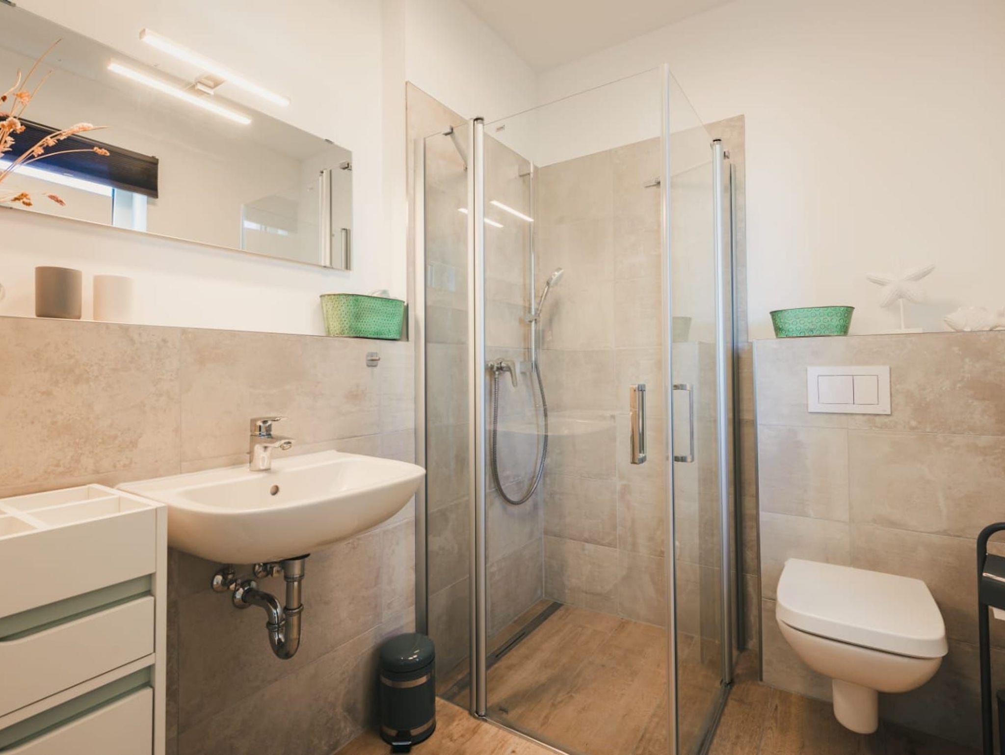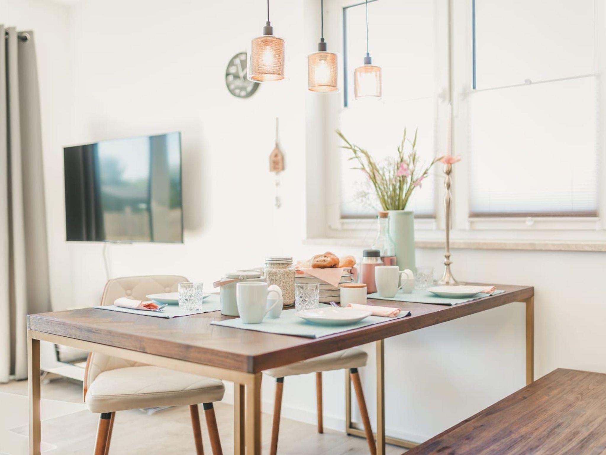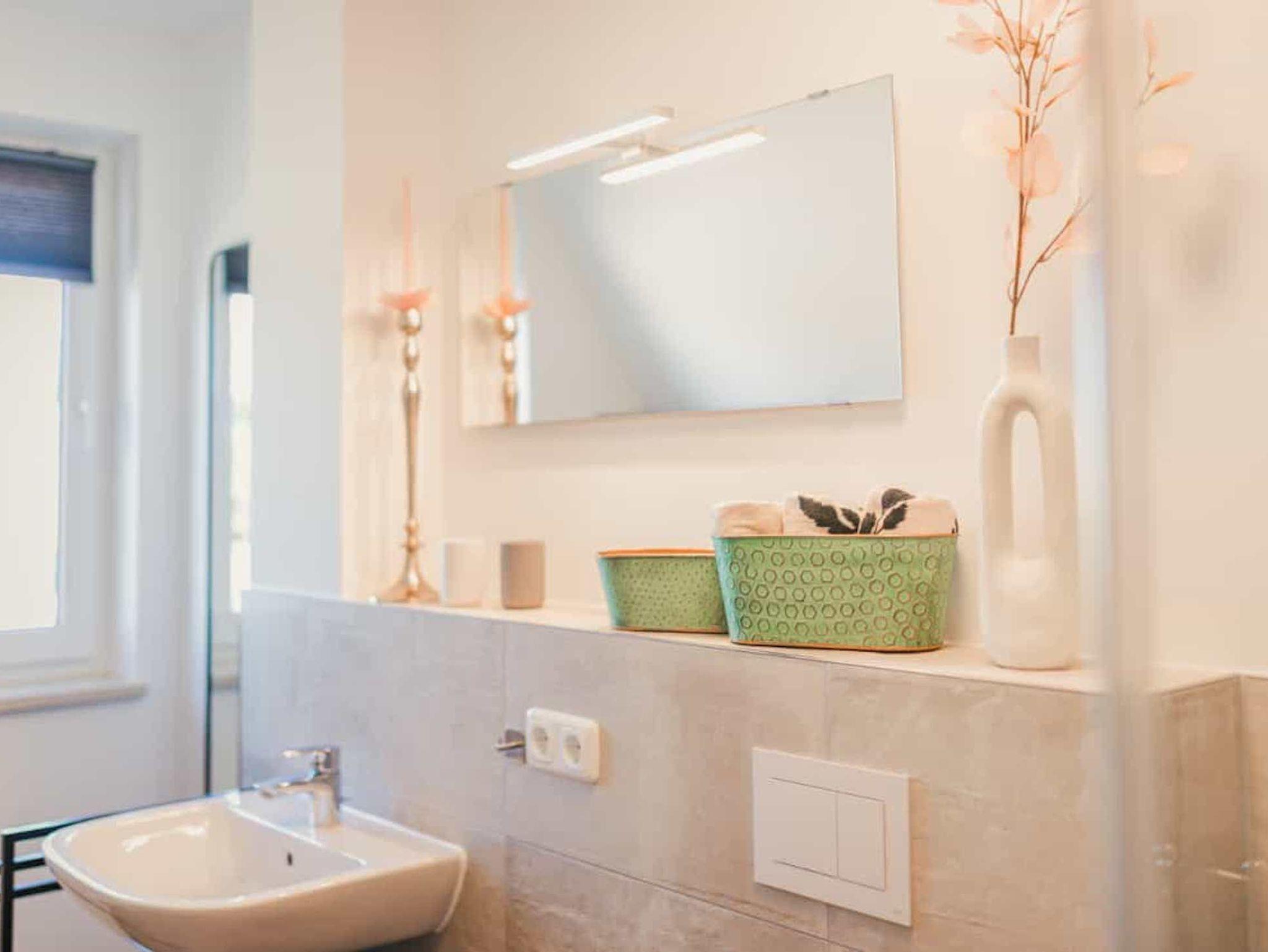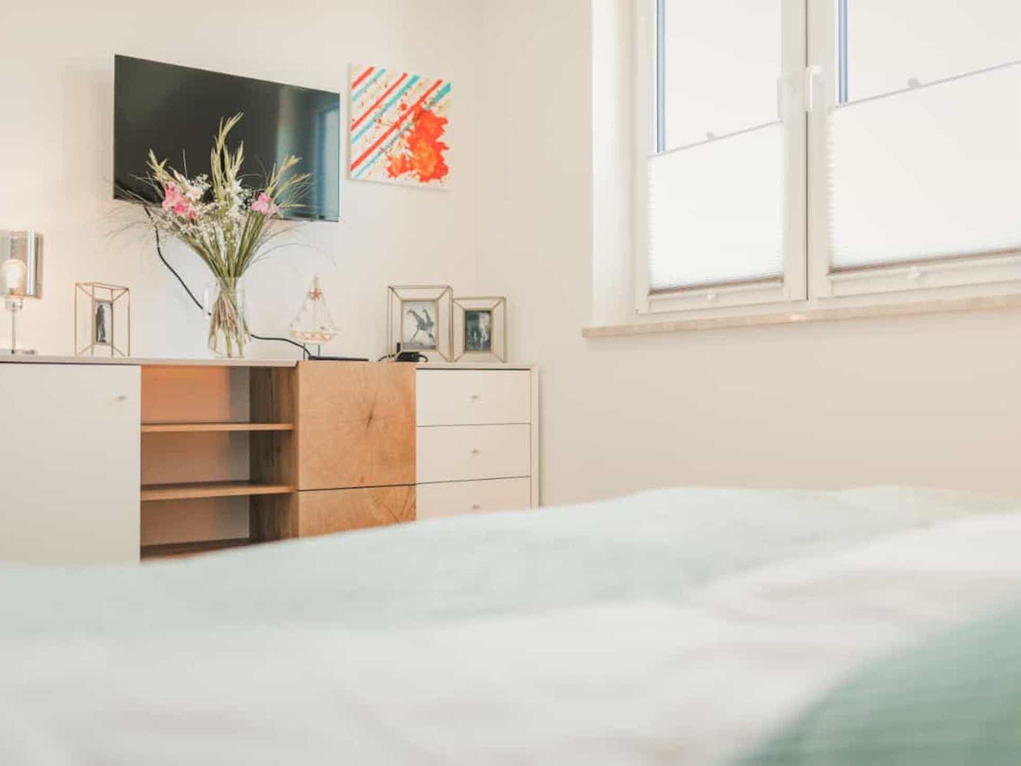 Im Obergeschoss erwarten Sie zwei schicke Schlafzimmer sowie ein Badezimmer mit komfortabler Badewanne und Dusche. Die Zimmer sind hochwertig und gemütlich, mit viel Liebe zum Detail eingerichtet. Die freundliche Atmosphäre trägt dazu bei, dass Sie sich wohl fühlen und die Seele baumeln lassen können. Jeder Schlafraum verfügt über einen eigenen Smart-TV und im größeren Zimmer befindet sich zusätzlich eine bequeme Schlafcouch.