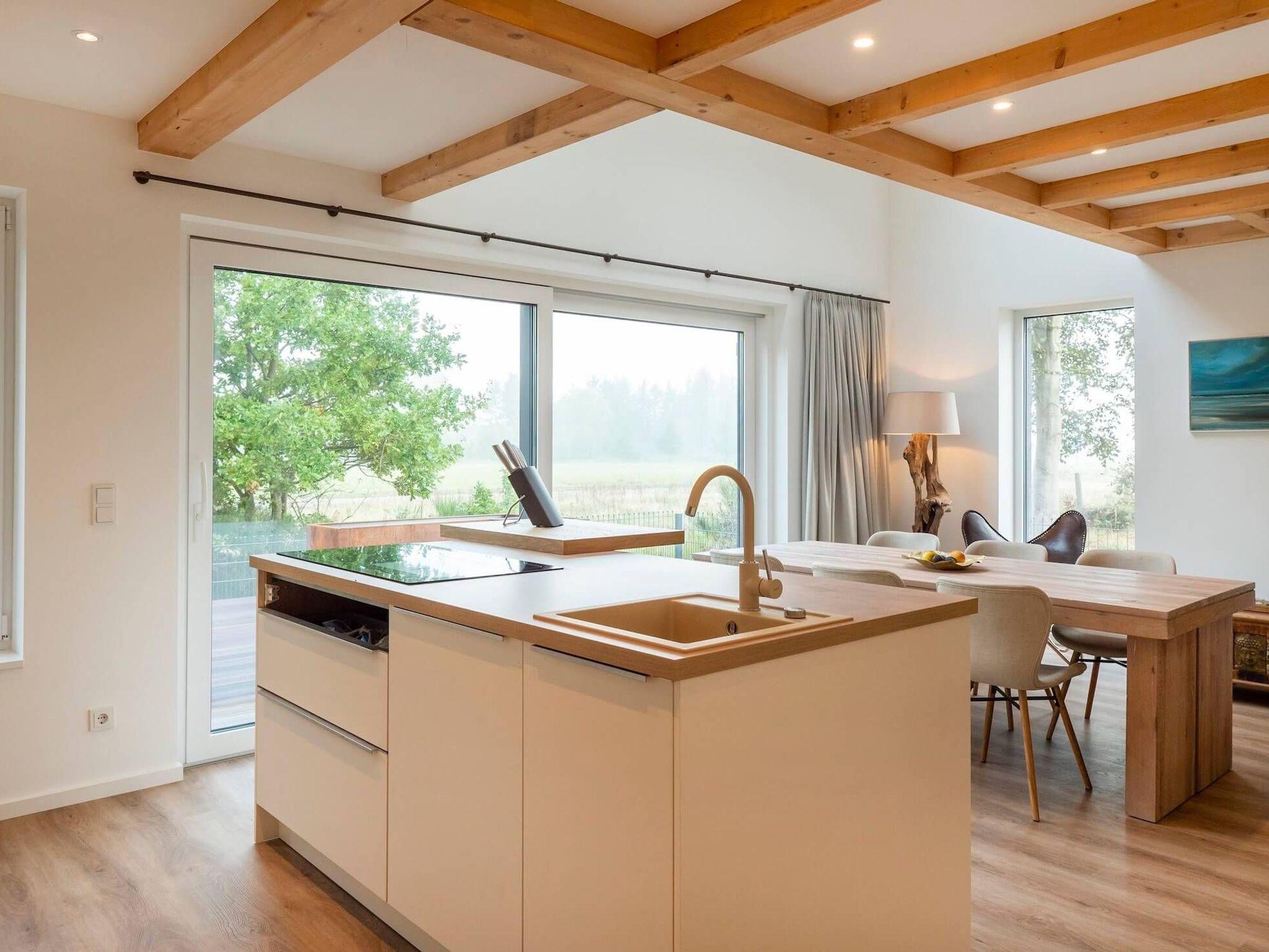 Das Haus liegt in ruhiger und idyllischer Lage, etwas Abseits vom Ortskern mit Blick auf den Bodden und hat Platz für 6 Personen und 1 Baby. Gerne kann der Familienhund mit. Das Haus ist durch seine einfache Grundstruktur sehr ruhig gehalten und komplett in moderner Holzbauweise individuell geplant und gebaut worden. Durch die extra grossen Fenster kommt viel Licht ins Haus und der im Gegensatz zur schwarz gestrichenen Fassade, ist der Innenbereich komplett hell gestrichen und alles ist auf einen individuellen Urlaub für sie eingerichtet. Viel Liebe, etwas Kunst und alles praktische für gutes Kochen, Wohnen und Gemeinsamkeit für Ihren Urlaub steckt in diesem Haus.