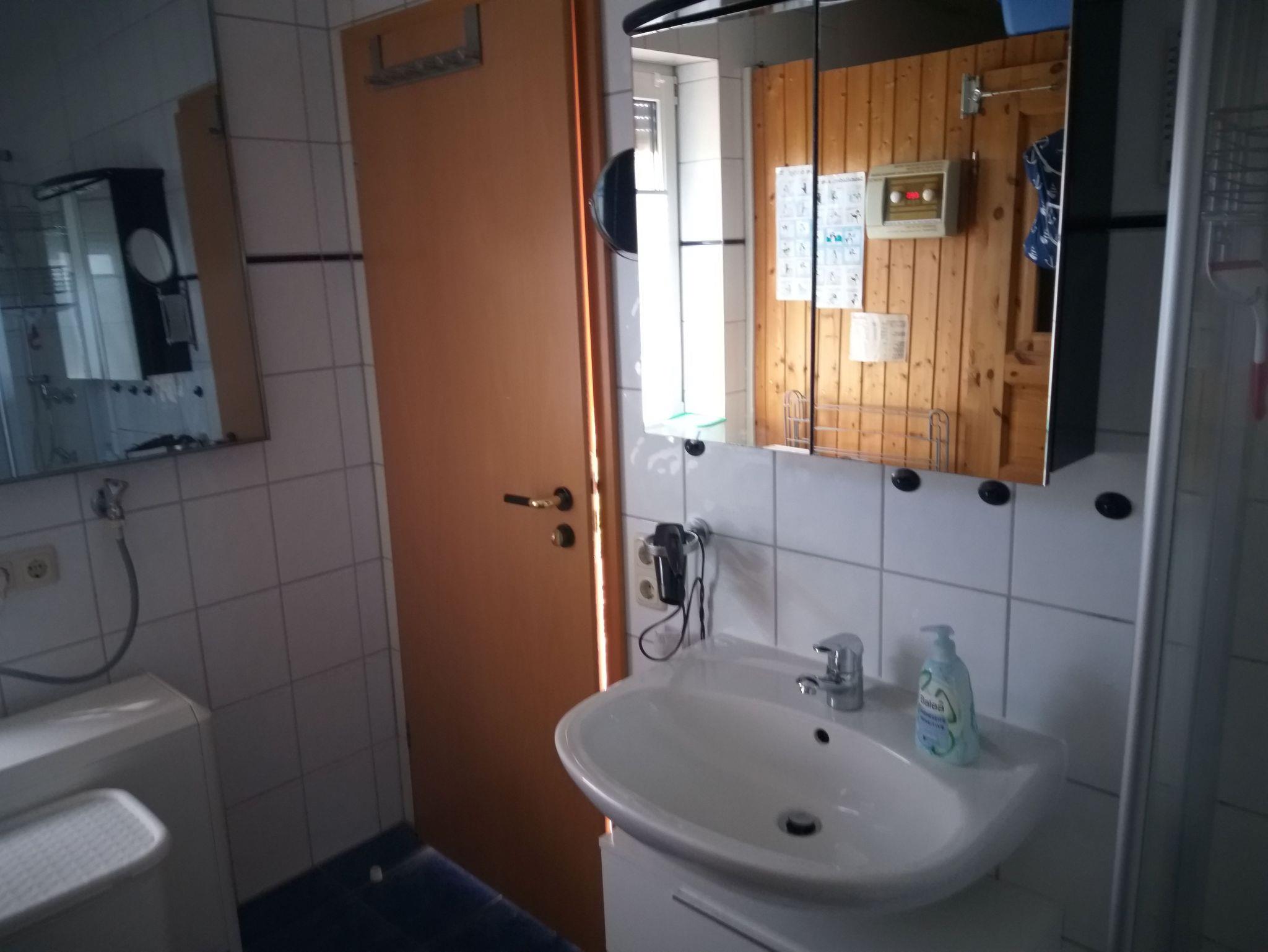 Badezimmer mit Dusche, WC, Waschmaschine, Sauna