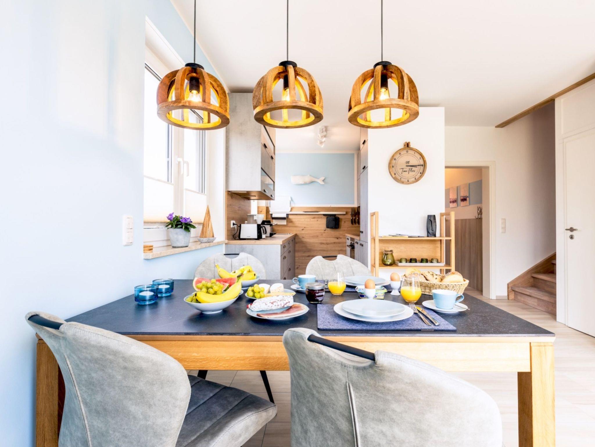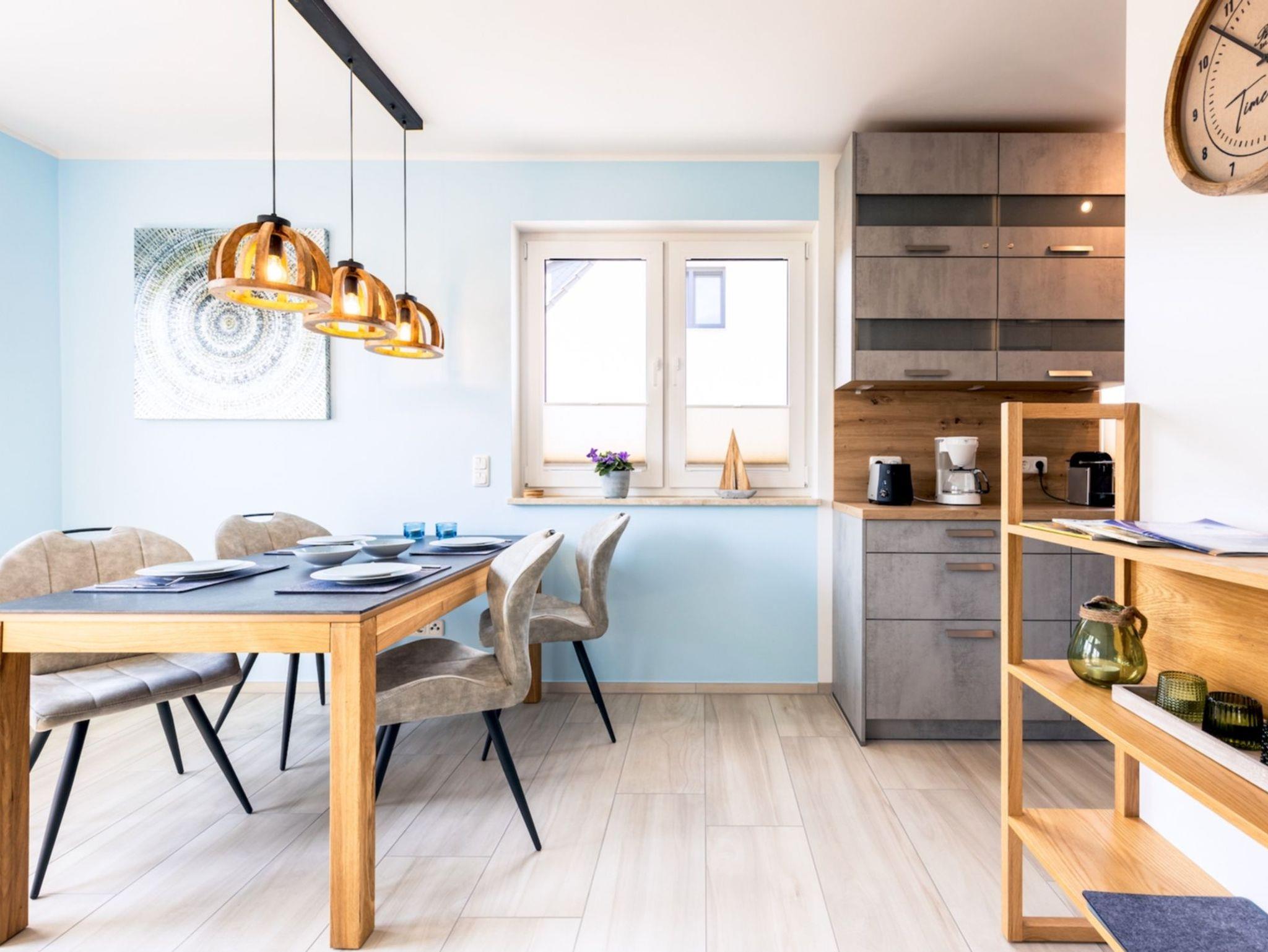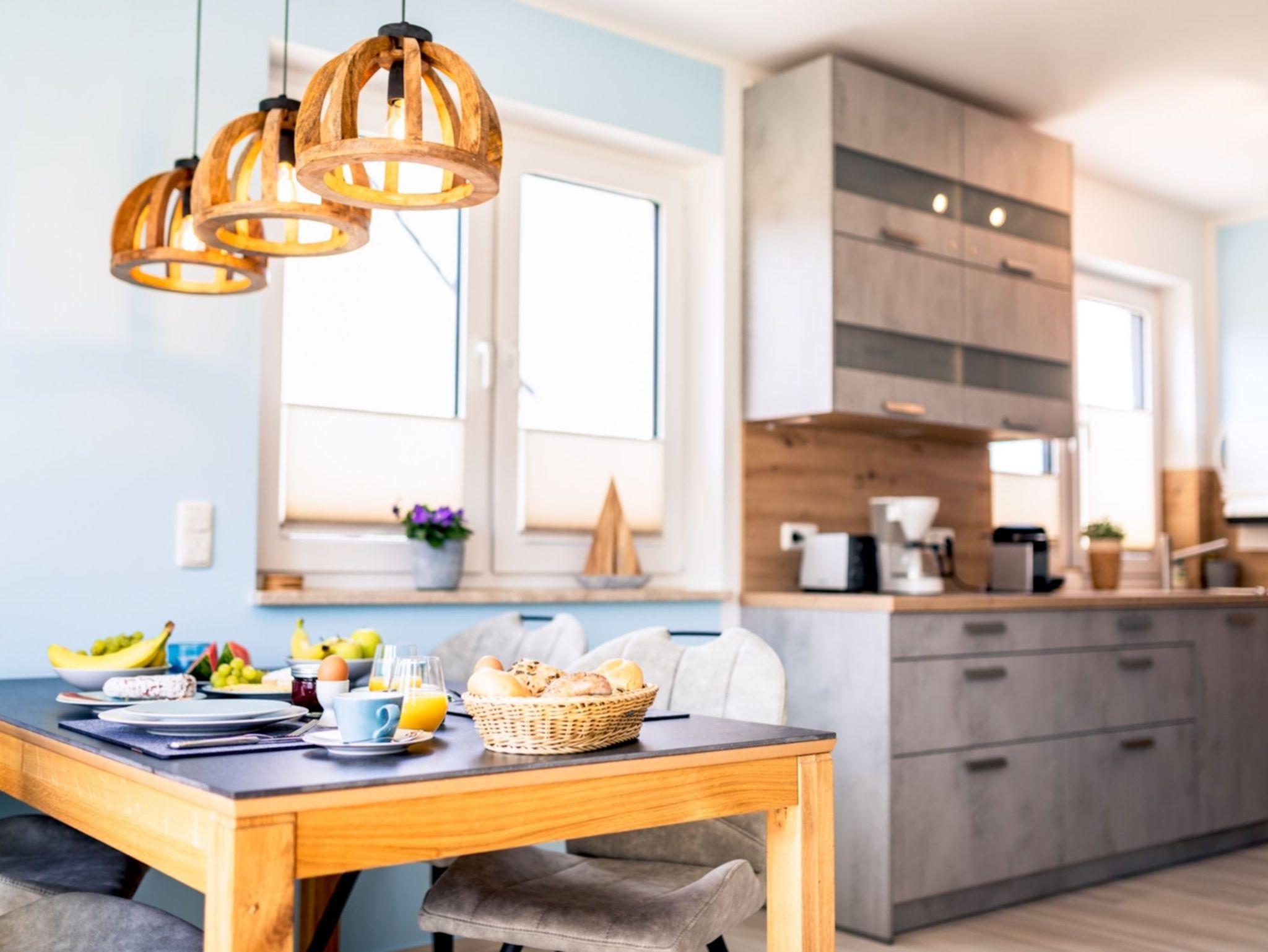 Im Erdgeschoss finden Sie einen kombinierten Wohn- und Essbereich, der geschmackvoll und komfortabel gestaltet ist. WLAN und Magenta TV mit Netflix sind in der Unterkunft kostenfrei vorhanden. Der angrenzende Küchenbereich lädt zum Verwöhnen ein, aufgrund der hochwertigen, vollständigen Ausstattung bleiben hier keine Wünsche offen. In dieser Etage steht ihnen auch ein Bad mit Fenster und Dusche zur Verfügung.