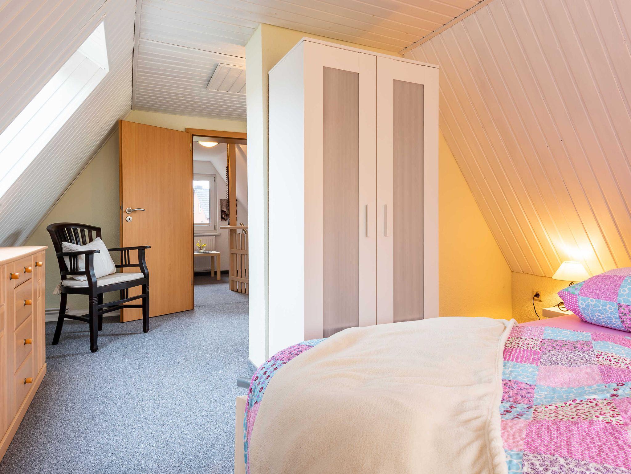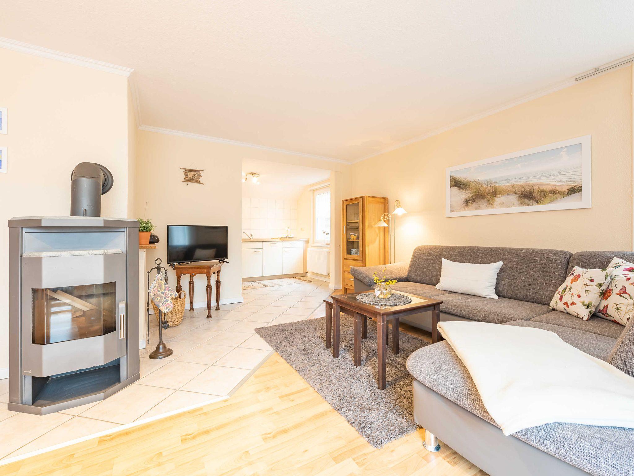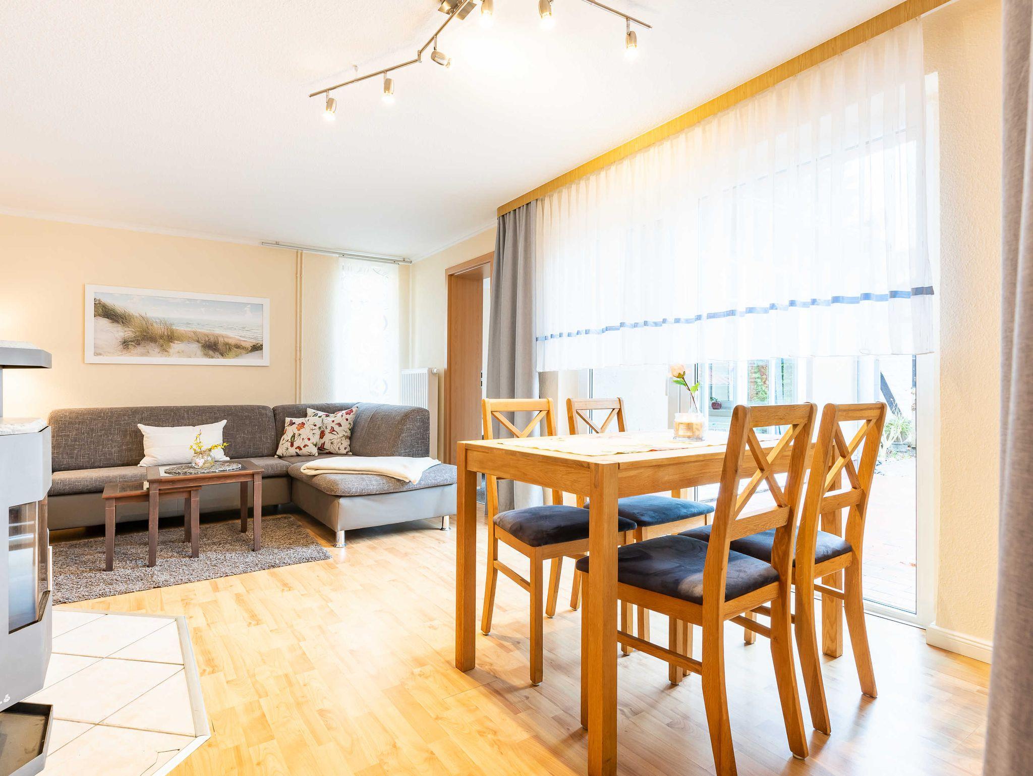 Ausstattung: 75 qm groß für 4 Personen, 2 Schlafzimmer mit Doppelbett und 2 Einzelbetten, Küche, Wohnbereich mit Kamin, Terrasse.