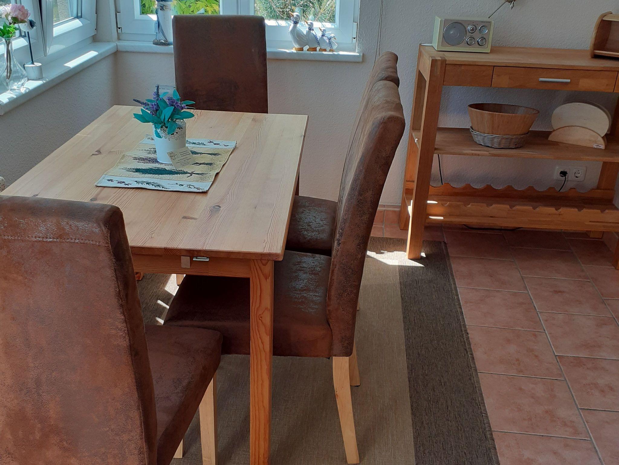 In ruhiger Lage in Fuhlendorf, nur ca. 300 m von einem kleinen Naturstrand am Bodden und ca. 800 vom Nachbarort Bodstedt mit Hafen, Restaurants sowie Badestrand entfernt, befindet sich auf einem 450 qm großen separaten Erholungsgrundstück das Ferienhaus für bis zu 4 Personen. Das etwa 74qm große, geschmackvoll eingerichtete Nichtraucherhaus wird zentral beheizt und verfügt über Insektenschutz an den Fenstern. Es ist ausgestattet mit einem separaten Wohnraum (Polstermöbel, Flachbild-TV, Radio), zwei Schlafzimmern (1 x Doppelbett, 1 x 2 Einzelbetten im Obergeschoss), einem offenen Wohnbereich (Sitzecke und Flachbild-TV), einer Küche (E-Kochfeld, Kühlschrank, Spülmaschine, , Mini-Backofen, diverse Küchengeräte) sowie einem Bad (Dusche/WC und Fön) und einem Gäste WC. Zusätzlich stehen eine möblierte Terrasse, Sonnenliegen, Sauna (gegen Gebühr), Parkplatz und Grill zur Verfügung. Das Rauchen ist nur im Freien erlaubt. Im Gesamtpreis sind die Wasser-und Energiekosten enthalten. Bettwäsche kann wahlweise mitgebracht oder mit gebucht werden (20,00 EUR/Pers.).
