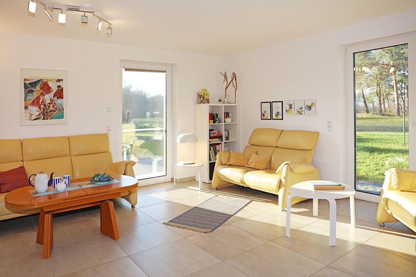 Ein geräumiges Ferienhaus für 2-8 Personen lädt auf einem großen Naturgrundstück zum Erholen ein. Die linke , nach Süden und Westen ausgerichtete Haushälfte ist das Haus Waldwiese. Das Nachbarhaus Eichenkrone ist auch über bestfewo buchbar.