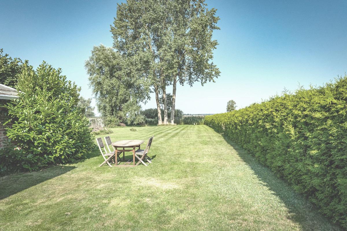 Genießen Sie die Weite und Ruhe auf der großzügigen Wiese hinterm Haus inklusive Grillplatz, Sitzgelegenheiten, Liegestühlen und Abstellraum mit Fahrrädern.