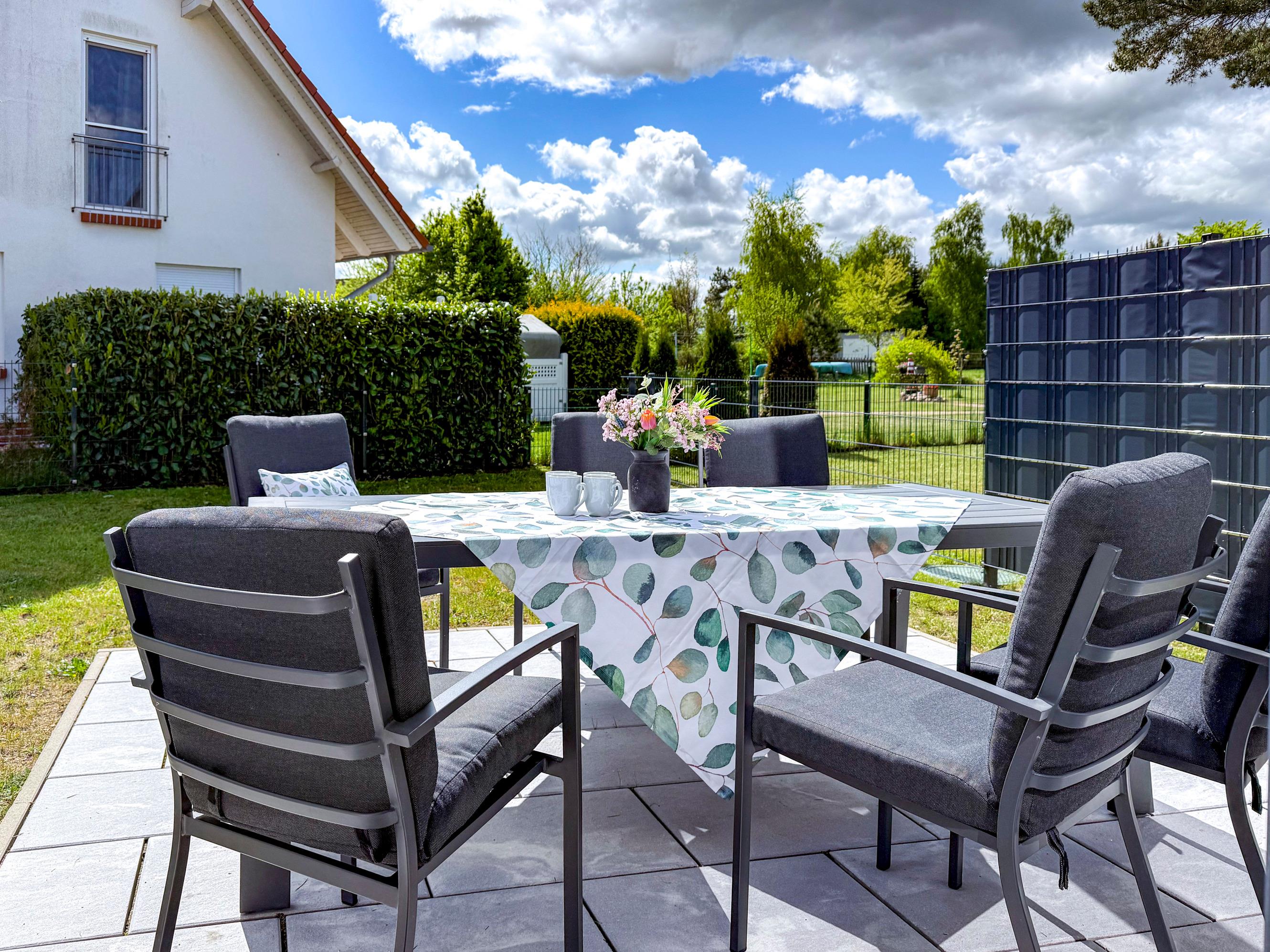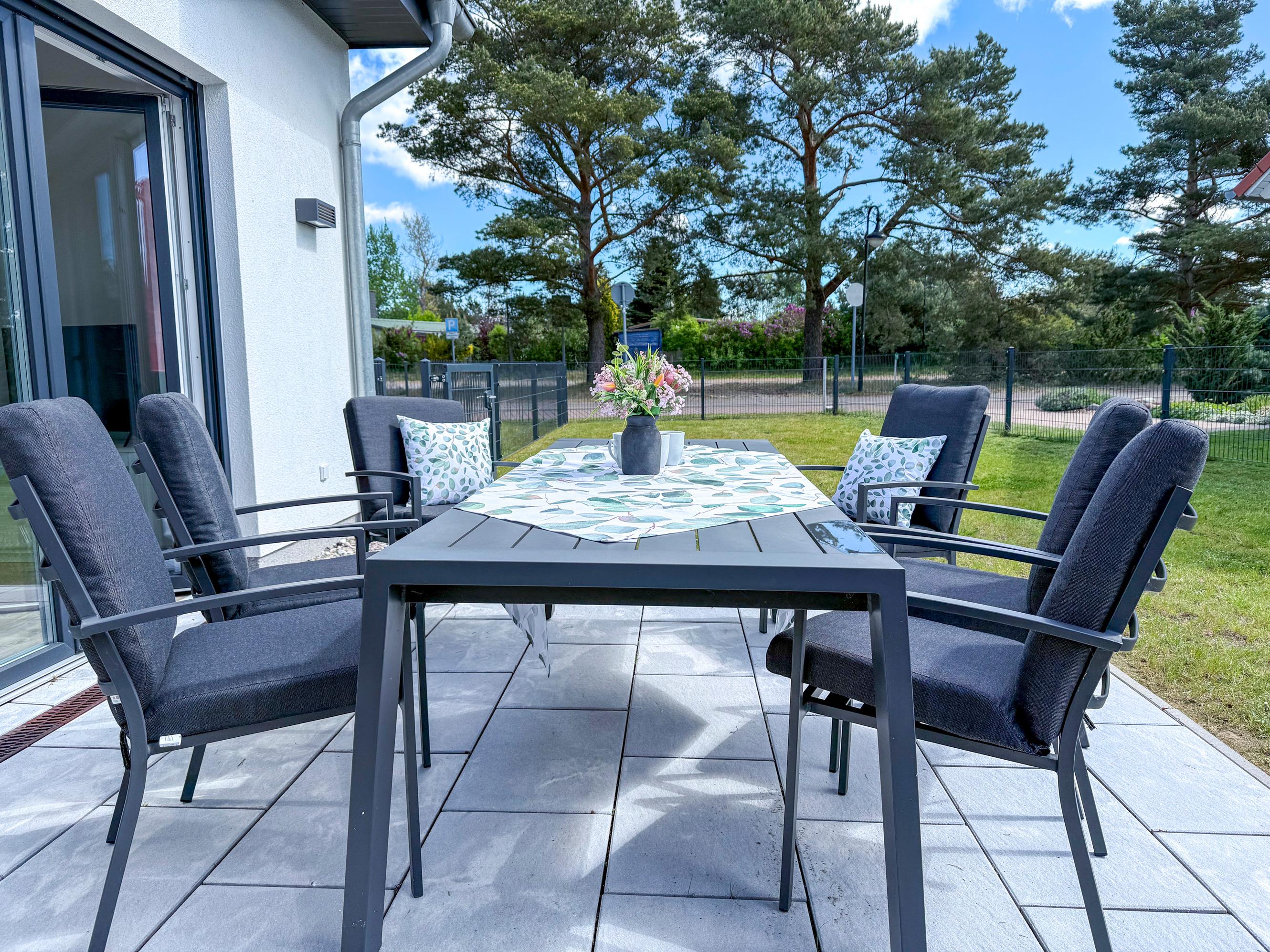 Terrasse [&] Garten: Großzügige Terrasse mit Gartenmöbeln – perfekt für sonnige Frühstücke oder entspannte Abende im Freien