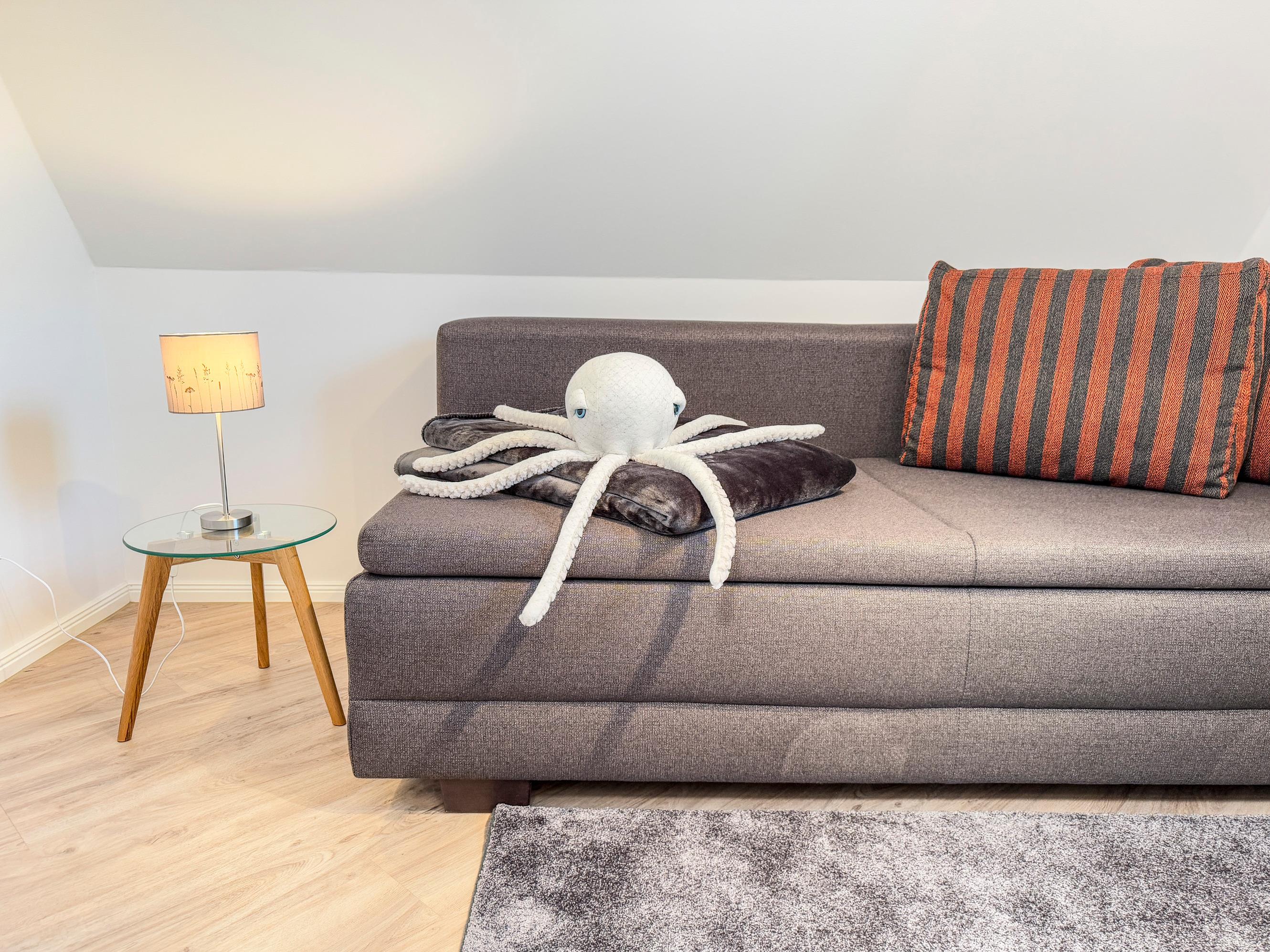 Für erholsame Nächte sorgen zwei Schlafzimmer mit hochwertigen Boxspringbetten und ein weiteres Gästezimmer mit einer bequemen Boxspringcouch. Beide Schlafzimmer verfügen über Sat-TV mit Sky.