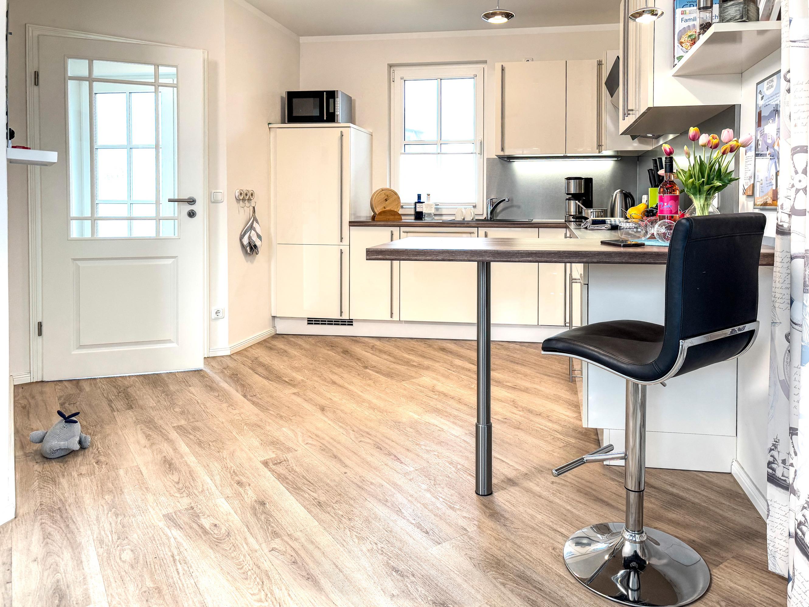 Der offene Wohn- und Essbereich mit Kamin lädt zu gemütlichen Abenden ein – sei es mit einem guten Buch, einem Glas Wein oder einem gemeinsamen Spieleabend. In der voll ausgestatteten Küche können Sie köstliche Mahlzeiten für Ihre Liebsten zaubern.