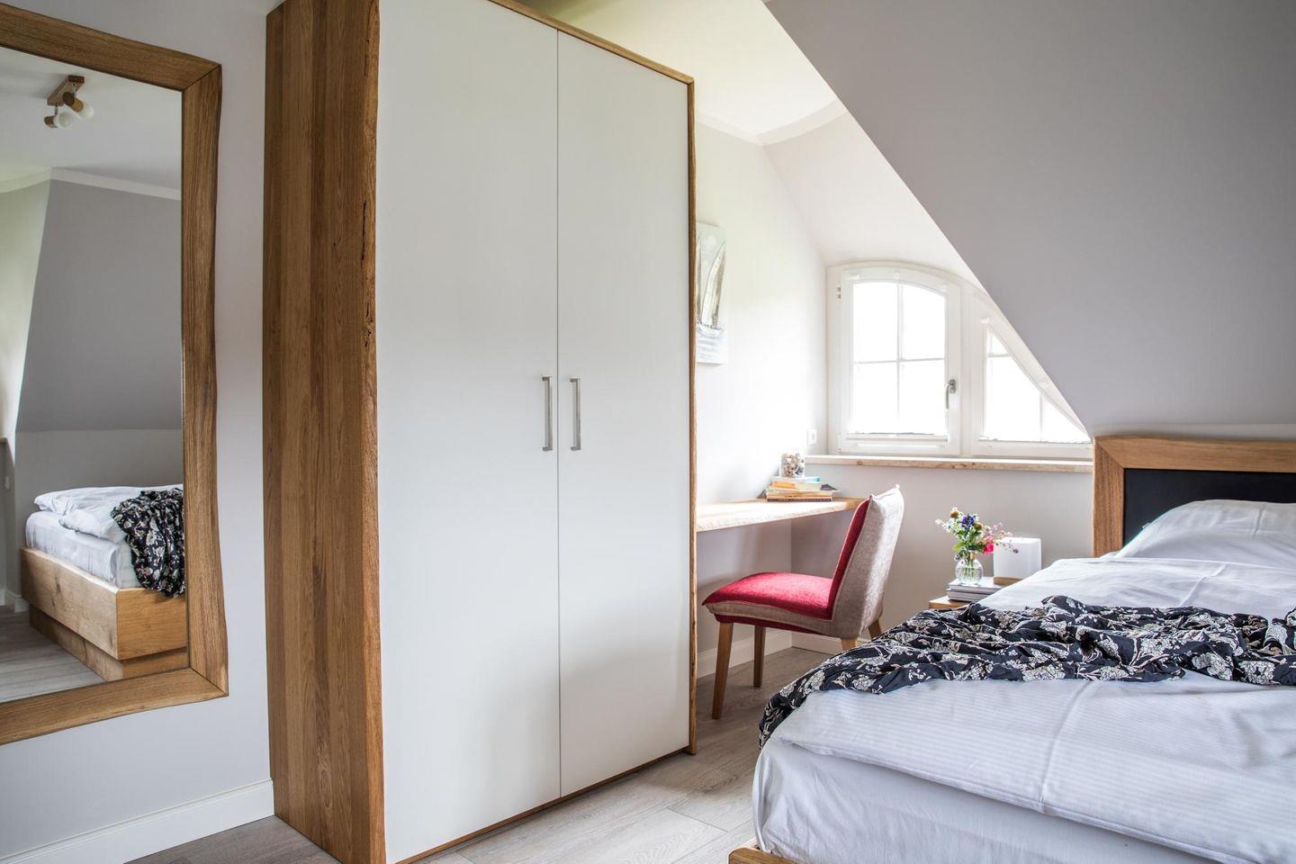 Dieses modern ausgestattete Ferienhaus mit traditionellem Reetdach, ortstypischer Feldsteineinfriedung und 720 m2 großem, komplett eingezäuntem Grundstück liegt in einer neuen Ferienhausanlage. Es bietet viel Platz für vier Feriengäste (zwei Schlafzimmer mit Doppelbett und TV) und verfügt über einen großzügigen Wohn-Essbereich, ein einladendes Wannen-/Duschbad mit WC und Sauna im OG sowie ein Gäste-WC im EG.
