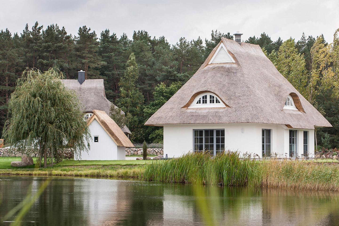 Dieses wunderschöne Ferienhaus mit traditionellem Reetdach, ortstypischer Feldsteineinfriedung und 740 m2 großem Grundstück am Teich liegt in einer neuen Ferienhausanlage. Es bietet großzügig Platz für sechs Feriengäste (drei Schlafzimmer mit Doppelbett, davon eins im EG) und verfügt über zwei hochwertige Bäder und ein Gäste-WC, davon ein Bad mit Badewanne und Dusche, ein Bad mit Dusche und Sauna.