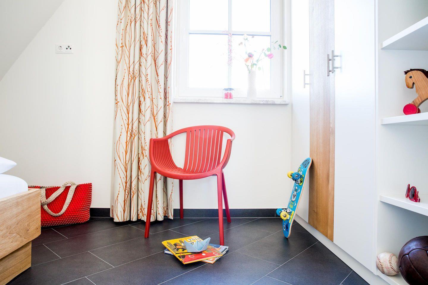 Das wunderschöne Ferienhaus mit traditionellem Reetdach, Fensterläden, ortstypischer Feldsteineinfriedung und 622 m2 großem Grundstück am Teich liegt in einer neuen Ferienhausanlage. Es bietet großzügig Platz für fünf Feriengäste (zwei Schlafzimmer mit Doppelbett, eins mit Einzelbett) und verfügt über ein Duschbad mit WC und Sauna im OG sowie ein Gäste-WC im EG.