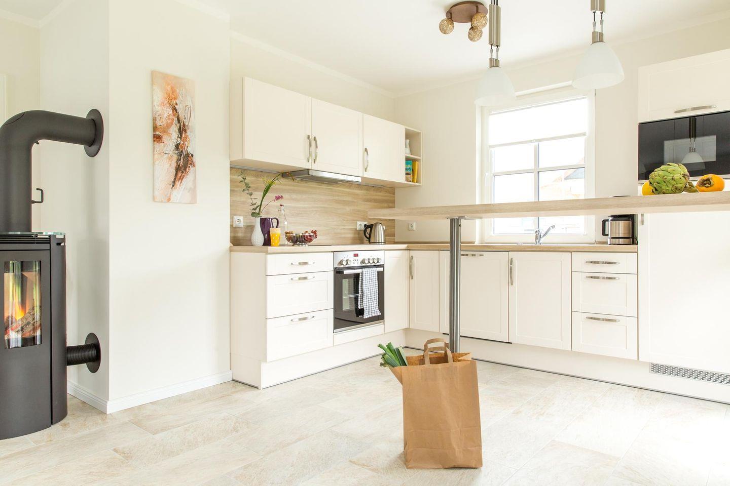Dieses modern ausgestattete Ferienhaus mit traditionellem Reetdach, ortstypischer Feldsteineinfriedung und 754 m2 großem eingezäuntem Grundstück liegt in einer neuen entstehenden Ferienhausanlage. Es bietet viel Platz für vier Feriengäste (zwei Schlafzimmer mit Doppelbett und TV) und verfügt über einen großzügigen Wohn-Essbereich, ein einladendes Wannen-/Duschbad mit WC und Sauna im OG sowie ein Gäste-WC im EG.