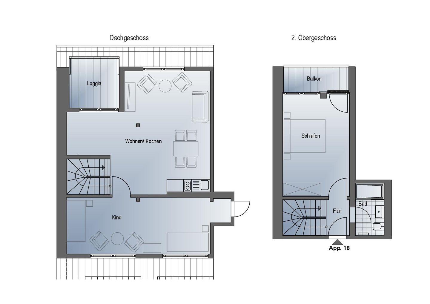 Auf dem Balkon und der Loggia stehen Ihnen moderne Terrassenmöbel zur Verfügung, sodass Sie beispielsweise Ihr Frühstück oder Ihr Abendessen ganz privat im Sonnenschein zu sich nehmen können.