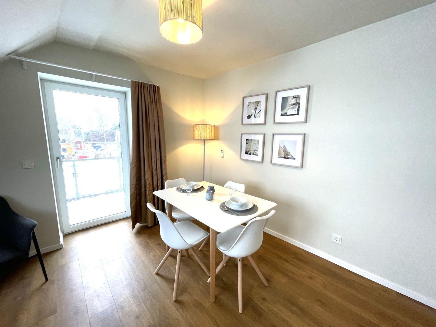 Das Appartement bietet auf 42 qm genügend Platz für bis zu 4 Personen. Genießen Sie Ihren Traumurlaub am Bodstedter Bodden im Baltic Lagoon Resort in Fuhlendorf und fühlen Sie sich wie Zuhause. Restaurant und Strand befinden sich direkt im Resort.