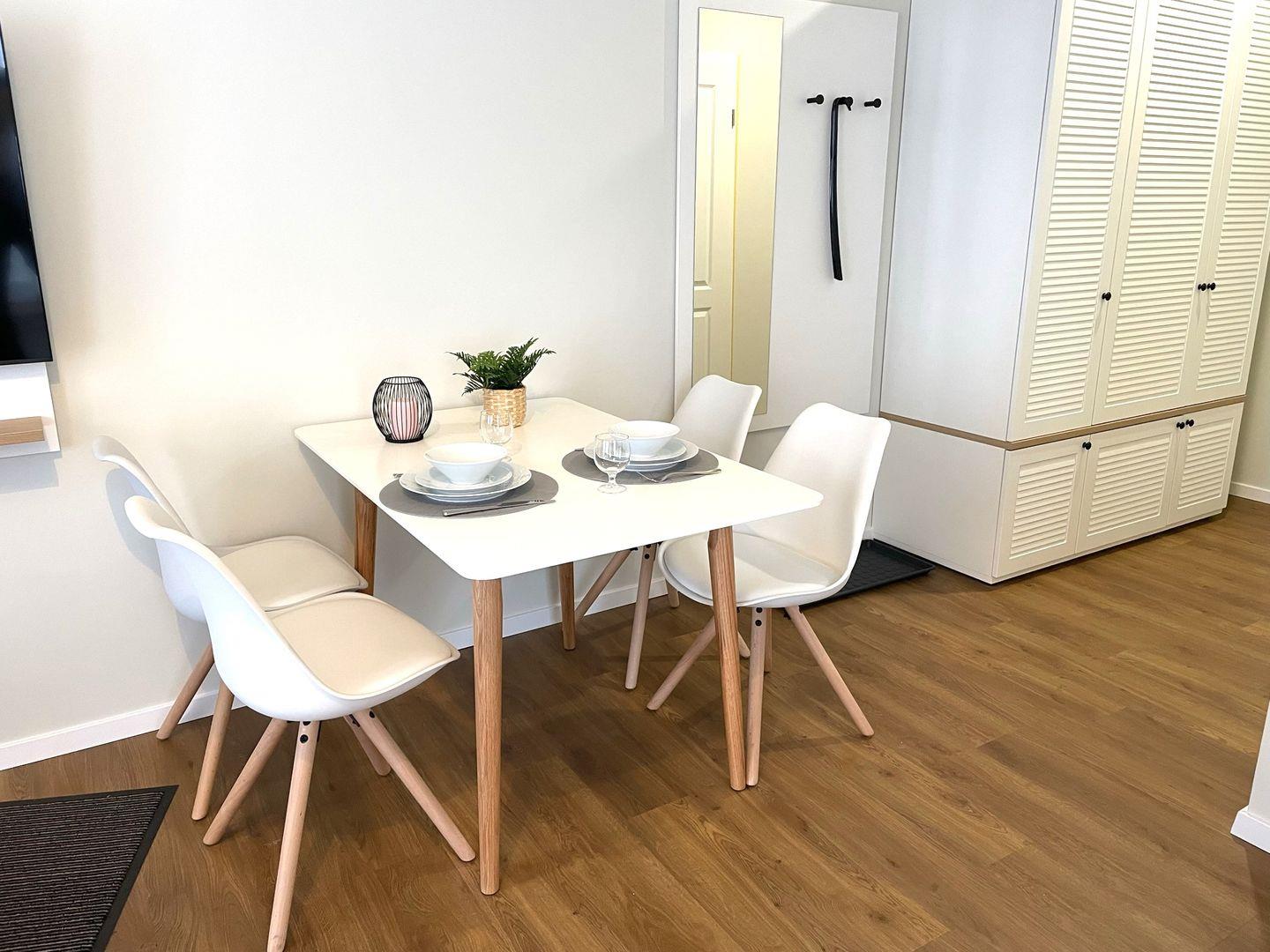 Kostenfreies WLAN und ein fester PKW-Stellplatz am Haus sind bei diesem Appartement inklusive.