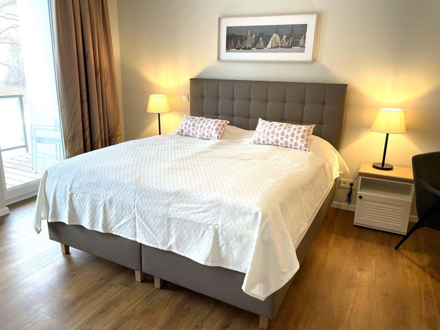 Das komfortable Appartement bietet auf 38 qm Platz für bis zu 2 Personen. Der gemütliche Wohn- und Schlafbereich besitzt ein modernes Doppelbett (1,80m x 2,00m), auf welchem Sie Ihre Erholung finden werden. Zu Ihrem Entertainment dient ein moderner Flatscreen-TV. Ein Kinderbett sowie ein Hochstuhl können auf Anfrage hinzugebucht werden.