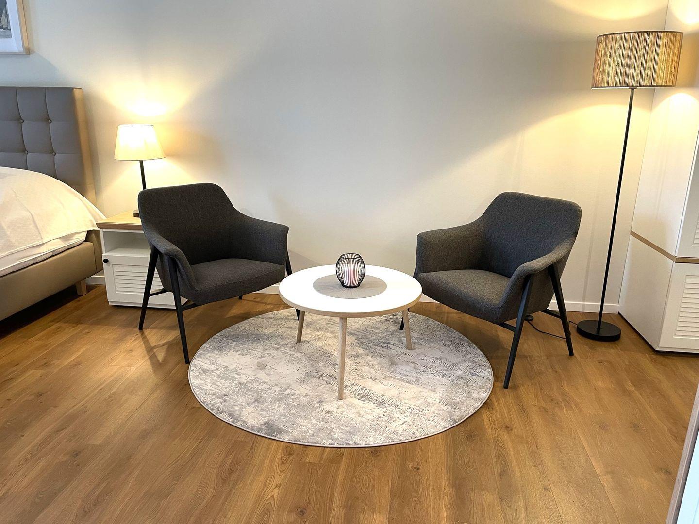 Das komfortable Appartement bietet auf 38 qm Platz für bis zu 2 Personen. Der gemütliche Wohn- und Schlafbereich besitzt ein modernes Doppelbett (1,80m x 2,00m), auf welchem Sie Ihre Erholung finden werden. Zu Ihrem Entertainment dient ein moderner Flatscreen-TV. Ein Kinderbett sowie ein Hochstuhl können auf Anfrage hinzugebucht werden.
