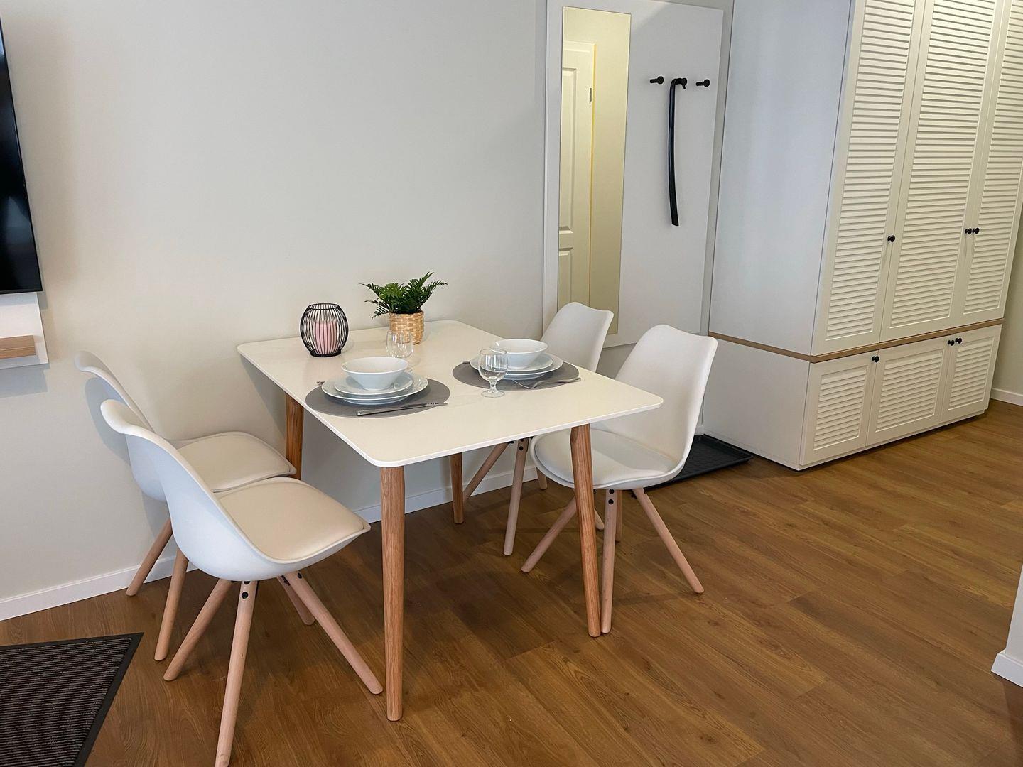 Kostenfreies WLAN und ein fester PKW-Stellplatz am Haus sind bei diesem Appartement inklusive.