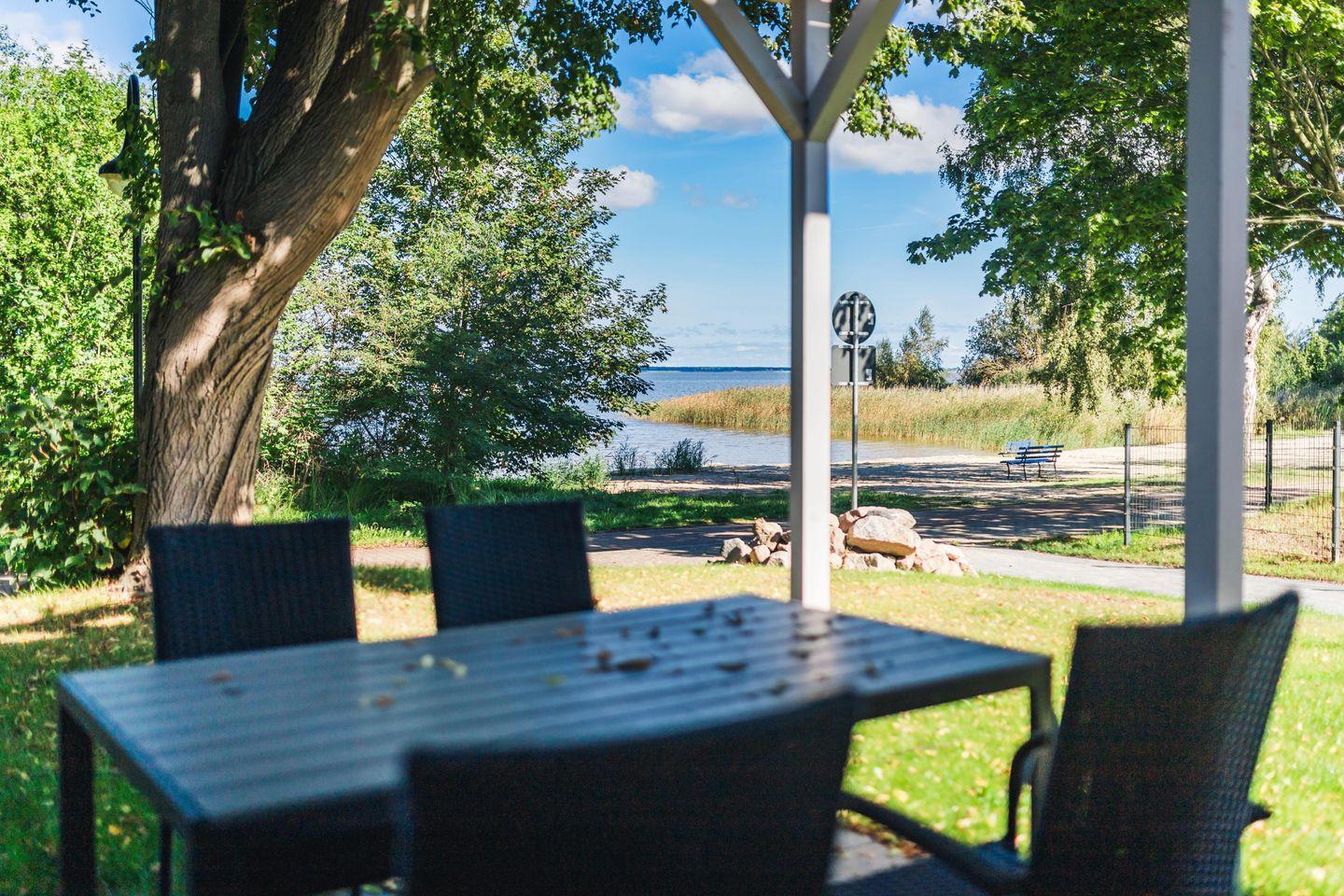 Auf der Terrasse stehen Ihnen moderne Terrassenmöbel zur Verfügung, sodass Sie beispielweise Ihr Frühstück oder Ihr Abendessen ganz privat im Sonnenschein zu sich nehmen können. Das Baltic Lagoon Resort liegt direkt am Bodstedter Bodden in Fuhlendorf und verfügt über einen eigenen Strand, an welchem Sie die Sonnenstunden genießen können und eine kühle Erfrischung finden.