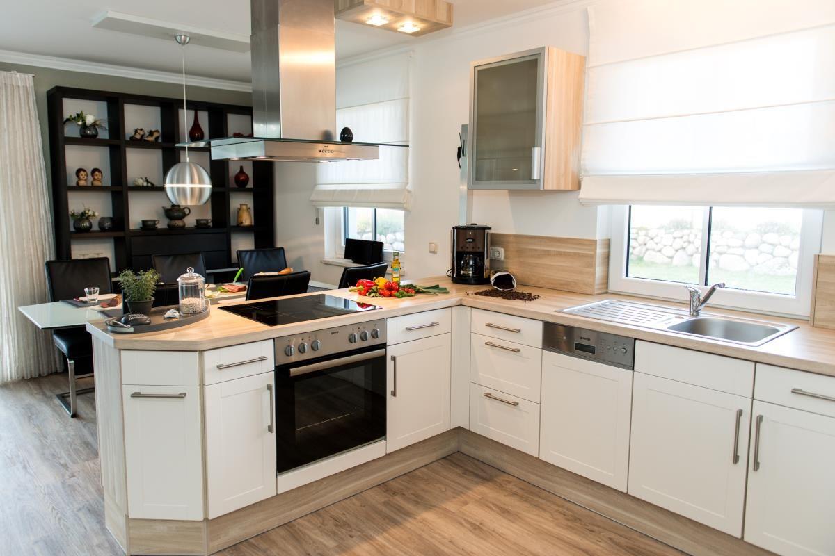 Im Erdgeschoss befindet sich eine großer, im aktuellen Design eingerichteter Wohnbereich mit Kaminofen, einem Essplatz mit Lederstühlen und integrierter voll ausgestatteter Einbauküche. Der gemütliche Sitzbereich besteht aus Ledersofa, Sessel und einem 32 ’’ großen Fernseher in 3 D mit Blu-Ray Player zur Unterhaltung. Durch den Anschluss an das Glasfasernetz ist ein besonders schneller Internetzugang mit kostenlosem WLAN sichergestellt.