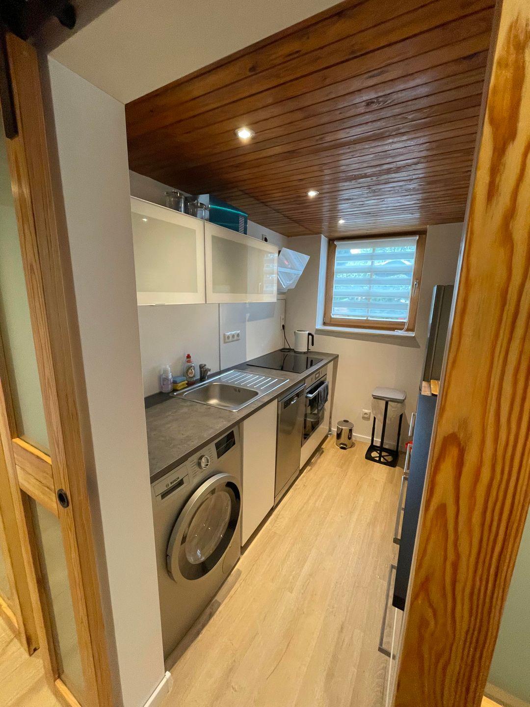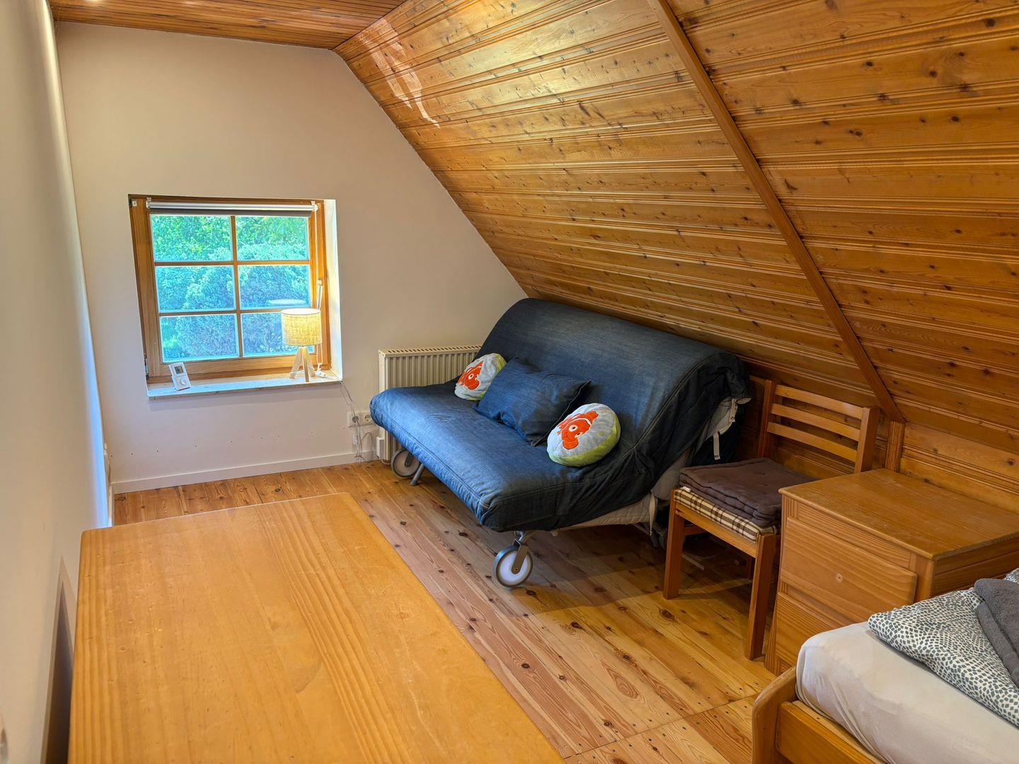 Die beiden Schlafzimmer sind hell und freundlich gestaltet. Der gesamte Bodenbereich des Wohnzimmers ist mit Laminat ausgelegt, während die Schlafzimmer einen charmanten Dielenboden aufweisen, der das rustikale Flair dieser Unterkunft unterstreicht. Im Badezimmer finden Sie eine bodengleiche Dusche sowie alle notwendigen sanitären Einrichtungen. Auch ein Gäste-WC steht zur Verfügung, was zusätzlichen Komfort bietet.