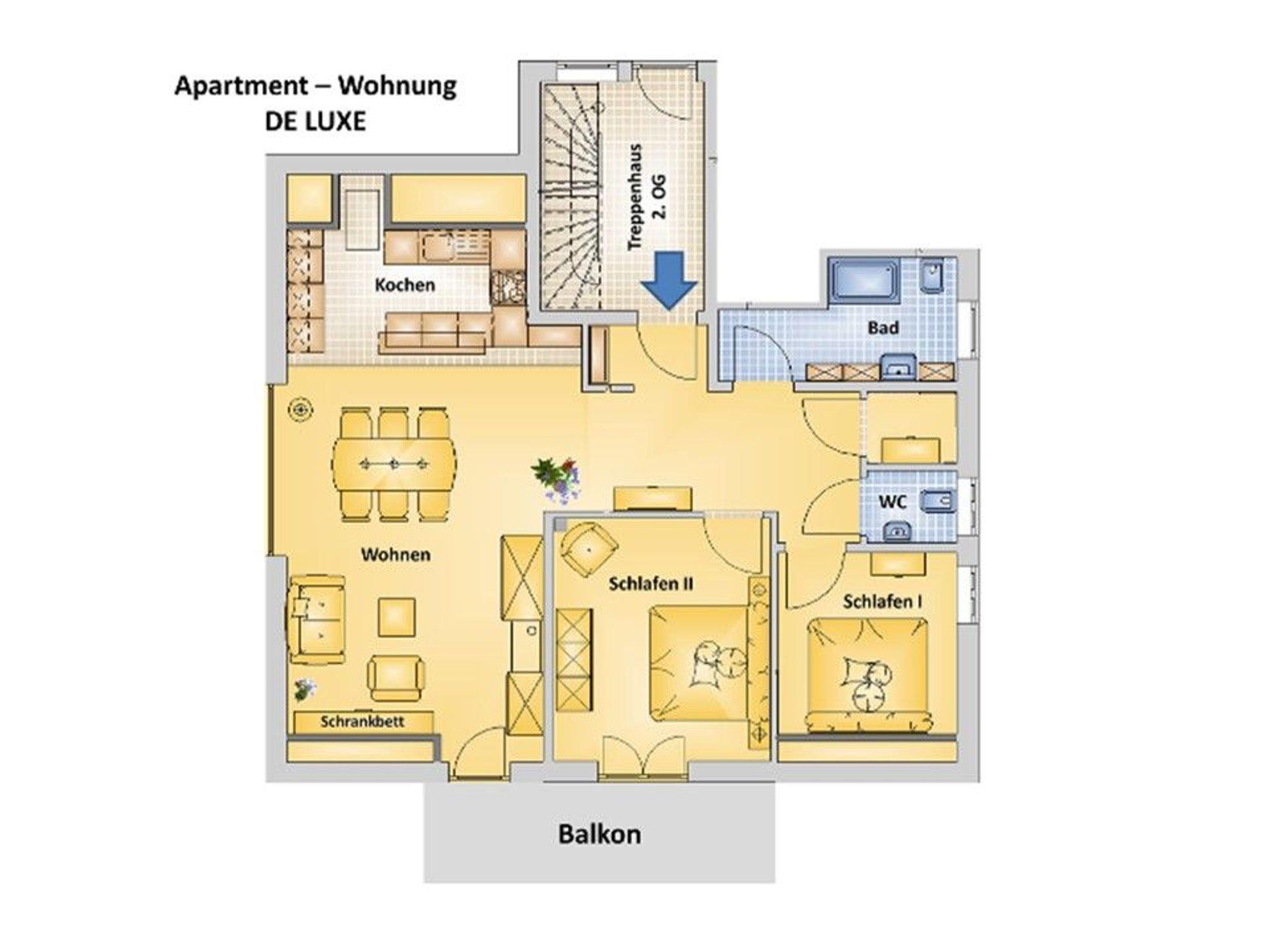 Neben dem Doppelzimmer läßt steht ein Schrankbett noch zur Verfügung, so dass ggfs. auch Familien das Apartment nutzen können.