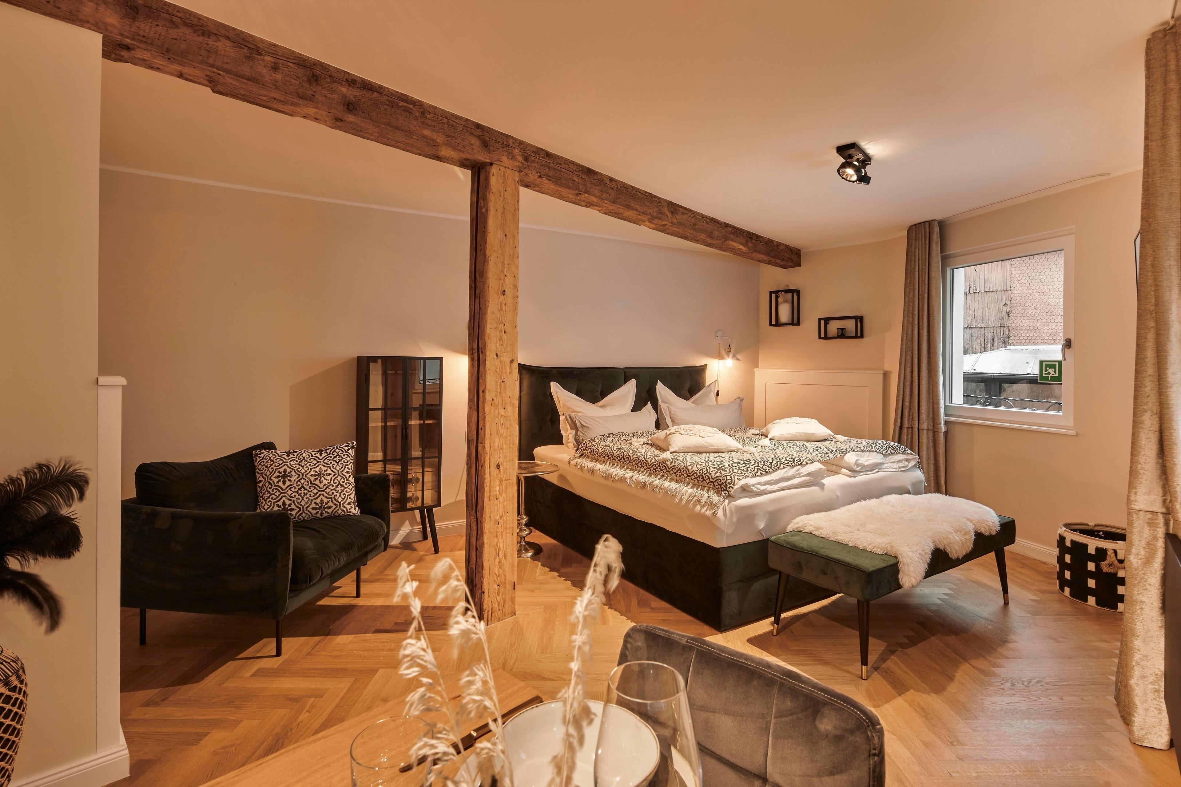 Mitten im Herzen der Fuldaer Altstadt in einem der ältesten Häuser der Barockstadt liegt das Loft 1540. Vier luxuriösen Boutiqueferienwohnung bieten den Feriengästen hier den optimalen Ausgangspunkt für ausgedehnte Stadtbummel oder die Erkundung der nahegelegenen Rhön. Die Designwohnungen sind zwischen 36qm und 92qm und verfügen alle über großzügige Bäder mit Rainshower-Dusche sowie große Boxspringbetten. Die Verbindung von Tradition und Moderne prägt die individuelle Atmosphäre im Loft 1540.