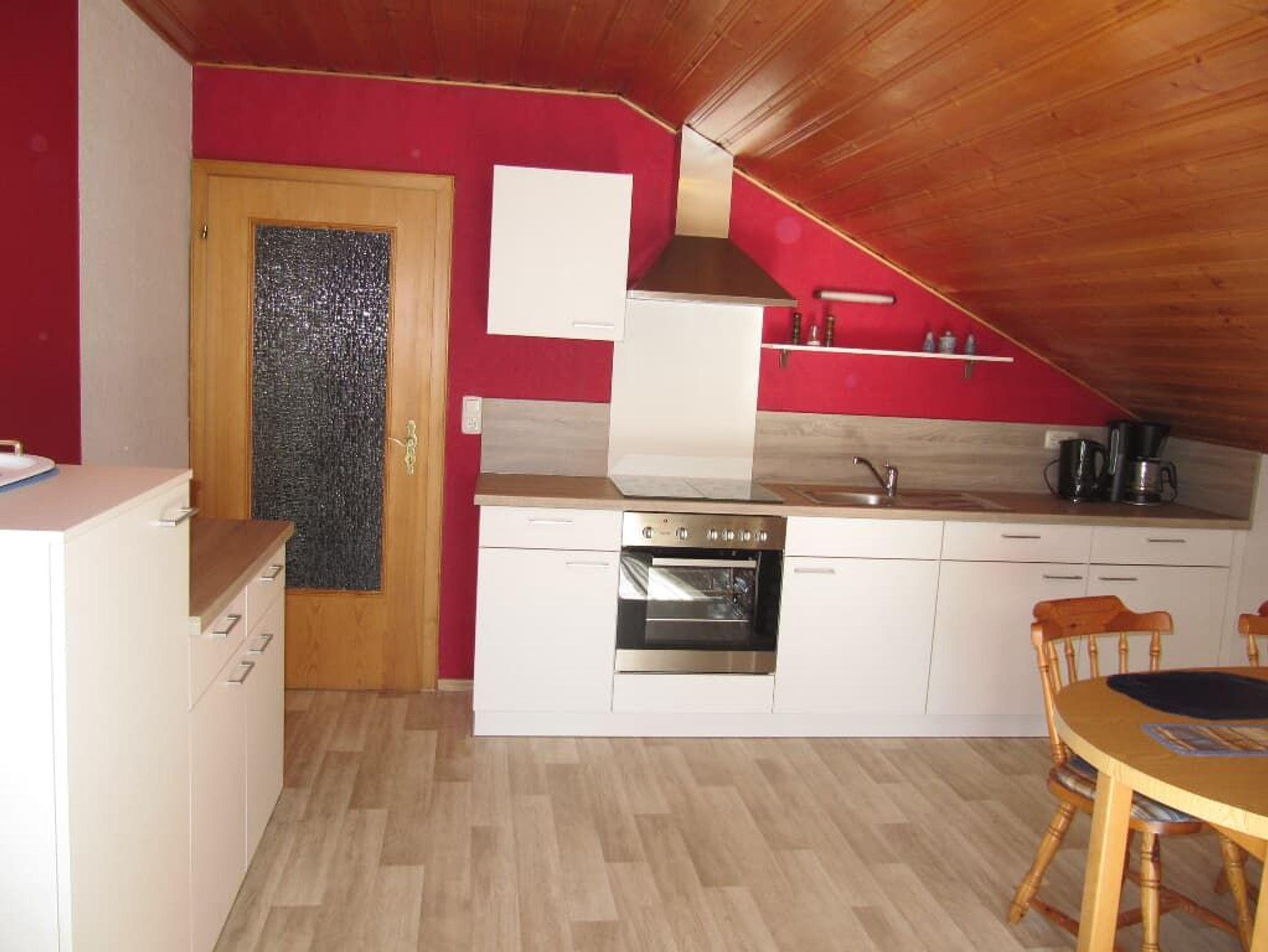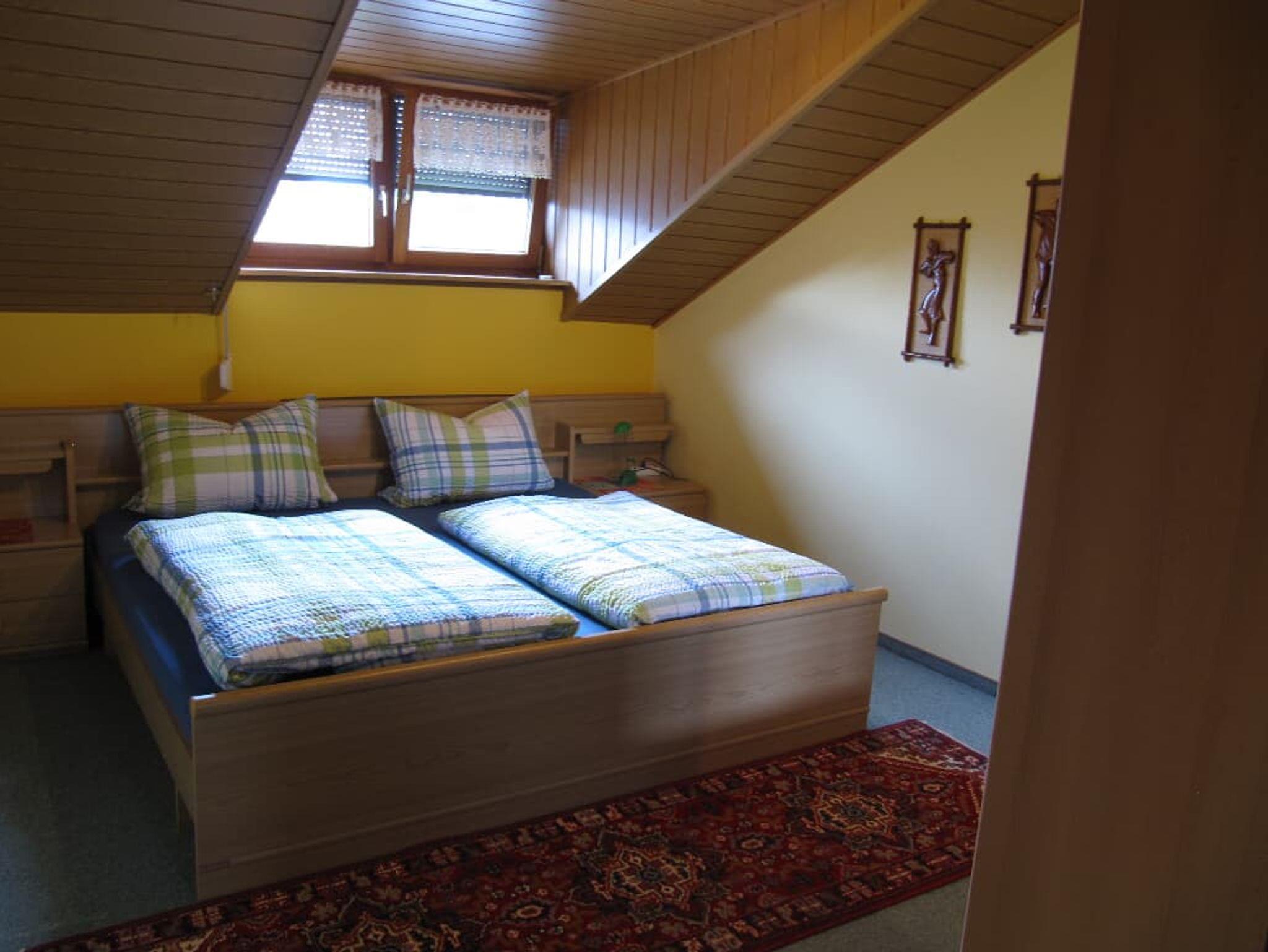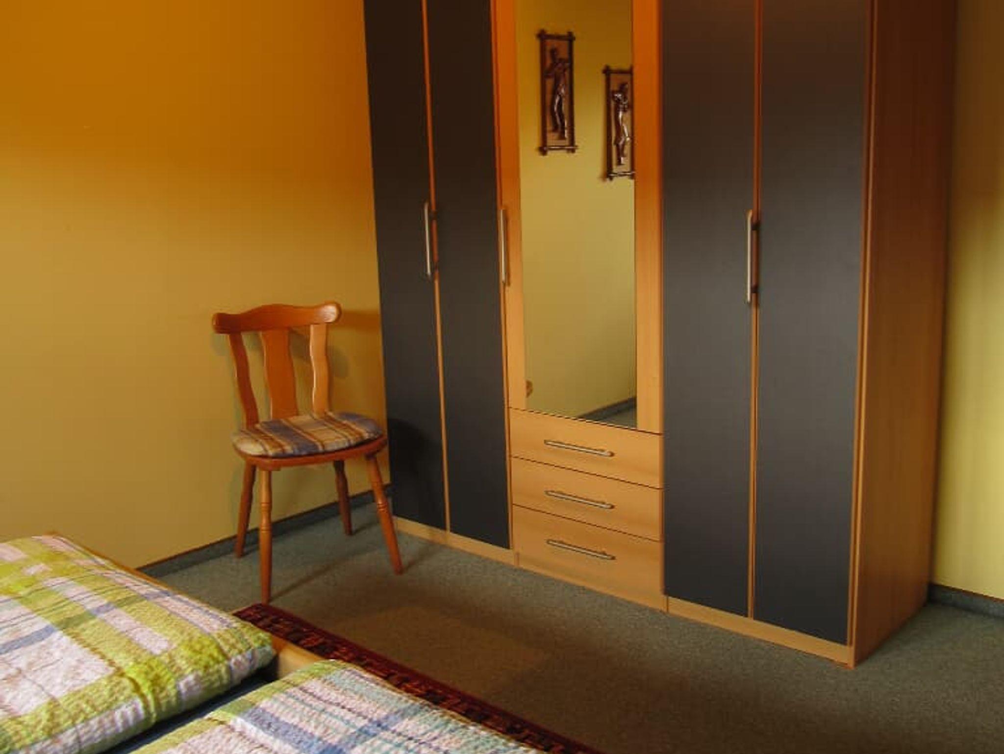 Die gemütliche Wohnung im 1. Stock hat eine vollständig eingerichtete Küche mit großem Esstisch, Kühlschrank, E-Herd, Kaffeemaschine, Toaster, Brotmaschine, Mikrowelle und Wasserkocher. Im Wohnzimmer finden Sie eine gemütliche Couchecke mit TV. Die Couch kann zur Schlafcouch umgewandelt werden (Zusatzbett für Kind auf Anfrage und gegen Aufpreis möglich). Das Schlafzimmer ist mit Doppelbetten ausgestattet. Bei Bedarf steht auch ein Kinderbett und ein Hochstuhl für unsere kleinsten Gäste zur Verfügung. Bettwäsche und Handtücher werden von uns zur Verfügung gestellt. Unser Badezimmer ist mit Badewanne, Dusche und Waschbecken ausgestattet. Das WC befindet sich in einem separaten Raum. Der an der Südseite befindliche Balkon ist von Küche und Wohnzimmer aus erreichbar. Die ca. 60qm große Wohnung hat einen separaten Eingang, der über eine Außentreppe erreichbar ist.