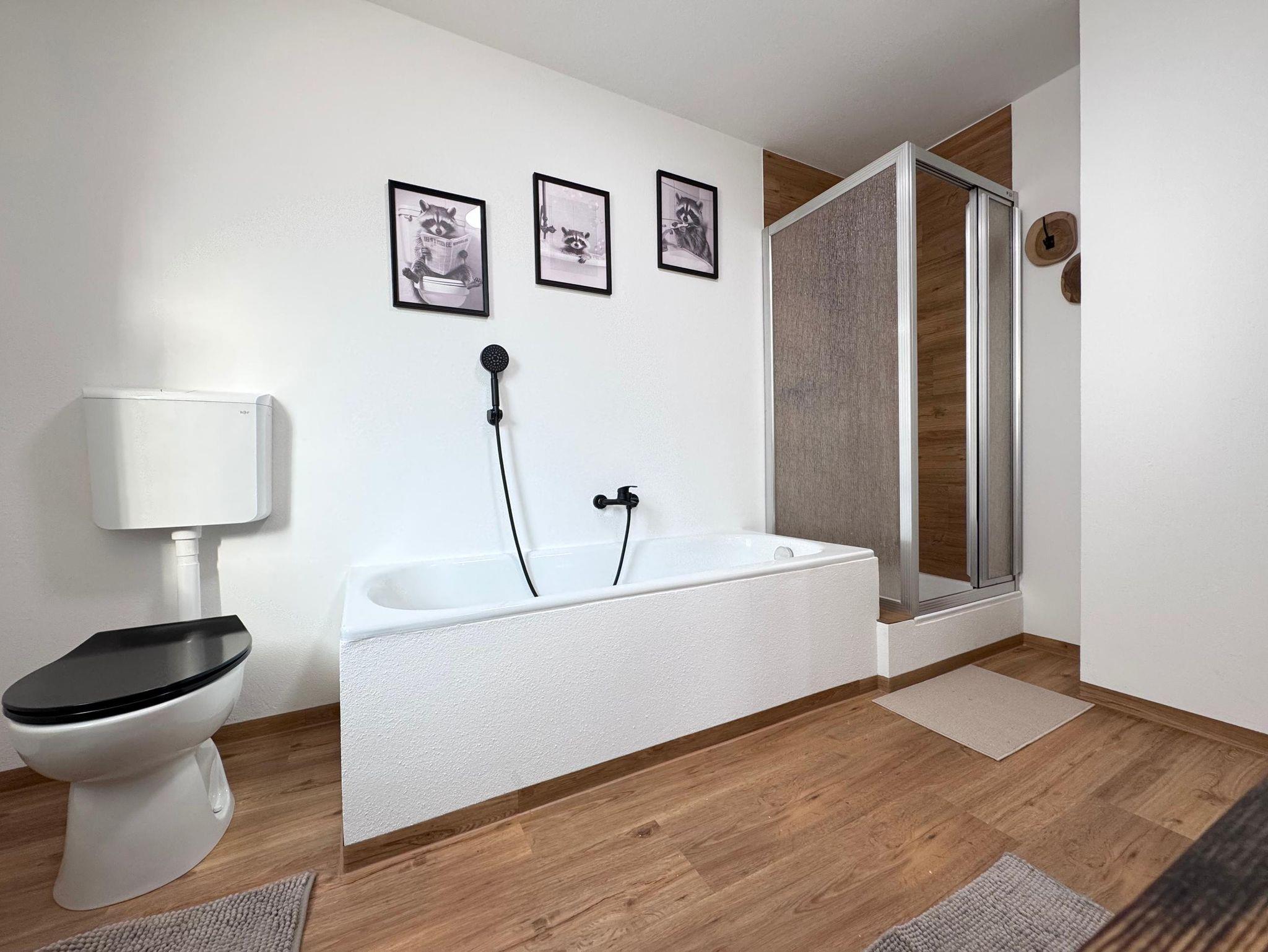 Unser Ferienhaus mit 81m² Wohnfläche über zwei Etagen bietet Platz für 1-6 Personen. Das gemütliche Wohnzimmer mit Schlafsofa und Flachbild-TV lädt zum Verweilen ein. Auf dem Sofa findet eine Person noch gemütlich Platz zu schlafen. Die komplett ausgestattete Küche mit Kühlschrank inkl. Gefrierfach, Herd, Backofen, Mikrowelle, Wasserkocher, Toaster und einer Senseo-Kaffeemaschine, lässt keine Wünsche offen. Das geräumige Badezimmer mit Dusche und Badewanne befindet sich im Erdgeschoß. Das Ferienhaus verfügt über 3 Schlafzimmer. Die Schlafzimmer und ein Gäste-WC befinden sich im ersten Stock zu dem eine Wendeltreppe führt. Das große Schlafzimmer hat ein 1,90 Meter breites, elektrisch verstellbares Boxspringbett mit Zugang zu einem Balkon und einem Babybett. In dem etwas kleinerem Schlafzimmer befindet sich sich ein 1,40 Meter breites Boxspringbett und das Kinderzimmer ist mit einem Doppelbett ausgestattet. Vor allem im Sommer können Sie entspannte Grillabende in unserem Garten verbringen. Das WLAN und einen Parkplatz vor dem Haus, sowie den Rad- oder Skikeller können Sie kostenfrei nutzen.