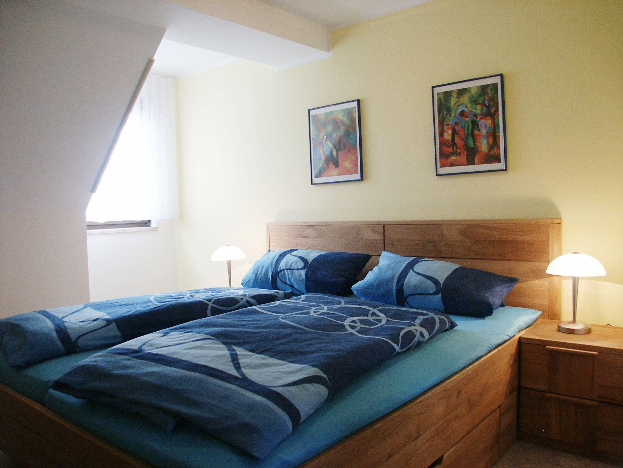 Die Ferienwohnung III ist 50 m² groß und befindet sich im 2. Stock. Sie verfügt über 1 Schlafzimmer mit Doppelbett und Beistellbett (Sofabett), einer voll ausgestatteten Küche (inkl. Spülmaschine) mit Essplatz, Wohnzimmer mit Sat/TV und einem Bad mit Dusche/WC. Von der Küche aus kann man auf den Westbalkon gelangen.