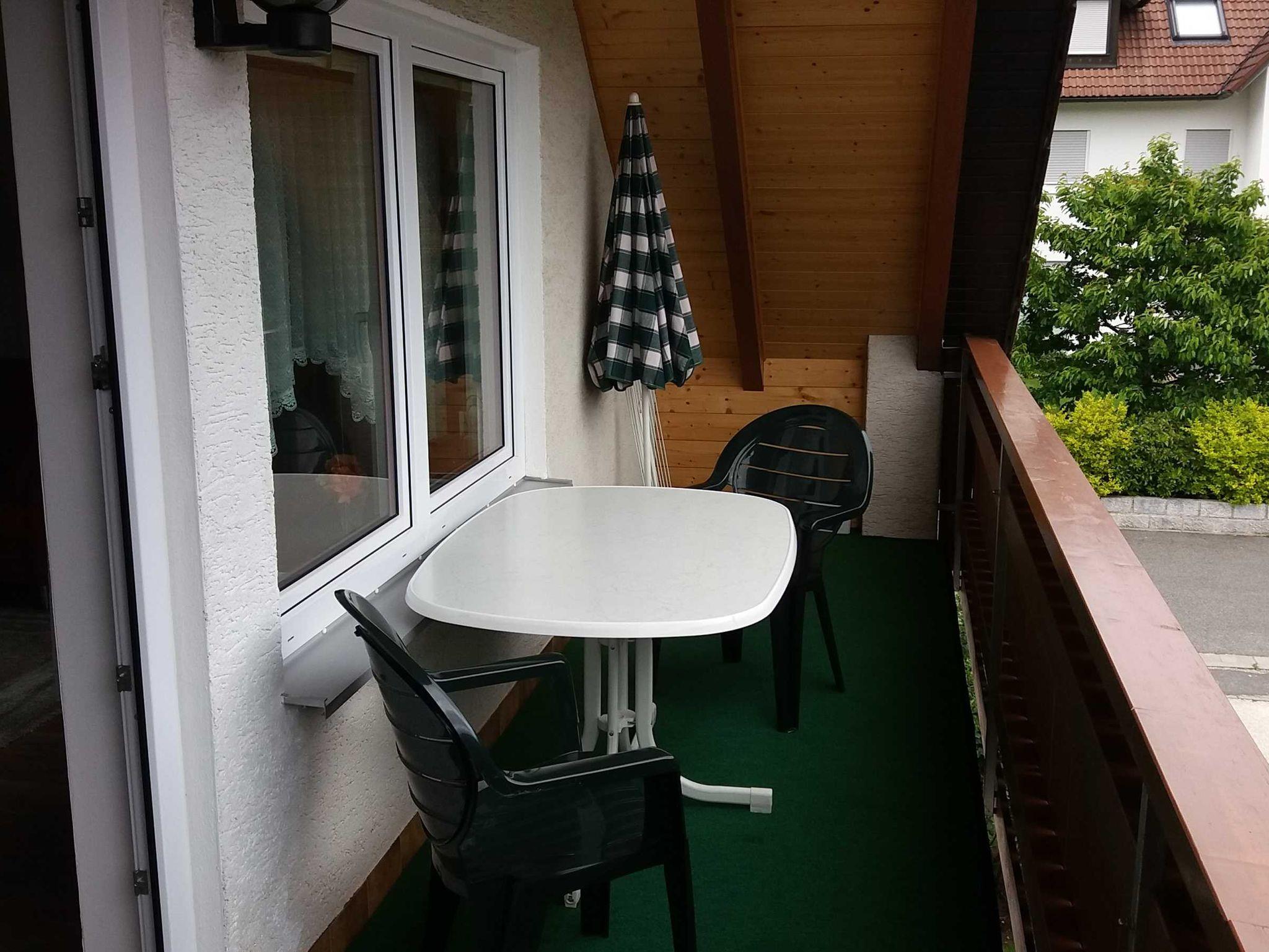 Überdachter und möblierter Balkon. Wäsche wird komplett gestellt. Rauchen am Balkon gestattet.