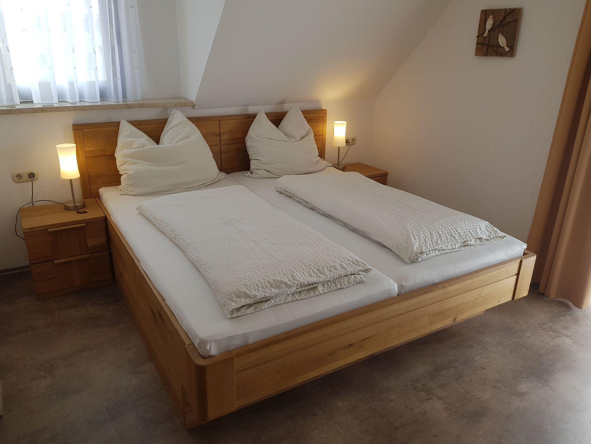 Unsere Ferienwohnung IV ist ca. 40 m² groß und befindet sich im 2. Stock. Sie verfügt über 1 Schlafzimmer mit Doppelbett und Schlafsofa, einer voll ausgestatteten Küche (inkl. Spülmaschine), einem kombinierten Ess- und Wohnzimmer mit Sat/TV und einem Bad mit Dusche/WC. Vom Wohn-/Esszimmer und Schlafzimmer aus gelangt man auf den großen Südbalkon. Wohn- und Esszimmer sowie Küche wurden 2024 neu eingerichtet.