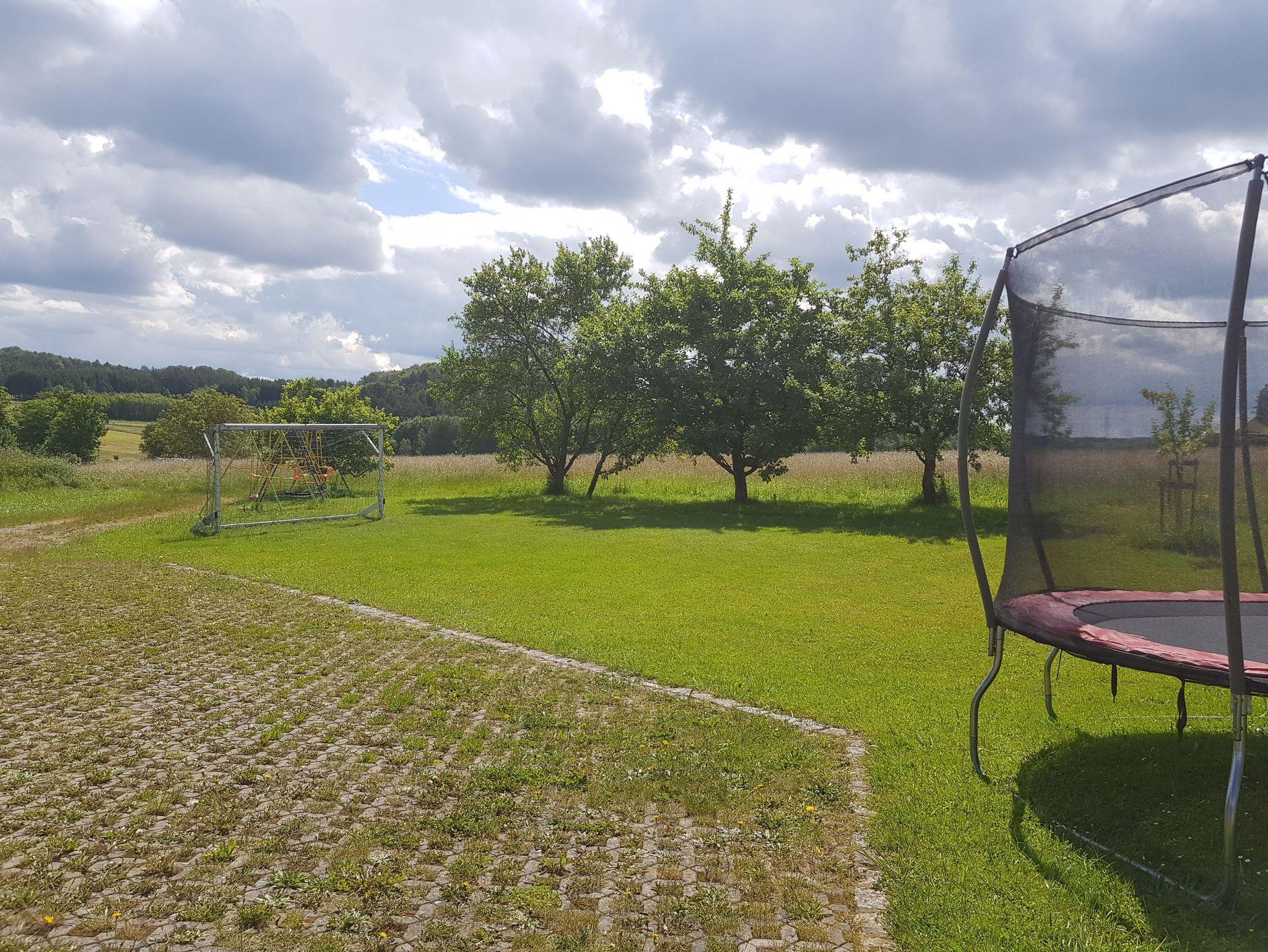 Für die kleinen Gäste steht ein großer Garten mit Kinderspielplatz, Trampolin und einem Fussballtor zur Verfügung.