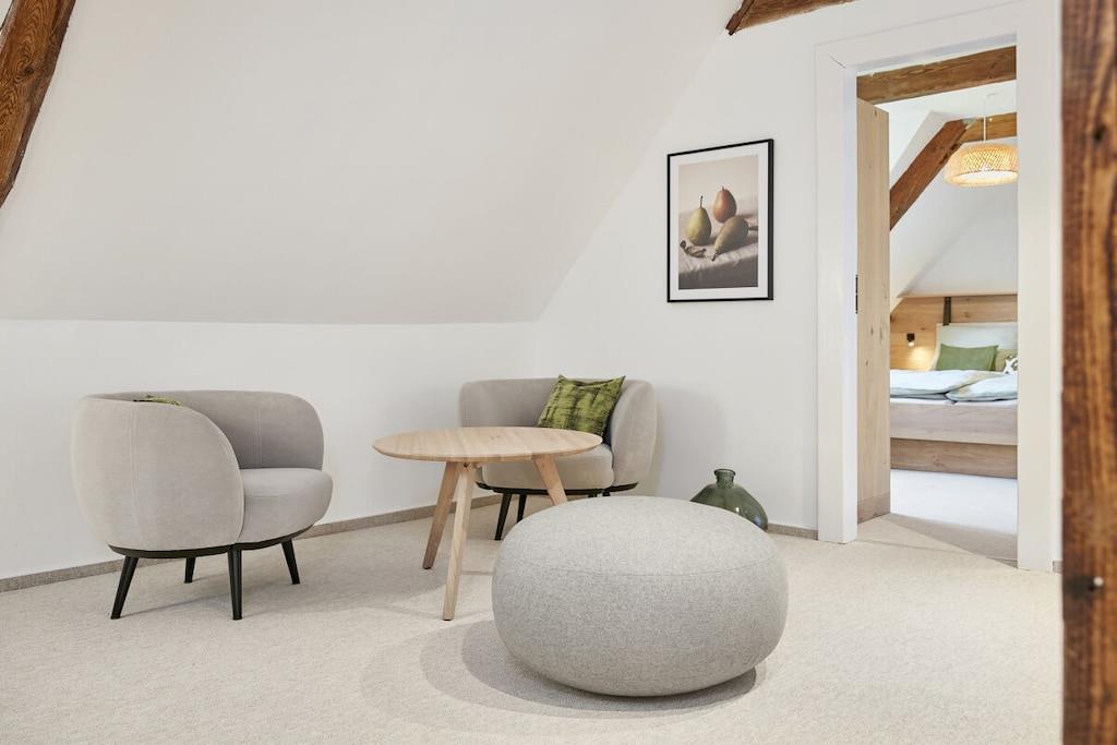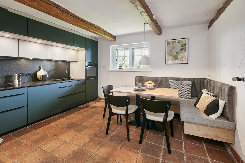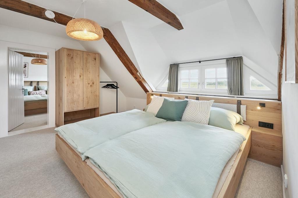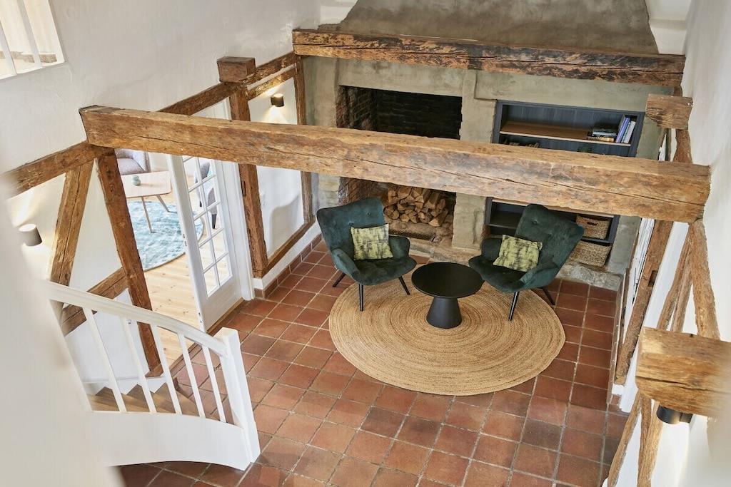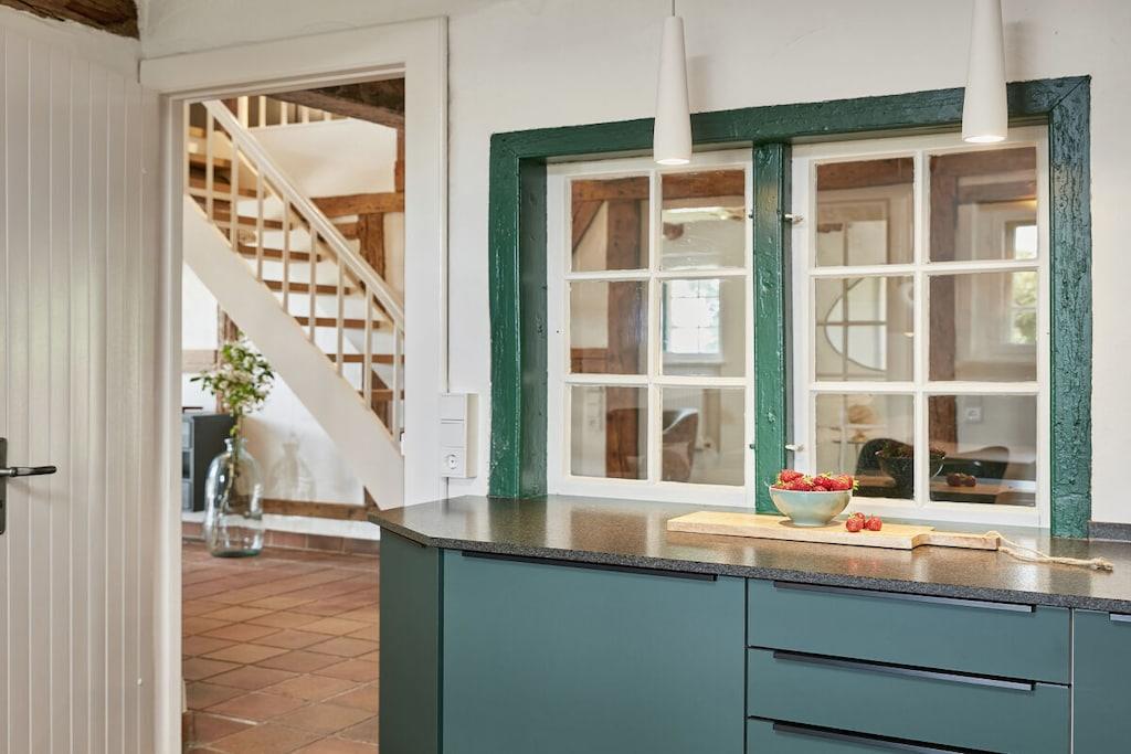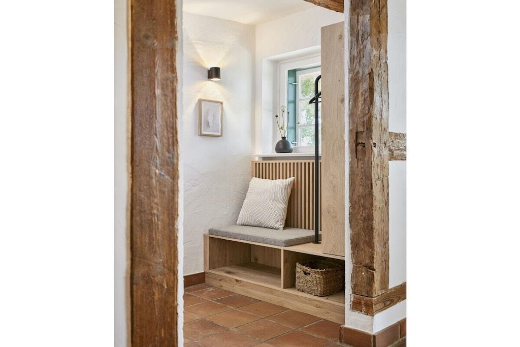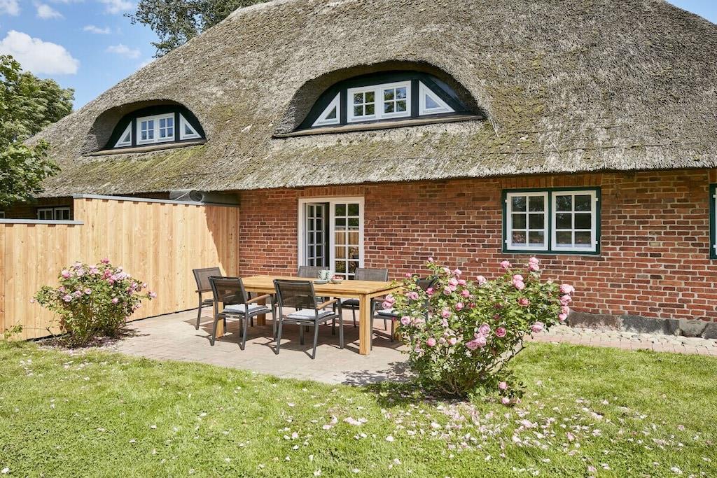 Dette halvtliggende stråtækte sommerhus på cirka 120 m² ligger få kilometer fra Oldenburg i Holsten, men alligevel omgivet af natur! Det har en stor entré, en rummelig stue, et hyggeligt køkken og et mindre brusebad i stueetagen. Ovenpå finder I tre soveværelser (hvoraf det ene er et sammenhængende værelse), et komfortabelt galleri til afslapning og et badeværelse med en behagelig bruser. Køkkenet i vores stråtækte sommerhus er meget veludstyret, og der er en havestol, en gasgrill og Wi-Fi. Om sommeren blomstrer roserne i haven, et par kyllinger går frit rundt, og udsigten over de åbne marker bringer øjeblikkelig ro. Nyd et vidunderligt ophold i vores kærligt møblerede feriehus!