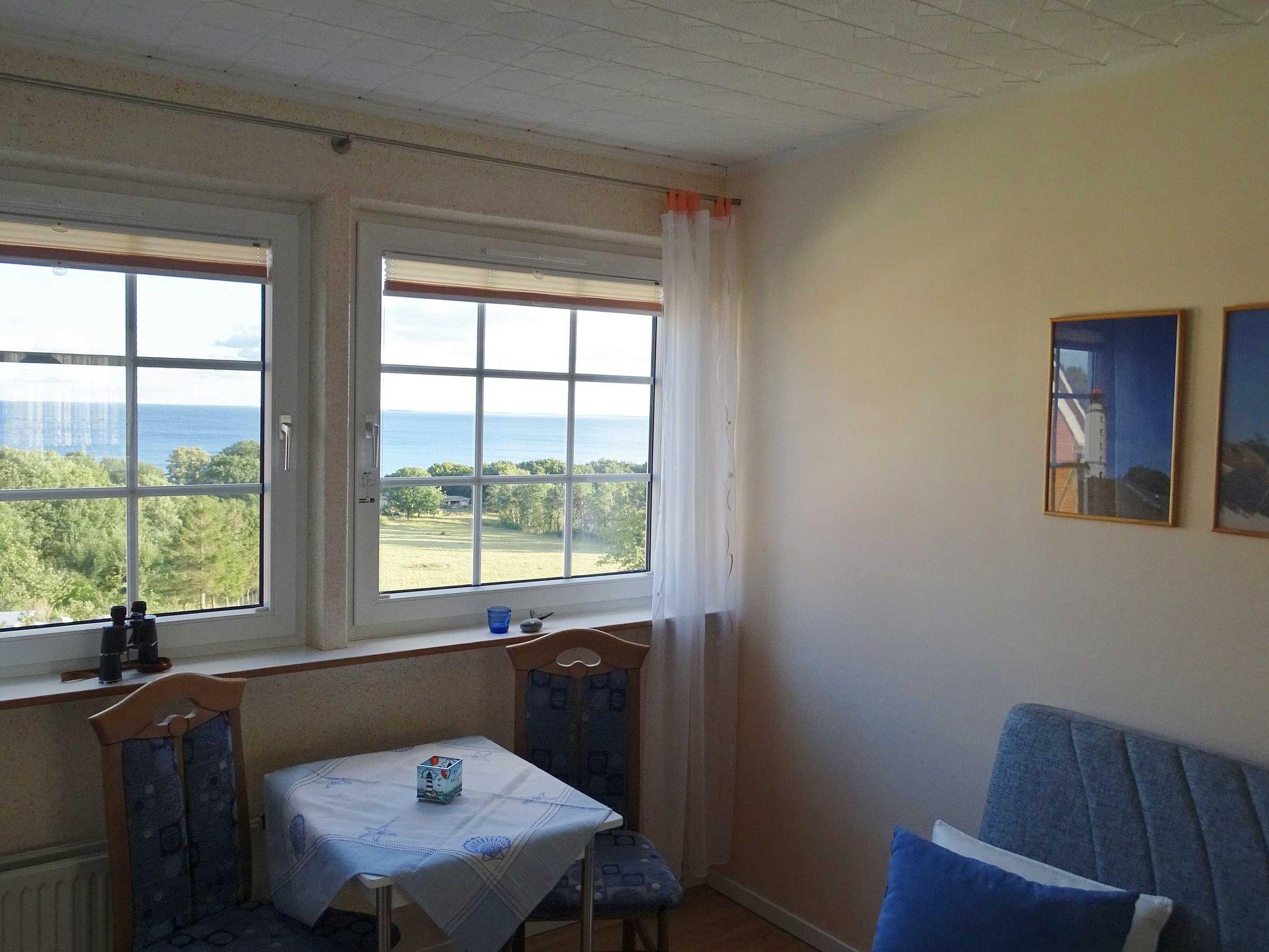 Vom Wohnzimmer haben Sie direkten (unverbauten) Blick auf den Südstrand und das Mönchguter Land.