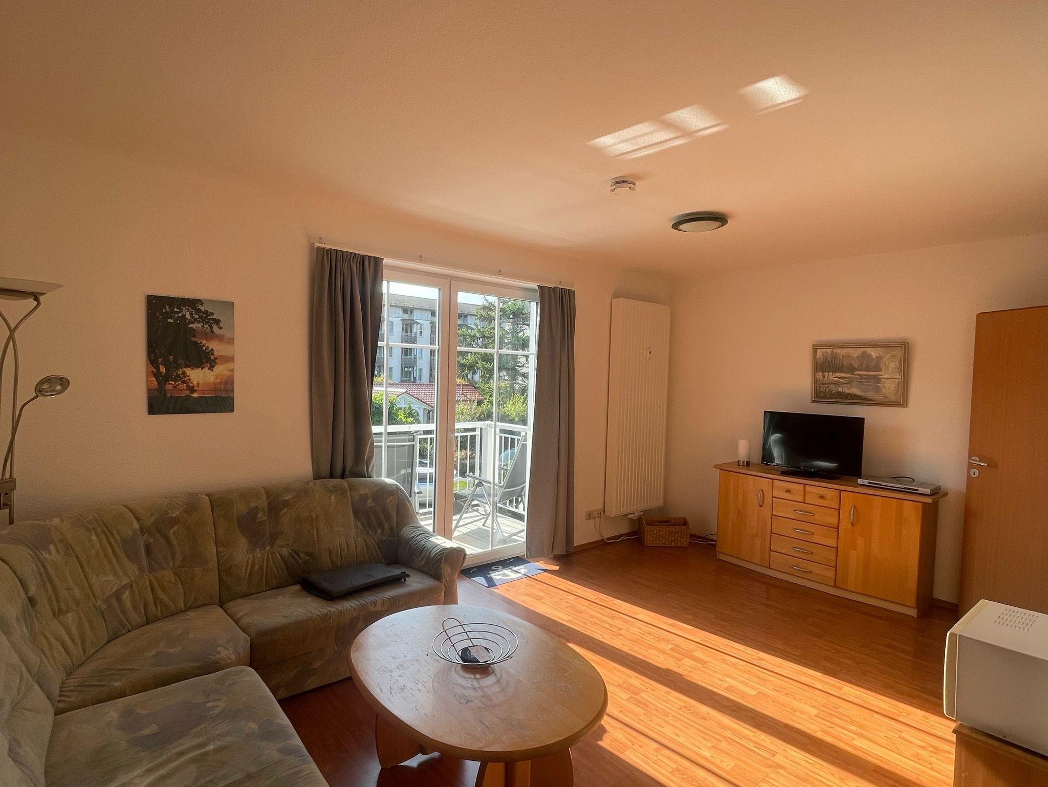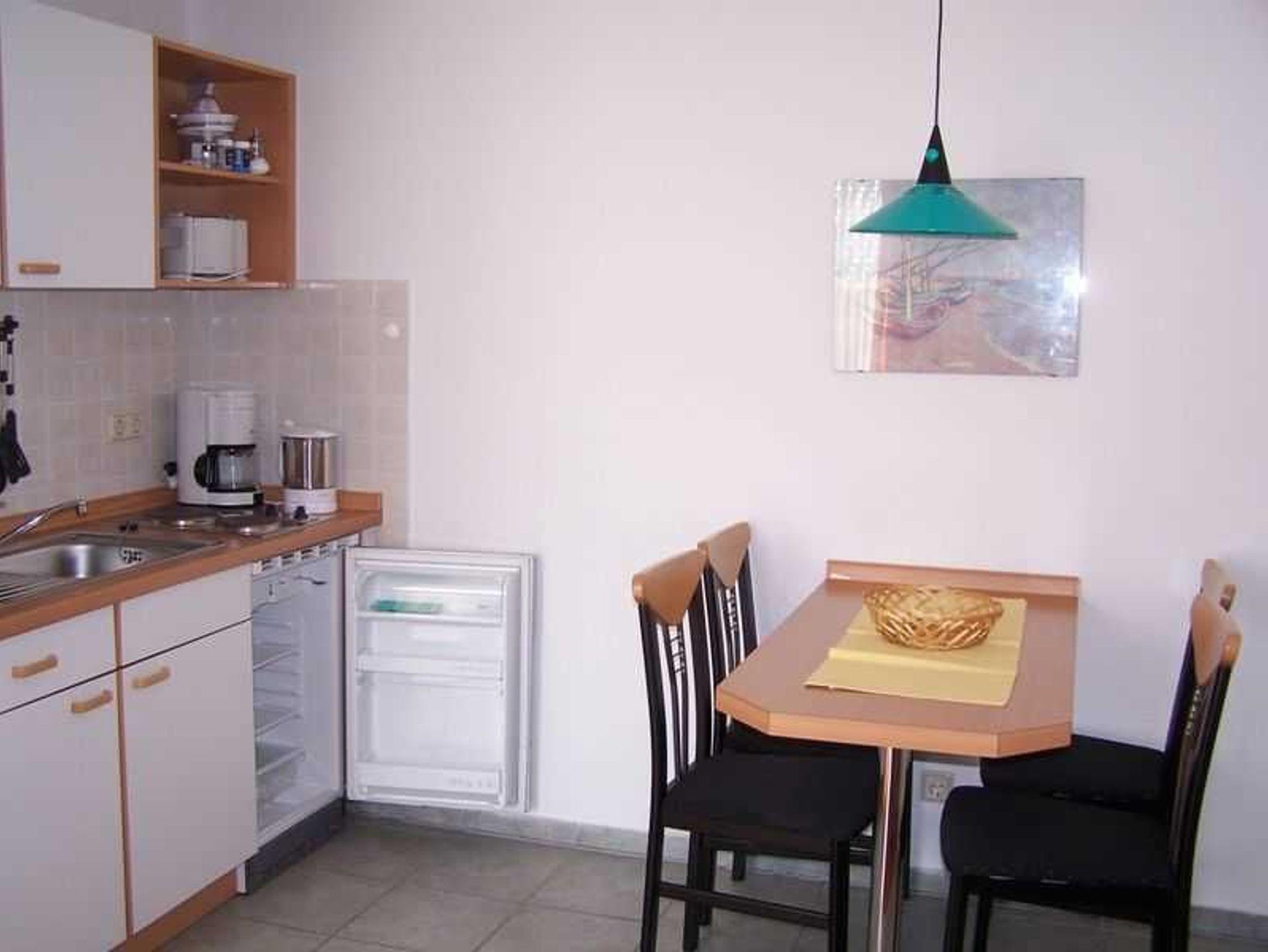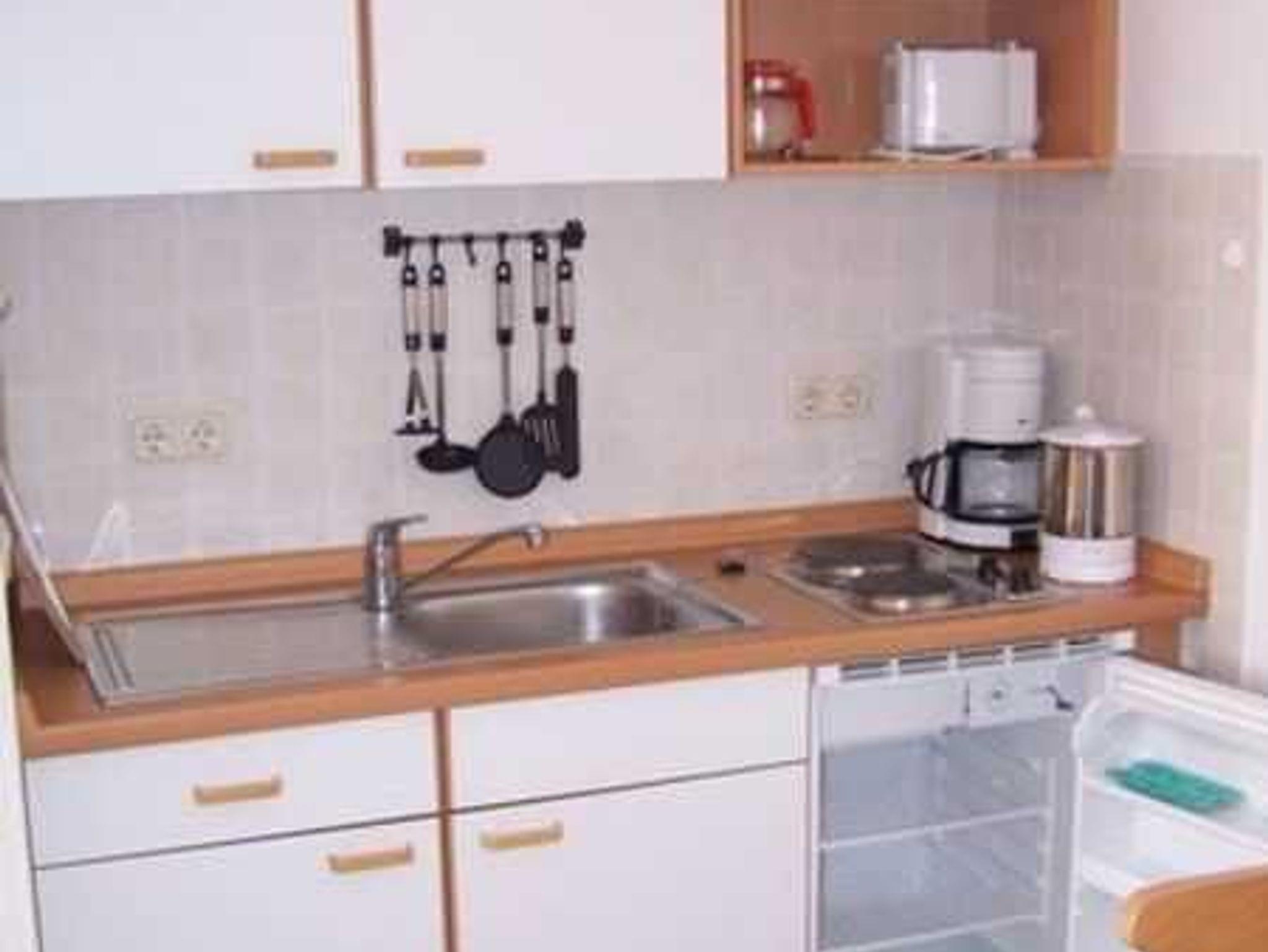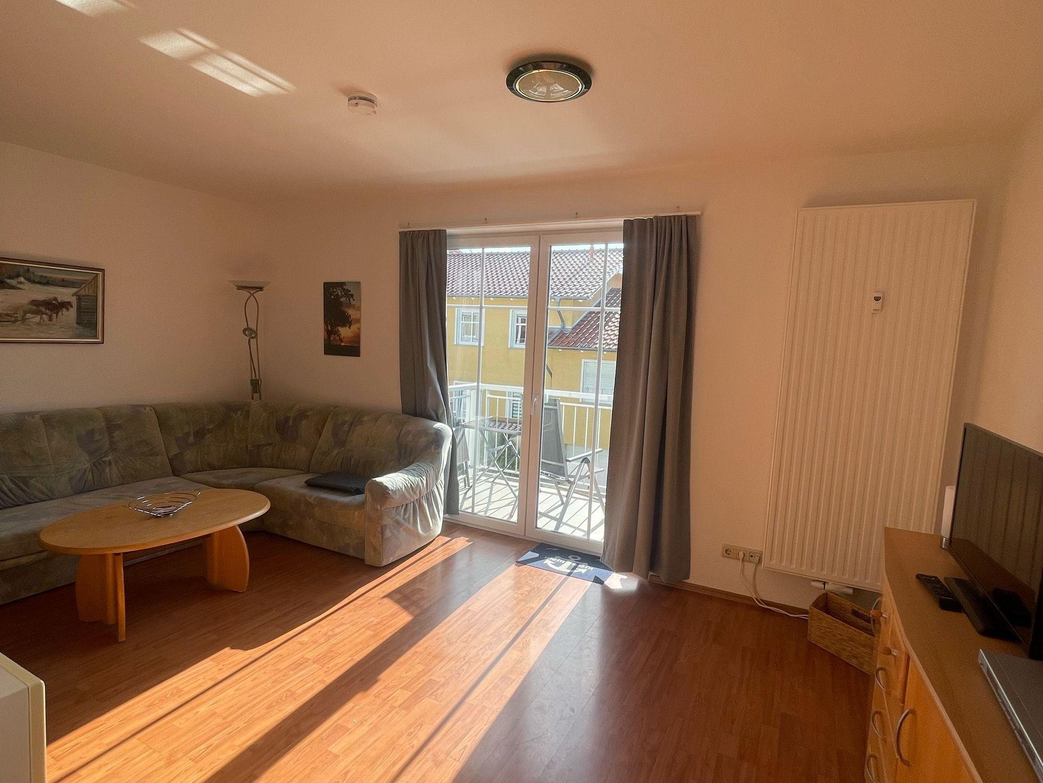 Die Ferienwohnung im 1. Obergeschoß besteht aus einem Schlafzimmer mit Doppelbett , einem Wohnzimmer mit Sofa (Schlafcouch), Balkon und komplett ausgestatteter Küchenzeile. DU/WC gehört natürlich zur Raumaufteilung. TV ist sowohl im Schlafzimmer als auch im Wohnzimmer vorhanden. Waschmaschine mit Trockner ist ebenfalls vorhanden.