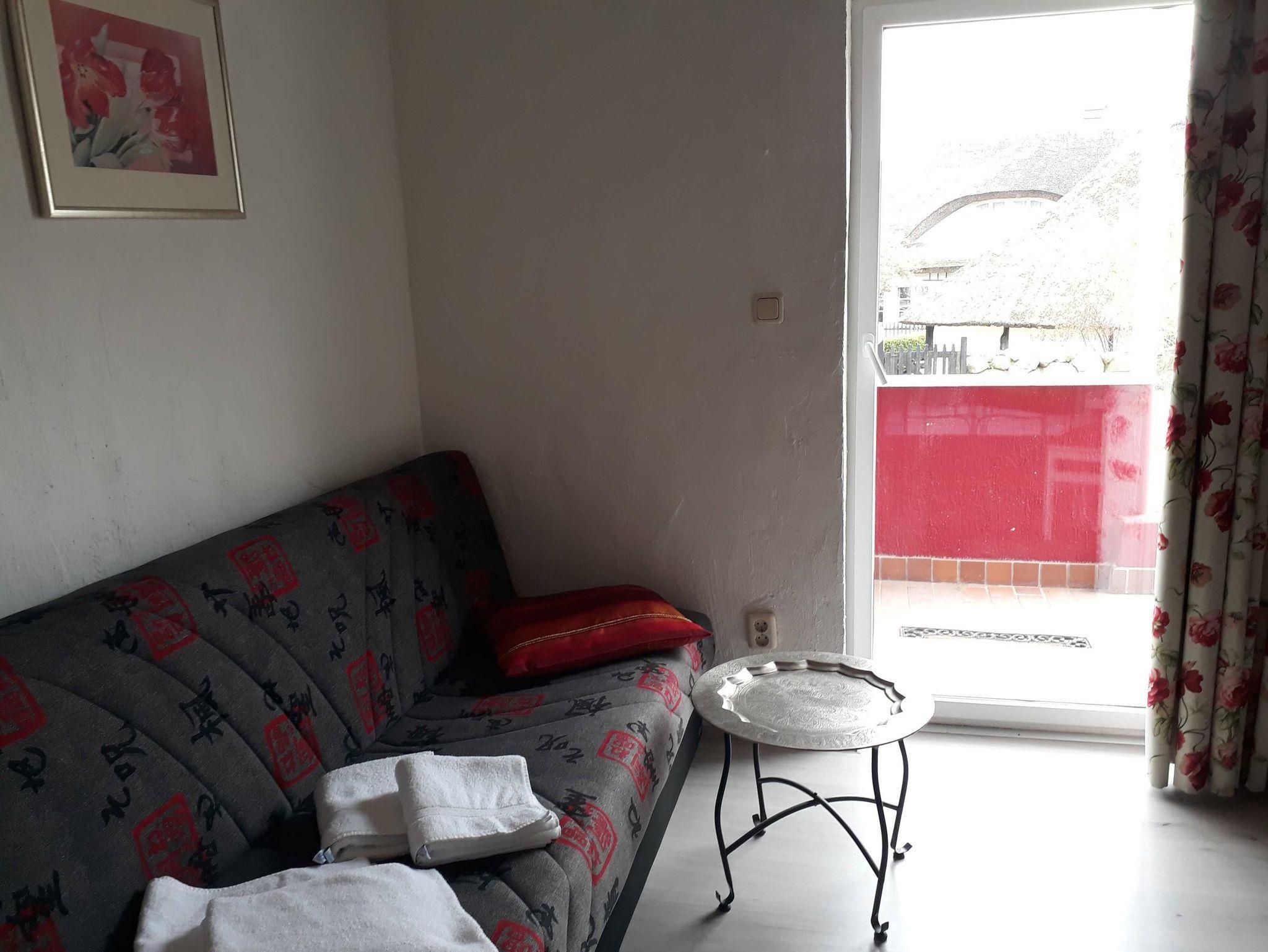 Die geräumige Nichtraucher-Ferienwohnung verfügt über ein Schlafzimmer mit Doppelbett und Liege, ein Wohnzimmer mit gemütlicher Sitzecke (Schlafcouch), eine Miniküche in der geschlossenen Veranda und Dusche/WC. Sat-TV und Radio gehören zur Ausstattung. Terrasse vor dem Haus.